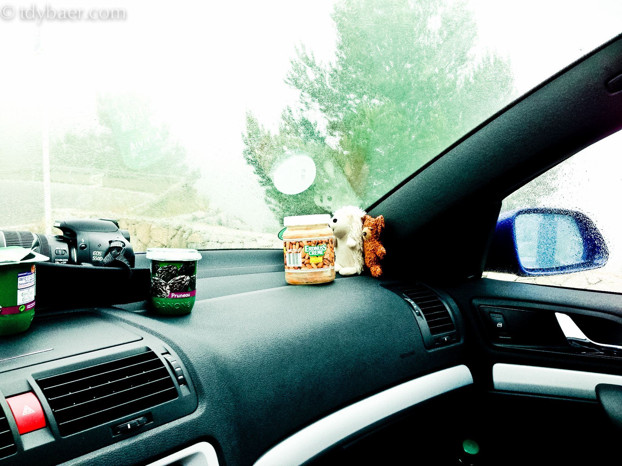 Naja, was soll’s. Dann frühstücken wir halt im Auto.