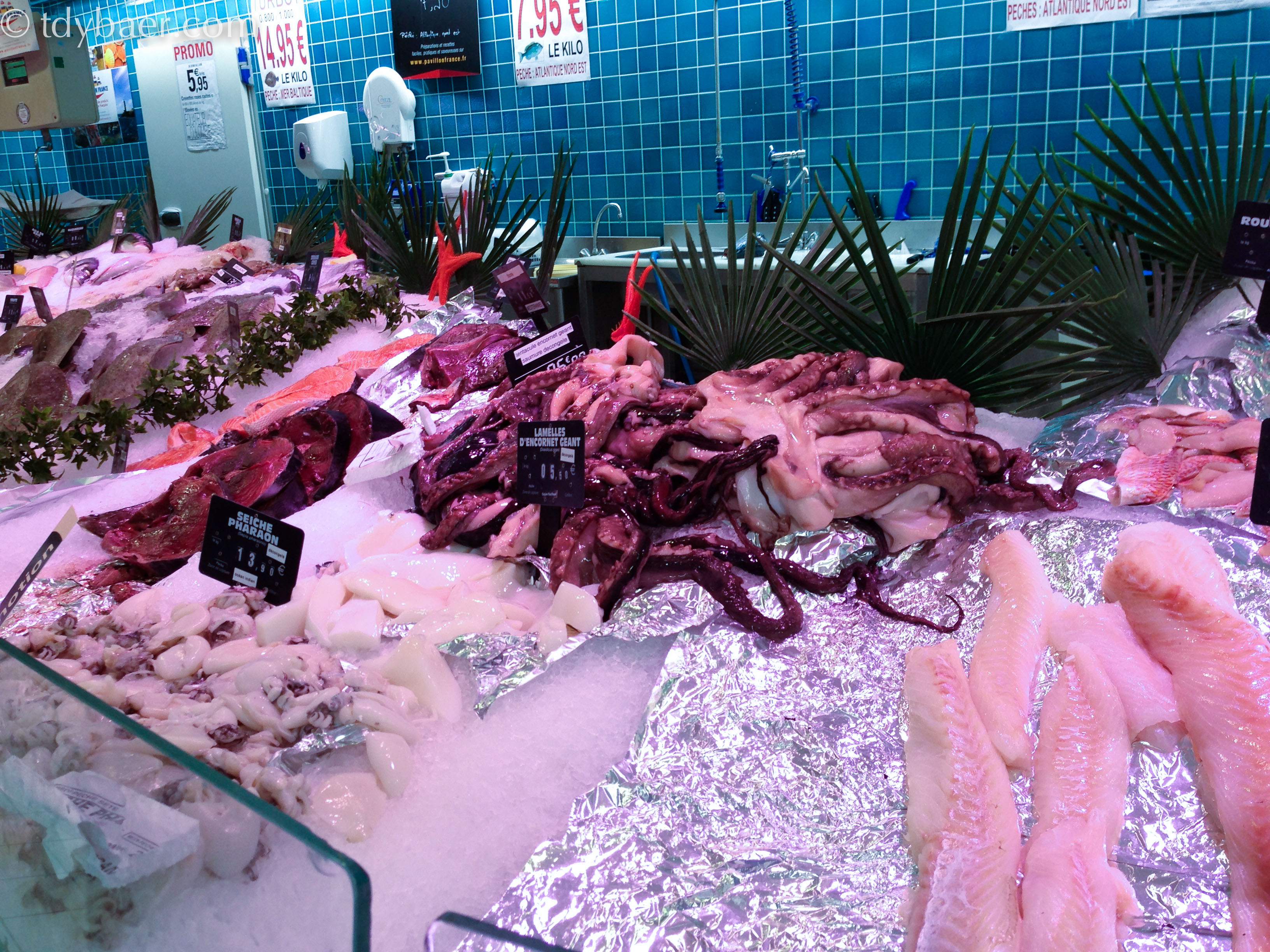 Etwas nördlich von St-Rémy-de-Provence schlugen wir auf dem sehr schönen Campingplatz Monplaisir unser Zelt für eine Nacht auf. Für das Abendbrot besorgten wir uns bei einem einheimischen Bio-Bauern in der Nähe frische Zutaten für einen leckeren Salat. Anschließend schauten wir noch im Supermarkt vorbei. Die Fischtheken mit den verschiedensten Meeresbewohnern sind immer wieder beeindruckend.