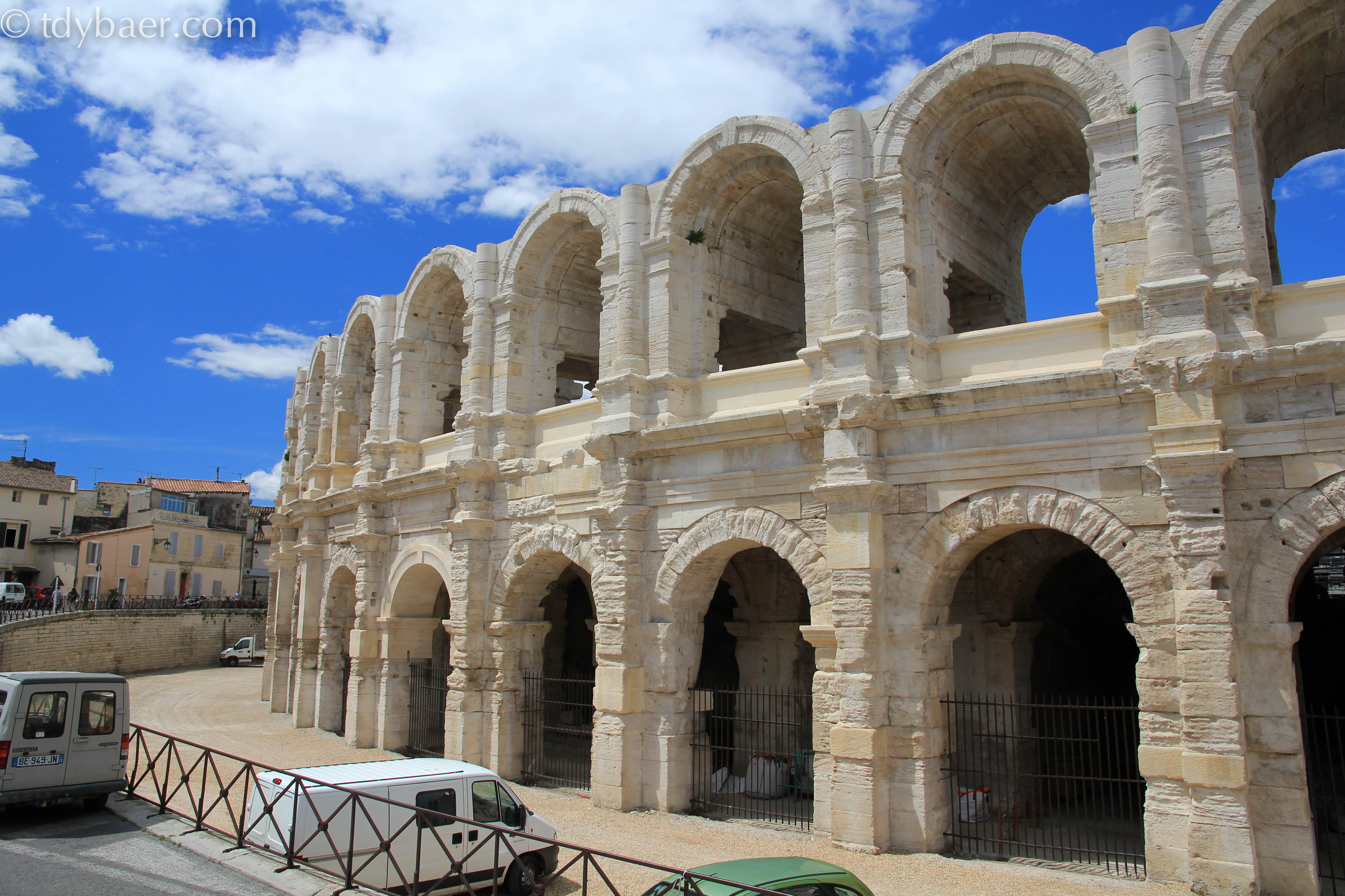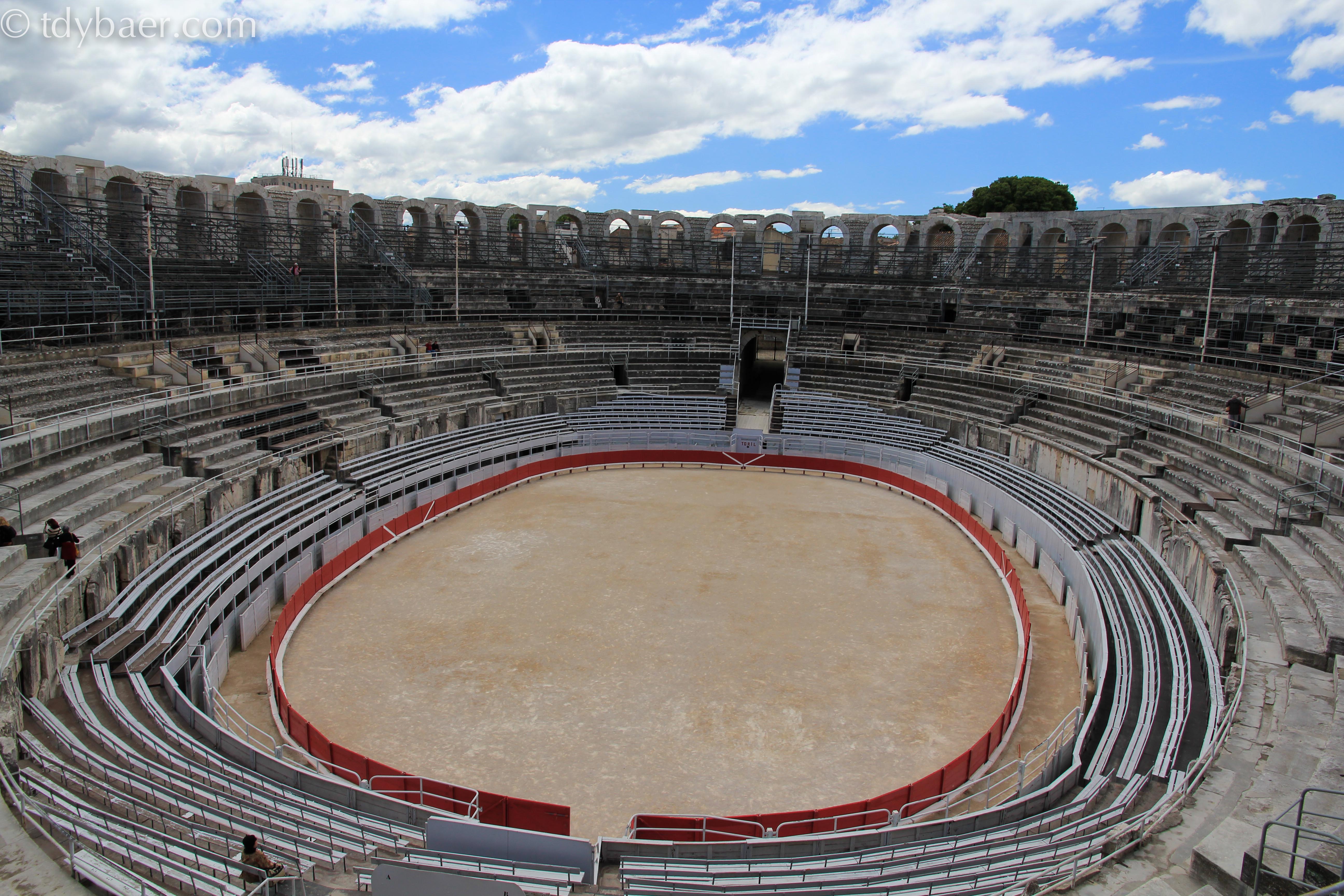 In der Innenstadt von Arles ist alles schnell per Fuß zu erreichen, so dass wir bald vor dem Amphitheater standen. Dieses wurde 90 nach Chr. erbaut und konnte 20.000 Zuschauer aufnehmen.