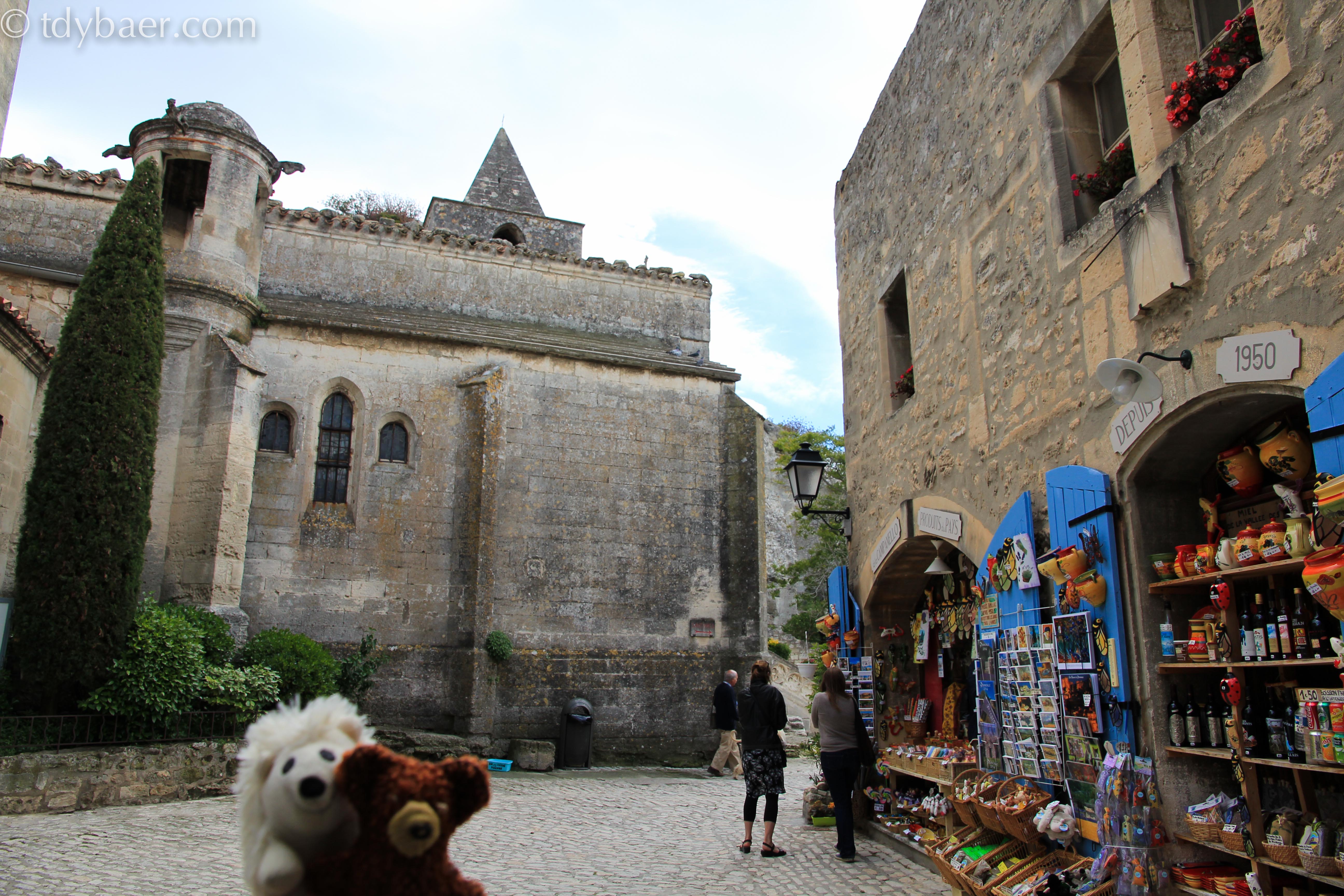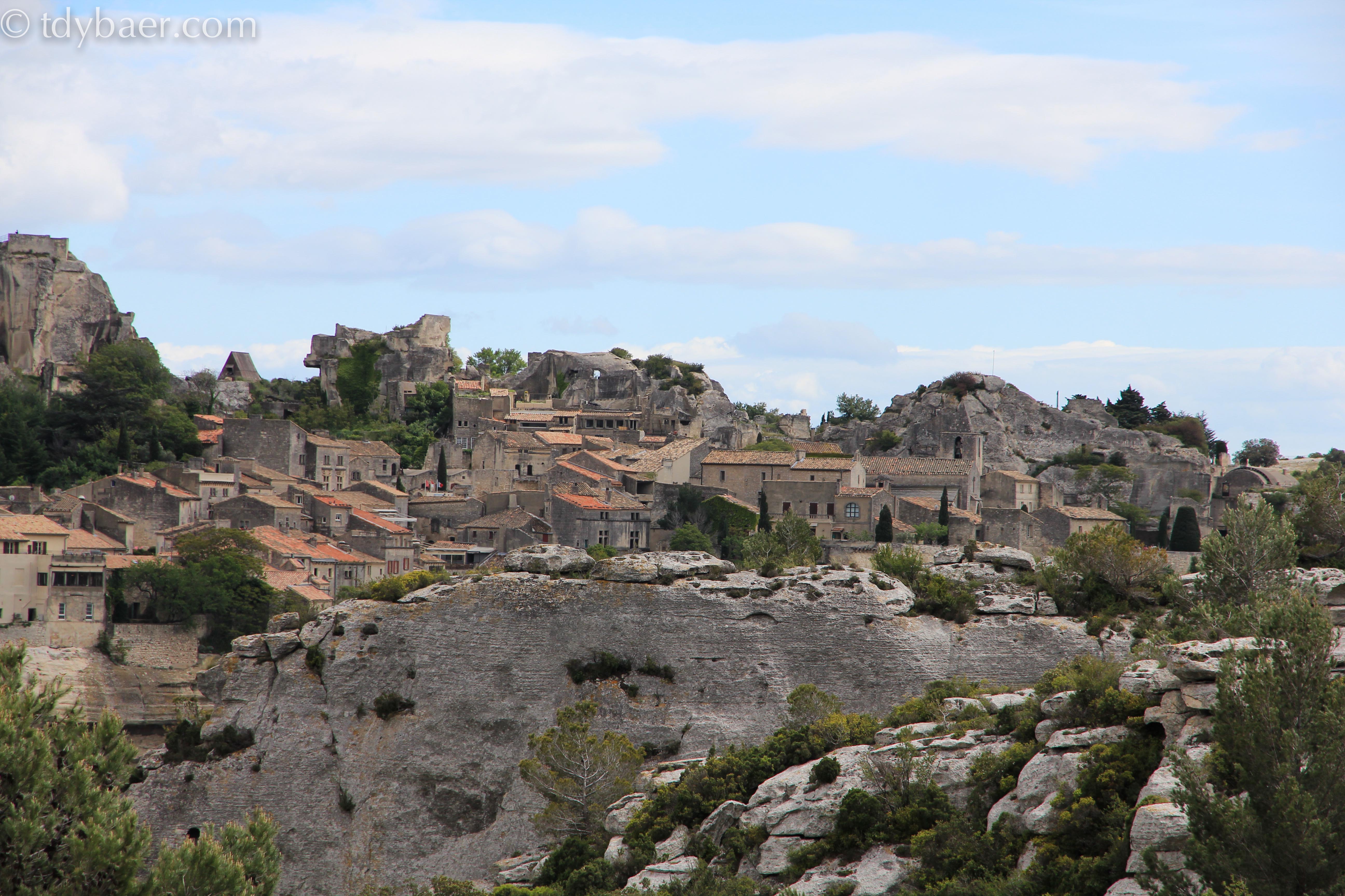 In Le-Baux-de-Provence angekommen, darf man für das Parken an der Straße außerhalb des Dorfes pauschal schon einmal 5 Euro berappen. Das Ruinendorf liegt hoch auf einem Felsen. Der gut erhaltene Teil des Dorfes kann kostenlos besichtigt werden – d.h. man kann sich von einem Touristenlädchen zum anderen durch hangeln.
