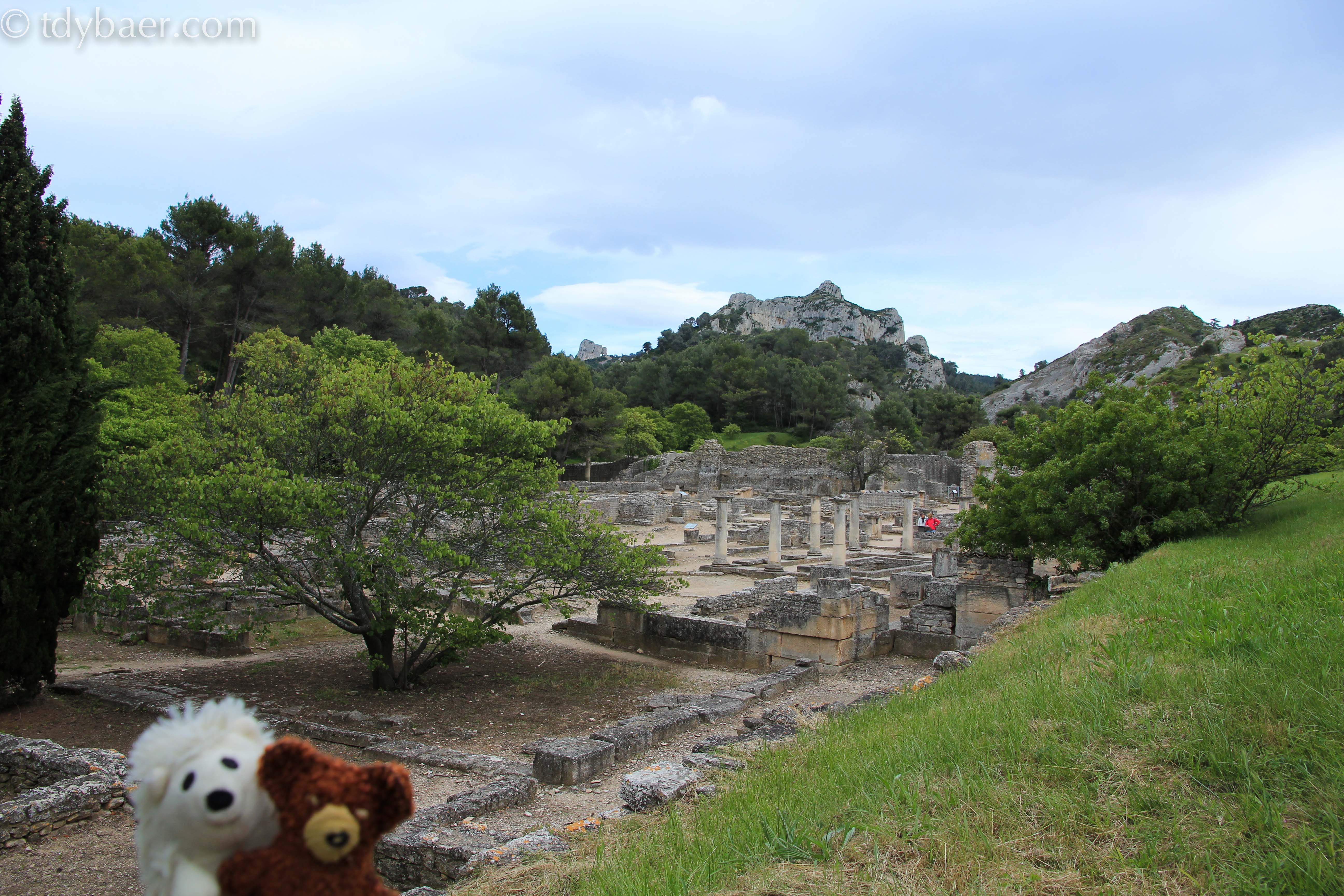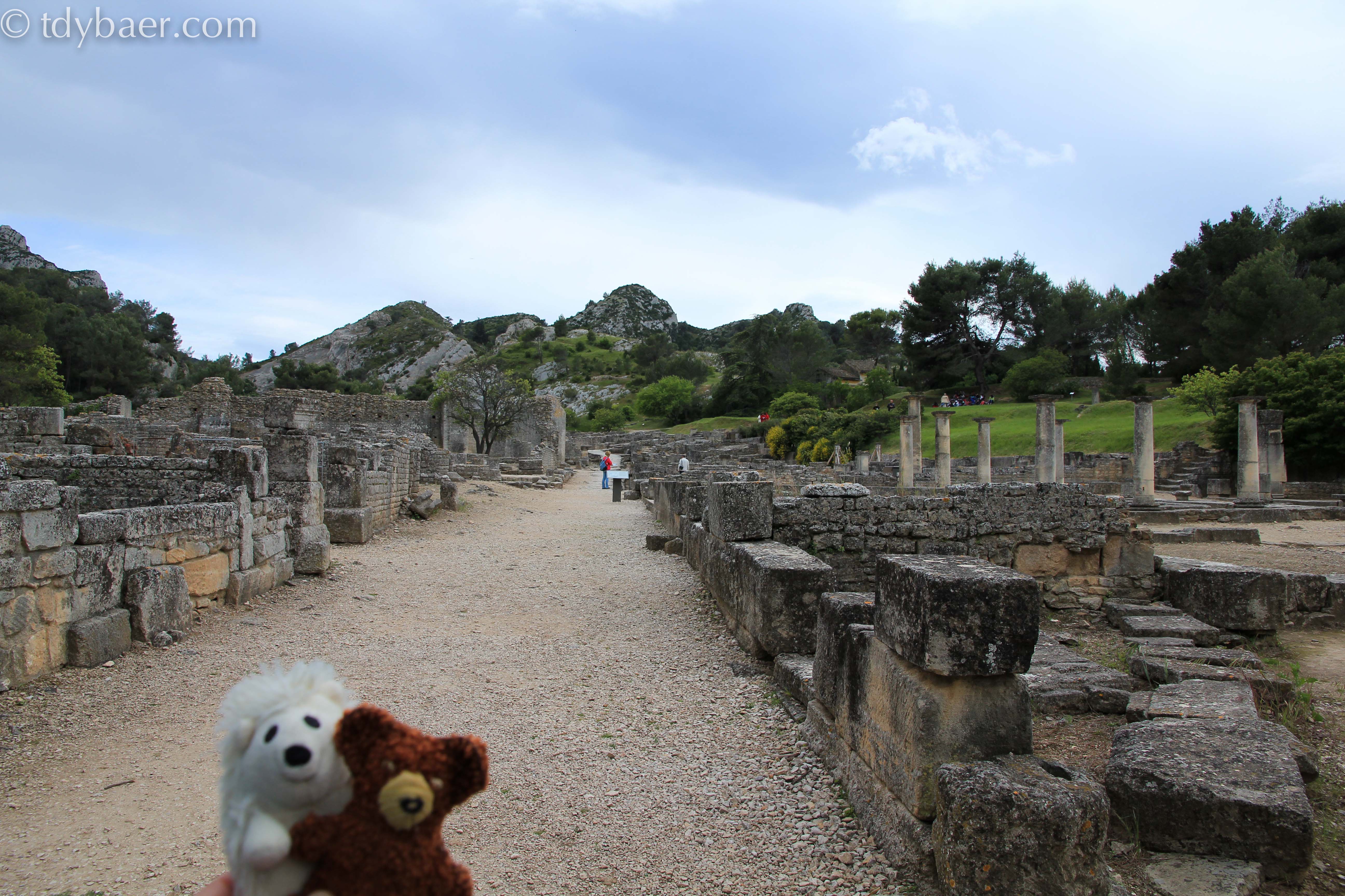 Das Ziel unserer Tagesetappe ist St-Rémy-de-Provence. Südlich der Stadt liegt die Ausgrabungsstätte Glanum. Die Geschichte des Dorfes reicht bis ca. 63 v. Chr. zurück. Anhand vieler Info-Tafeln kann man gut nachvollziehen wie die Häuser im Wohnviertel oder die Monumentalbauten im Stadtzentrum früher einmal aussahen.