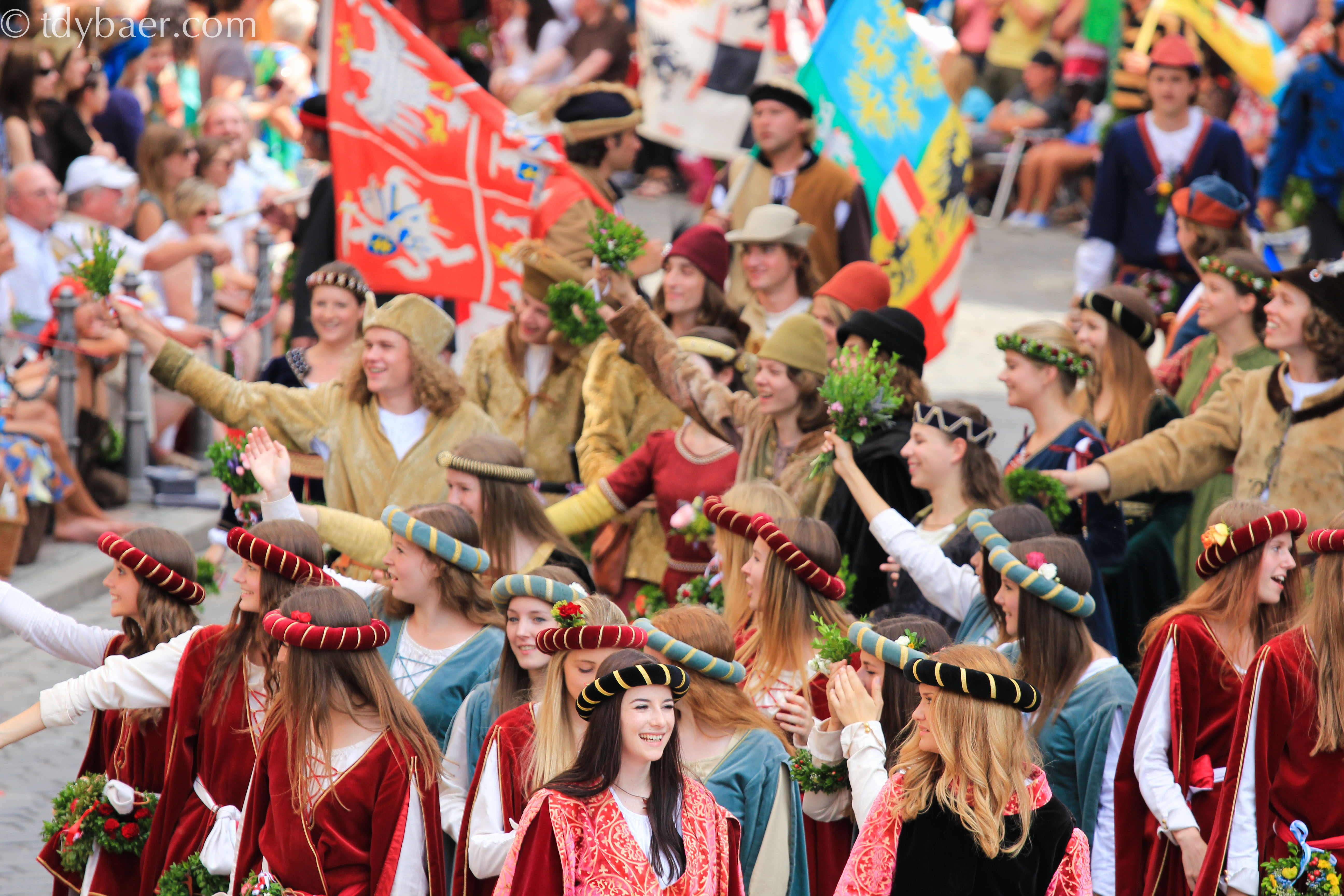 Weit im Voraus ergatterten wir ein paar Tribünenkarten für den Umzug. Zusammen mit netten Bekannten schauten wir uns an diesem Tag den „Brautzug“ an. Ein wirklich gelungenes Spektakel mit tollen Kostümen und witzigen Darstellern. Hier ein paar Impressionen.