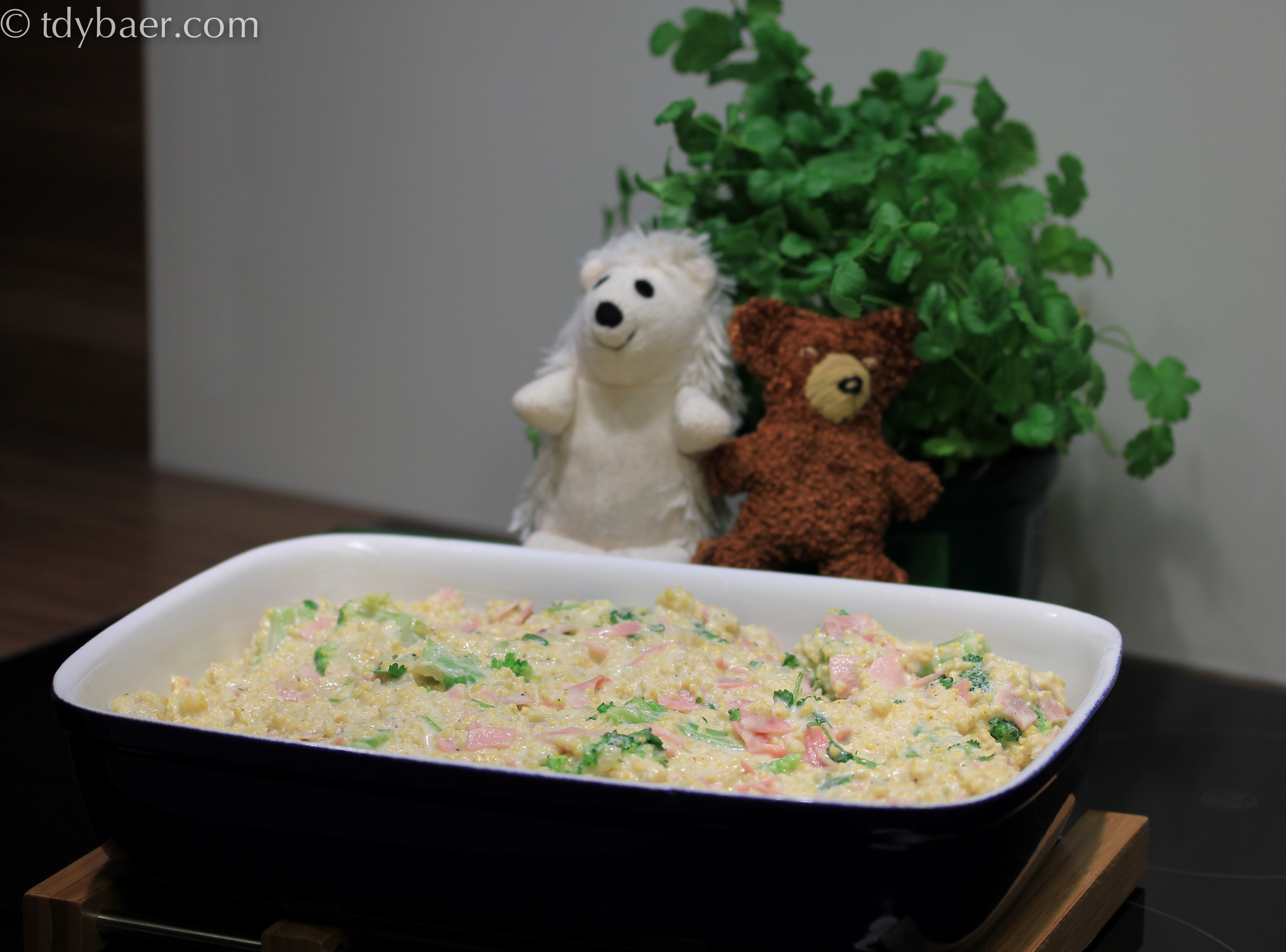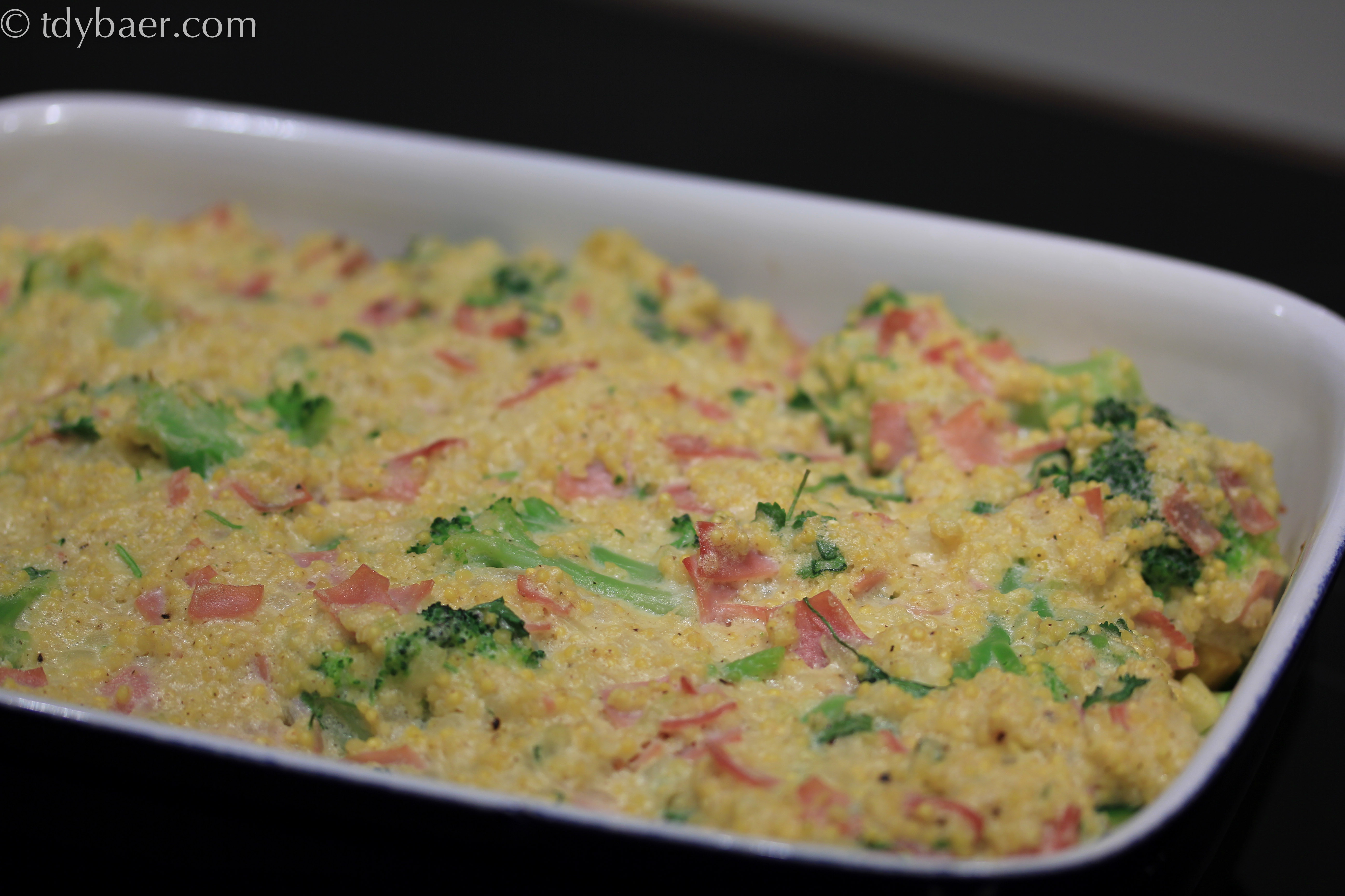 Schinken-Nudel-Auflauf war gestern – statt dessen probieren wir heute einmal Hirse in Kombination mit Brokkoli und Schinken. Das uralte Brotgetreide Hirse wird leider viel zu oft links liegen gelassen oder an den Wellensittich verfüttert. Dabei enthält Hirse viel Eisen, Kalzium, Fluor und Magnesium – und lecker schmeckt es auch :-).