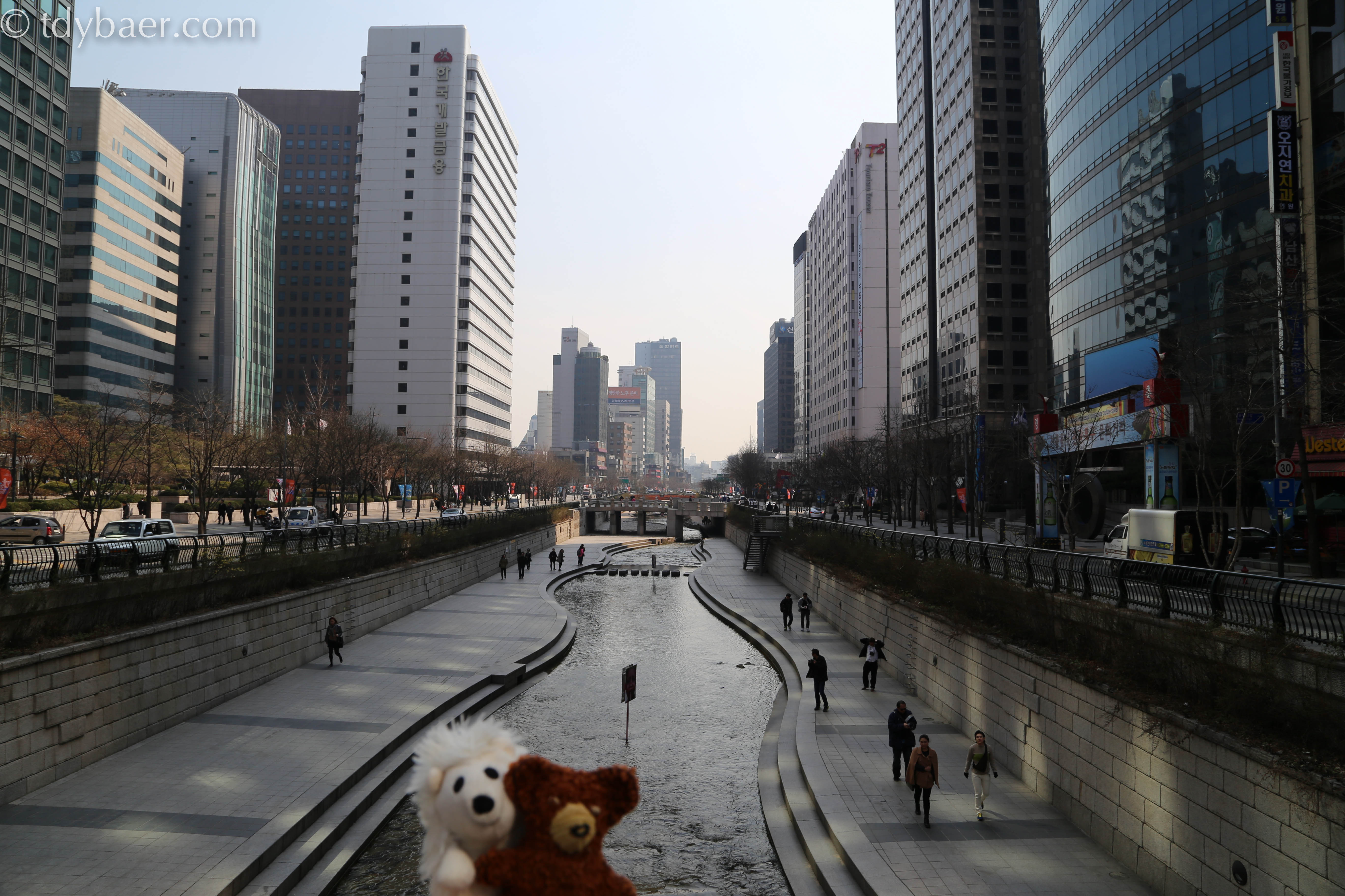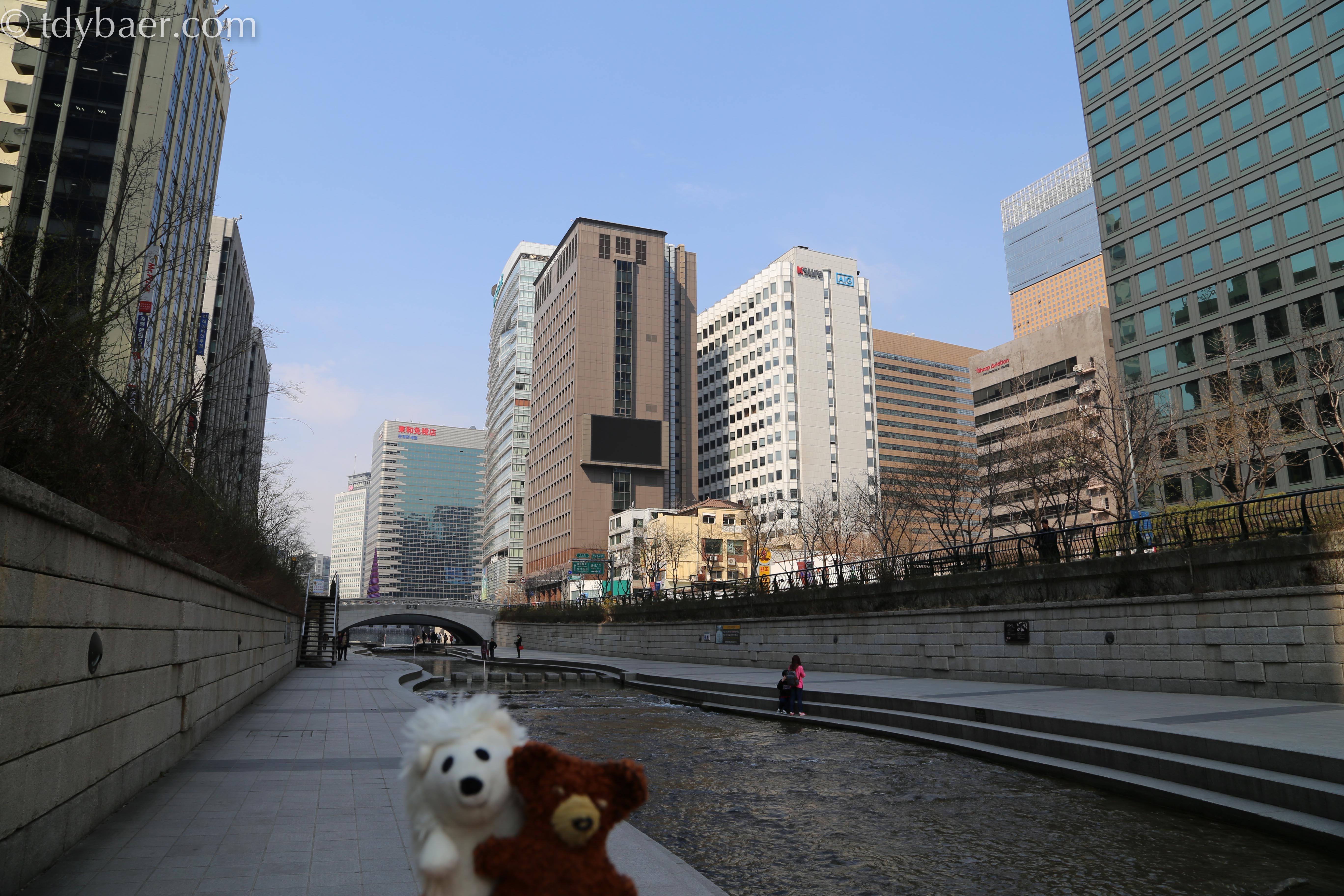 Weiter ging es Richtung Norden bis wir plötzlich auf diesen netten Flusslauf stießen. Der Cheonggye-Fluss wurde auf einer Länge von 5,8 km mit kleinen Parks, Springbrunnen und Spazierwegen umgeben.