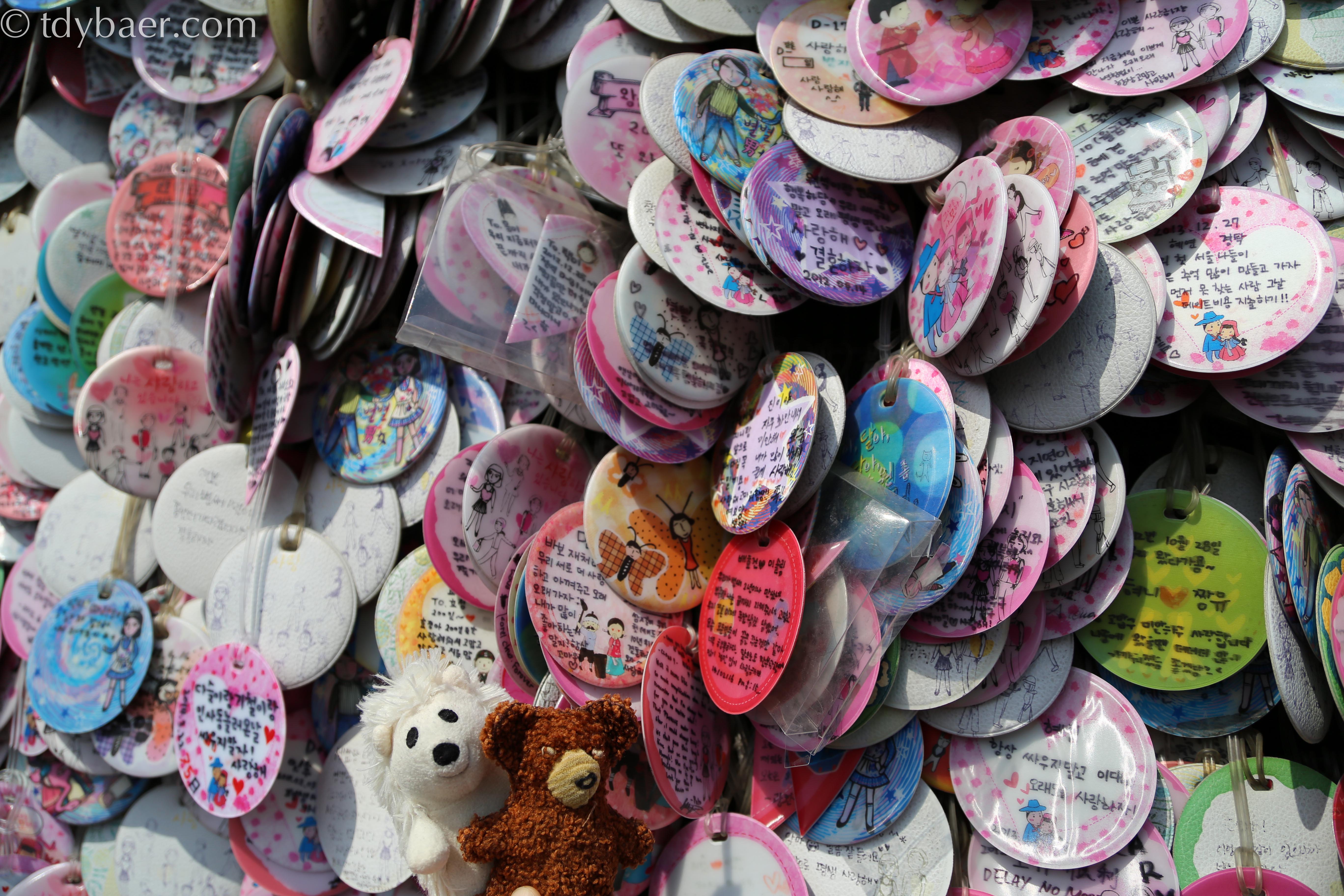Die kleinen bunten Anhänger kann man natürlich gleich nebenan kaufen und beschriften :-).