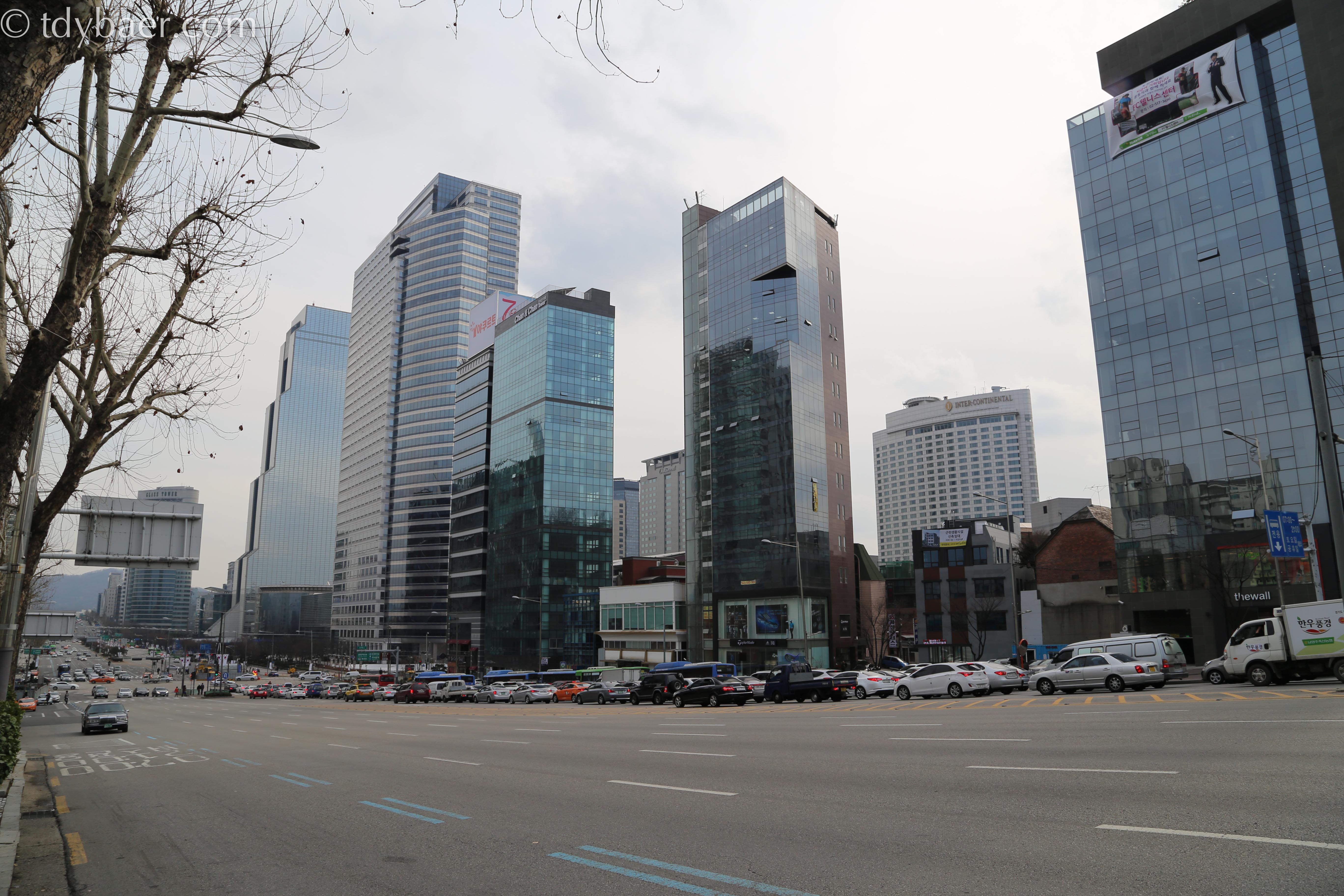 Im Gangnam Distrikt stiegen wir an der Haltestelle Samseong aus. Auch hier wieder jede Menge Hochhäuser und riesige Kreuzungen.