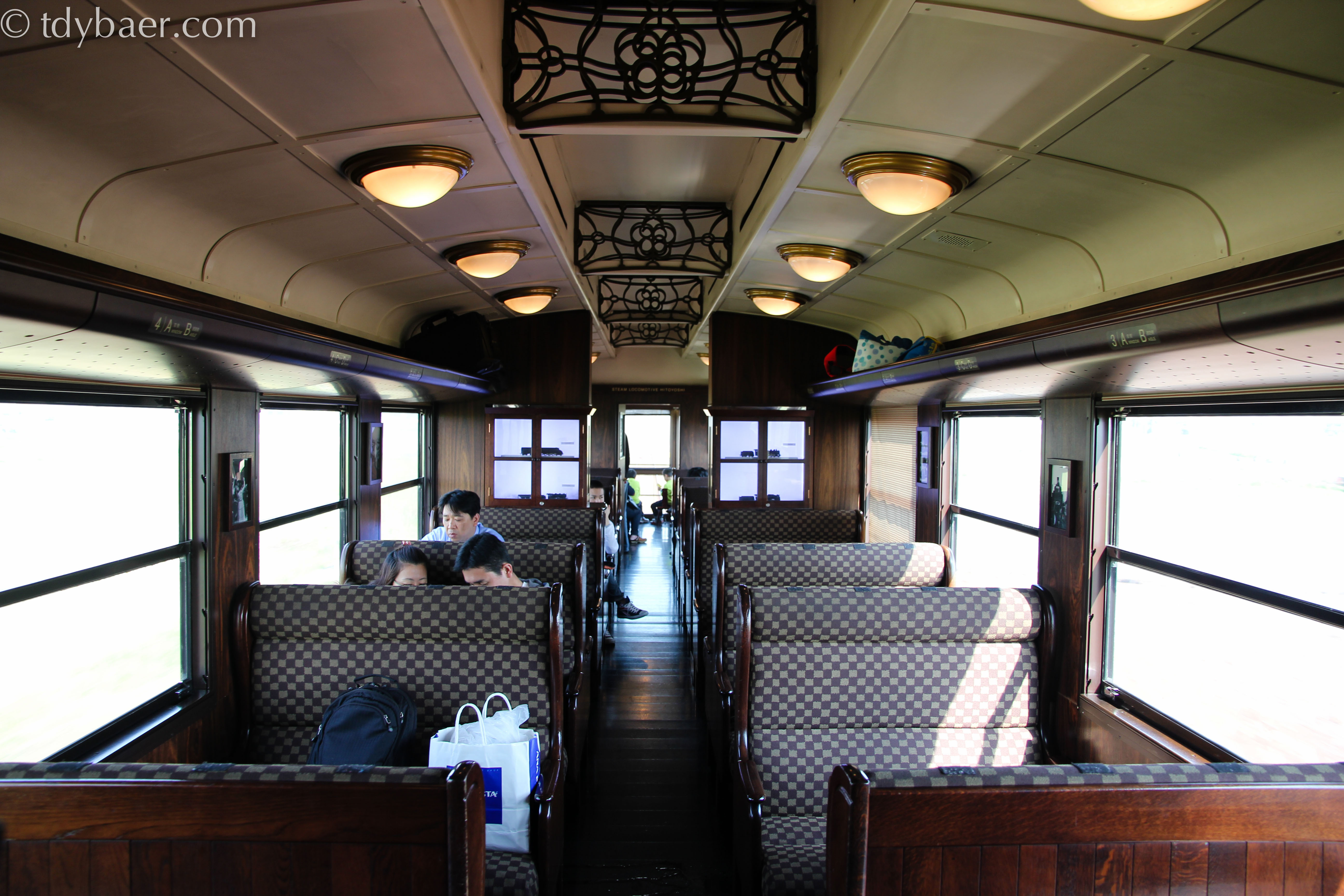 Am heutigen Tag stand die erste Zugfahrt unserer Reise auf dem Programm, von Kumamoto in die Berge nach Hitoyoshi. Das Ganze auch gleich mit einer Dampflock in schönen eingerichteten Waggons.