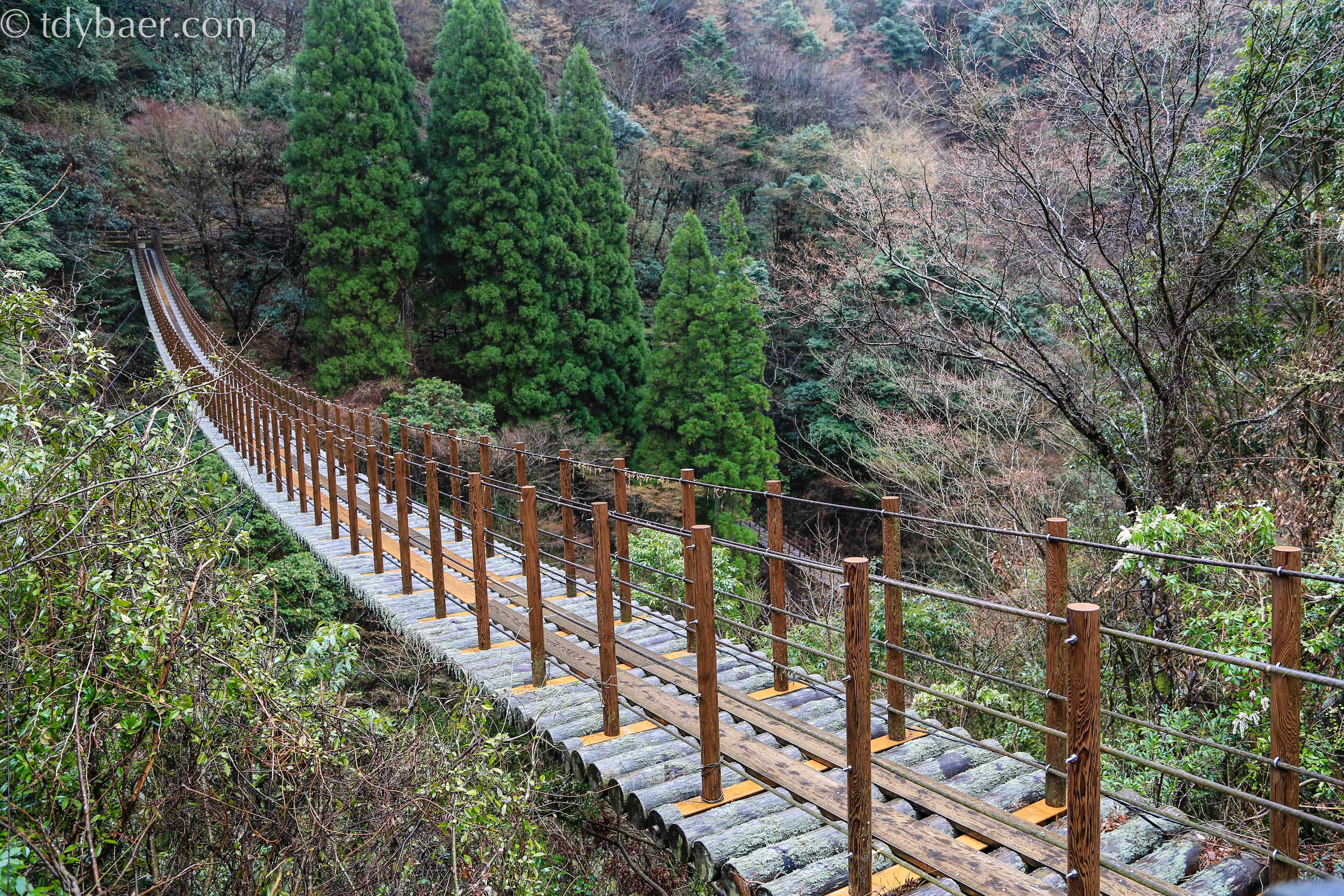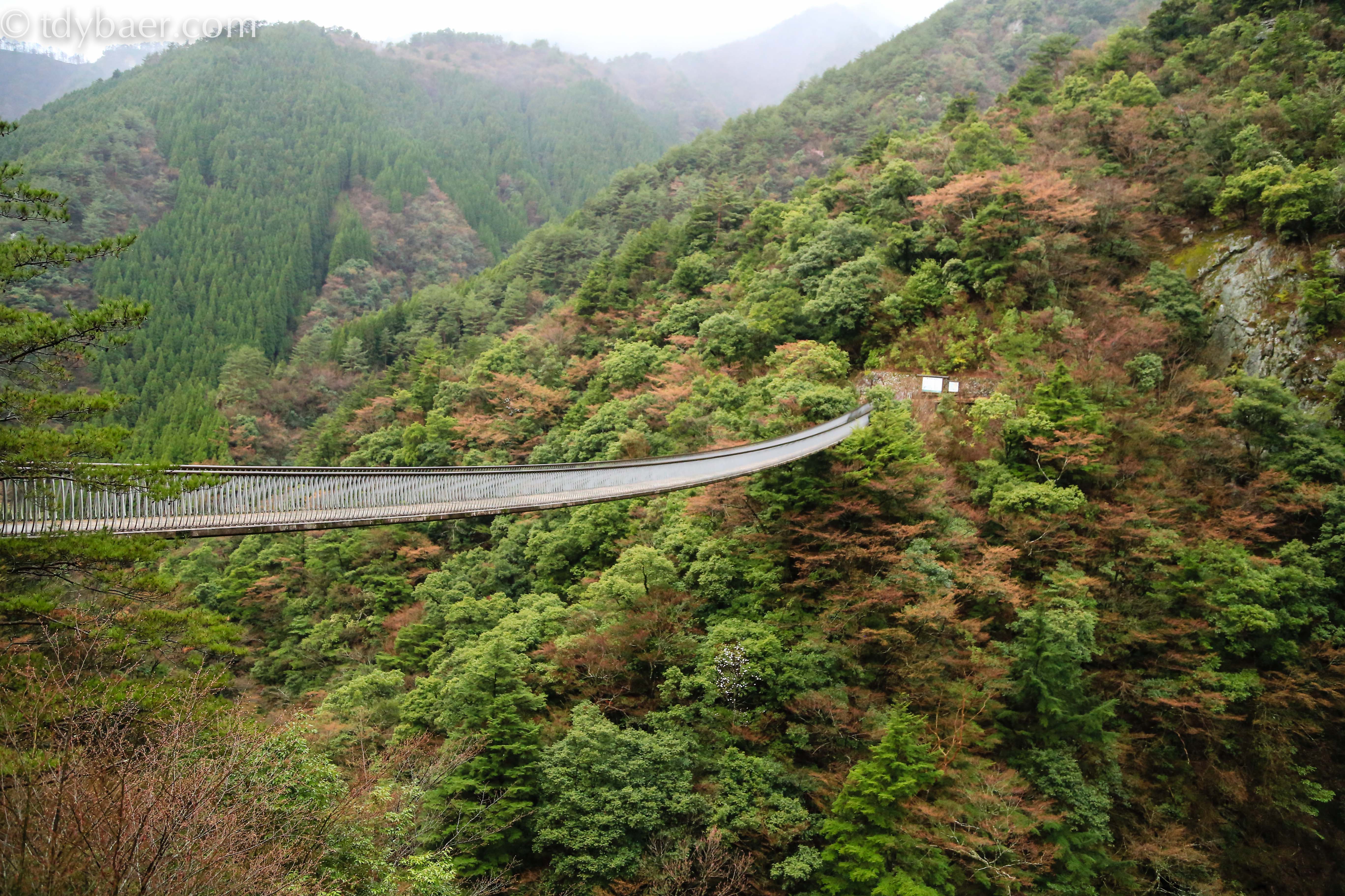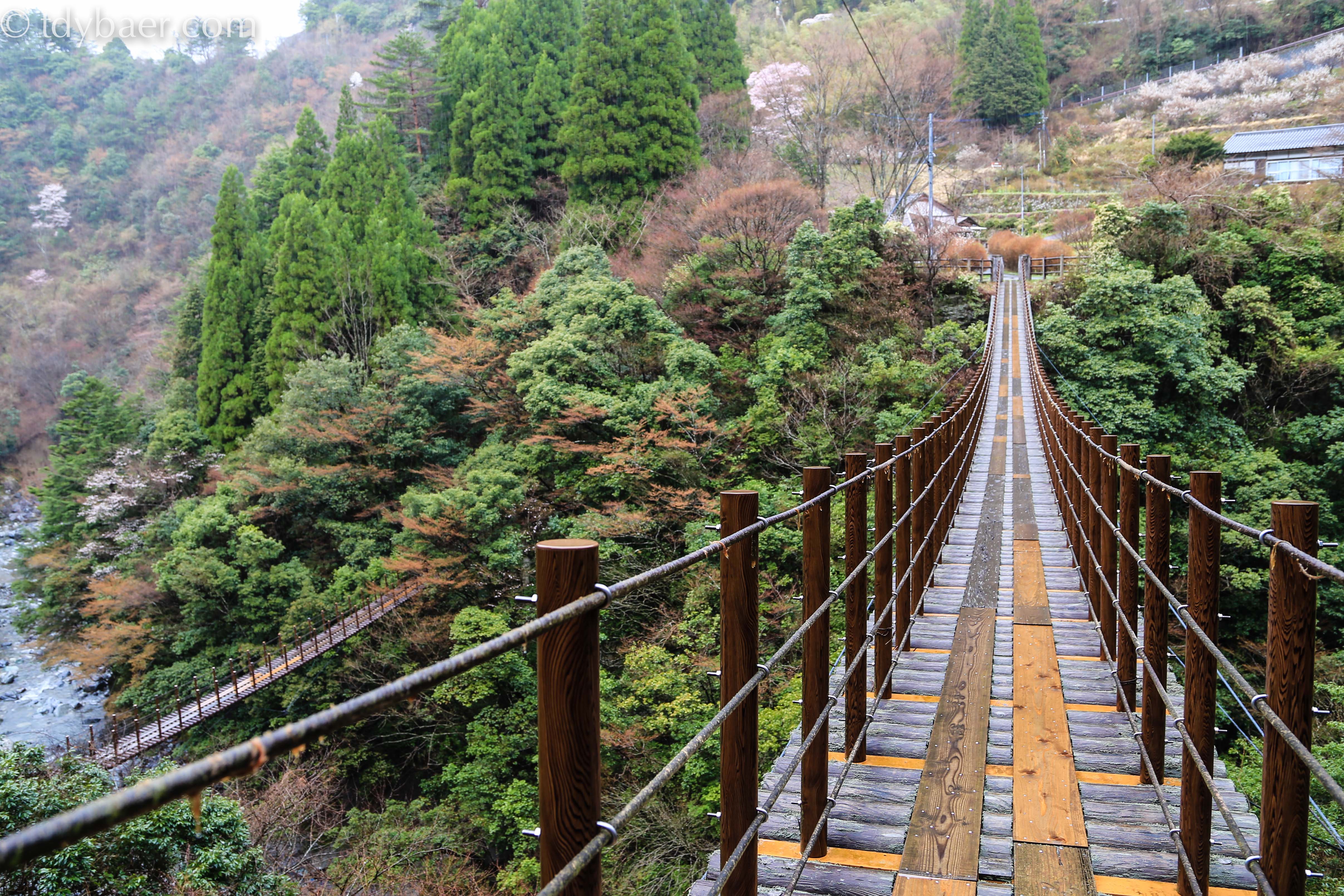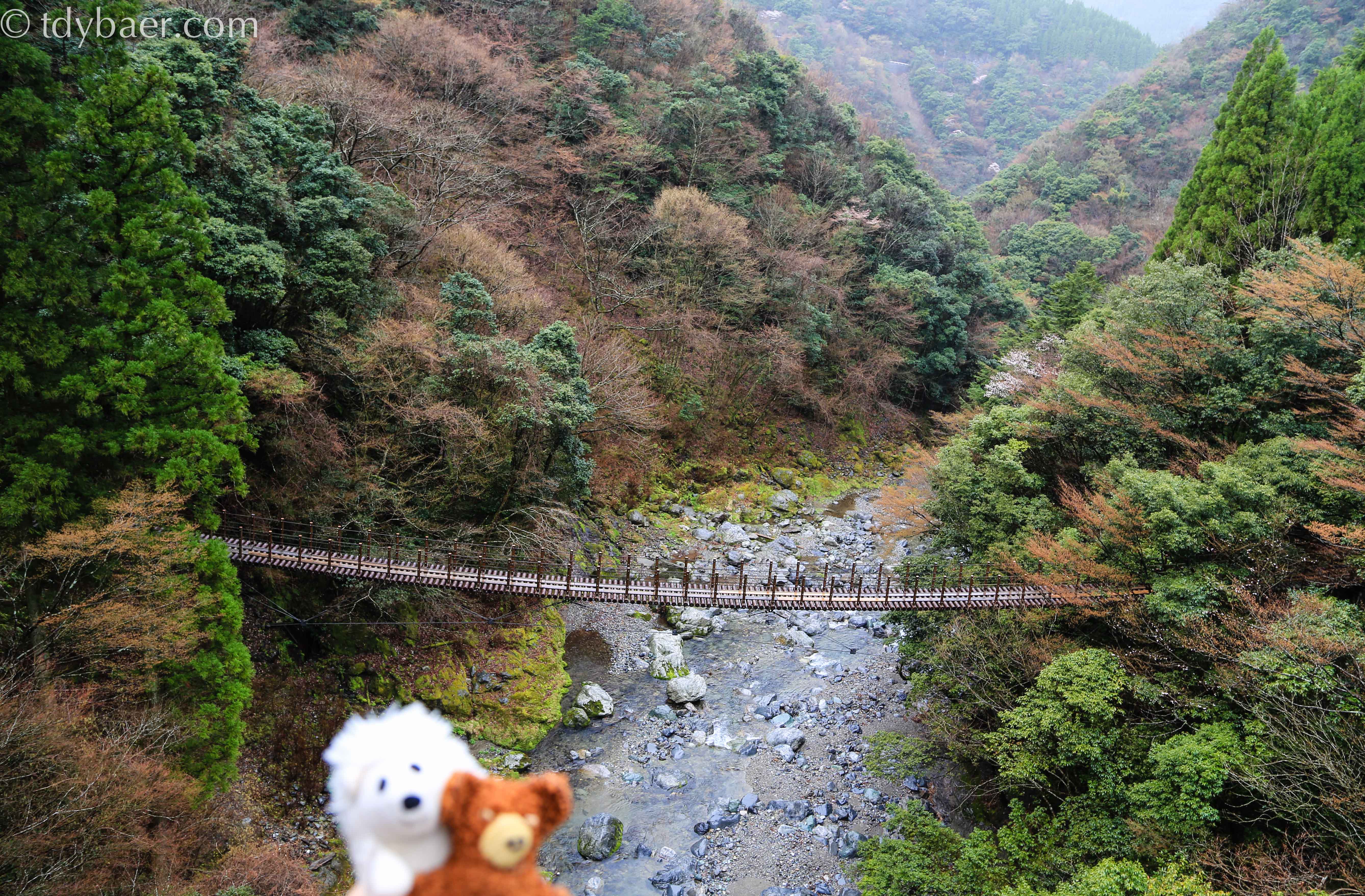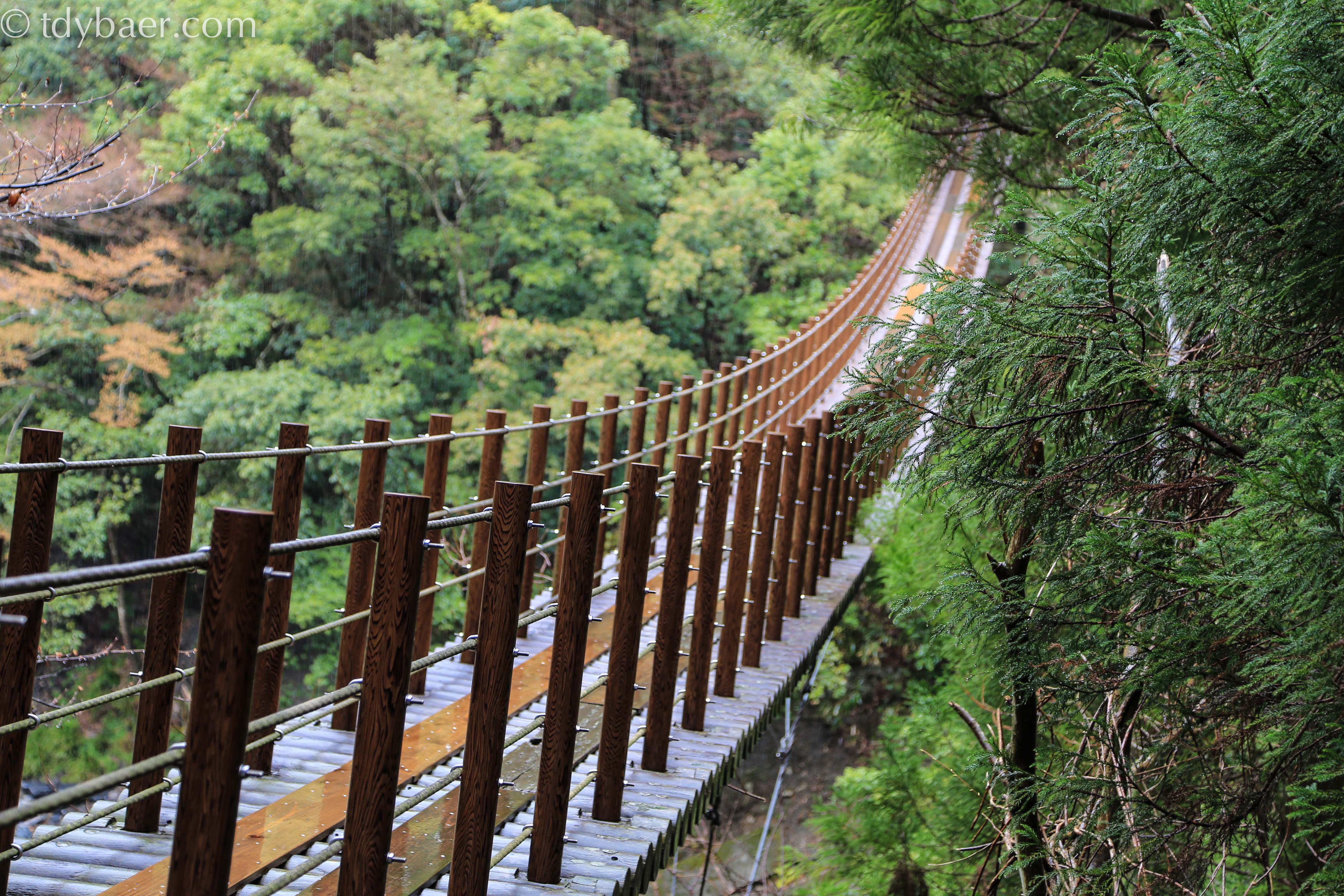 Zum Glück sind wir schwindelfrei. Die kleinere der beiden Brücken hört auf den Namen Shakunage-bashi, ist 59 Meter lang und 17 Meter oberhalb des Flusses aufgespannt.