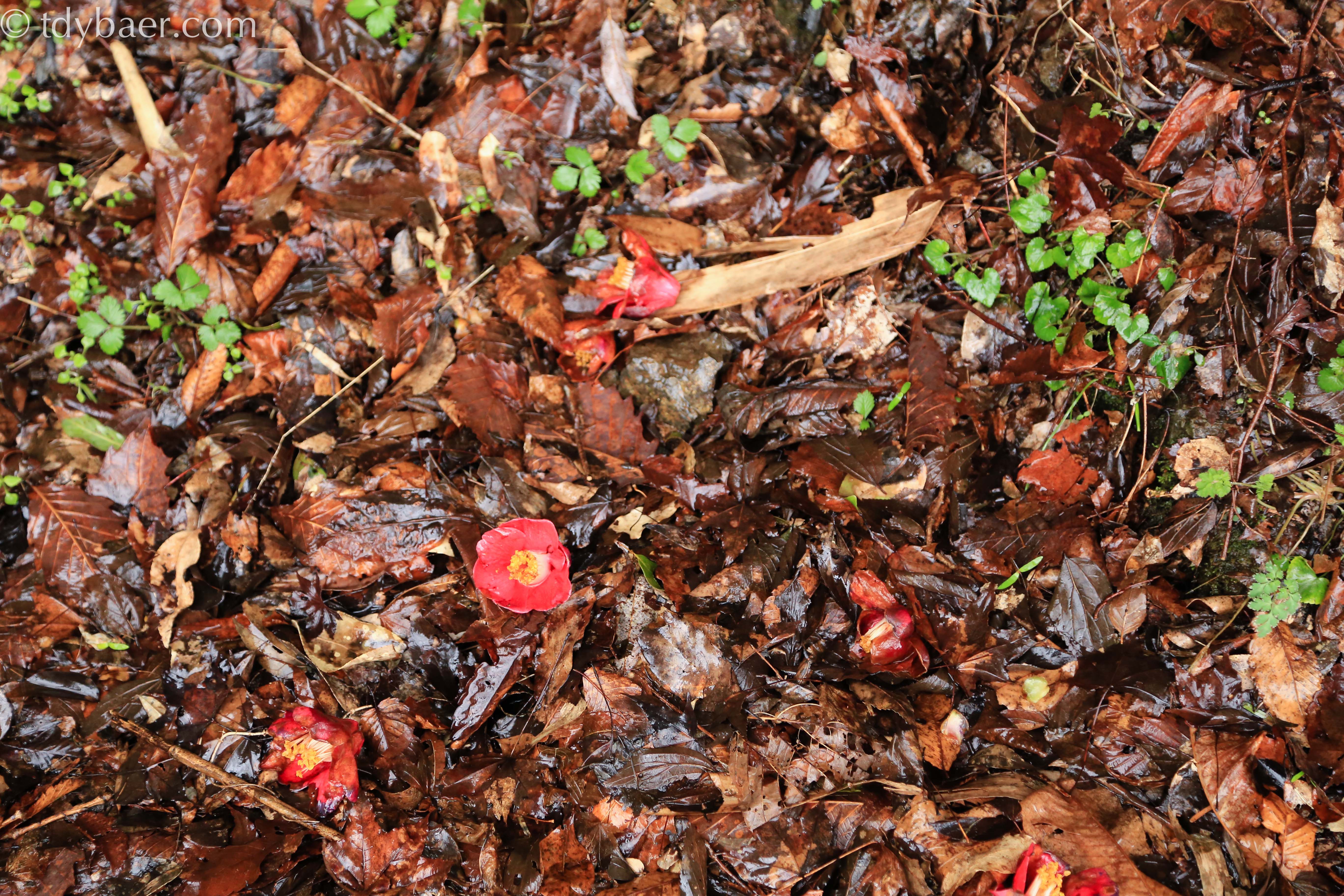 Durch den starken Regen fallen die schönen roten Blüten von den Bäumen. Ein schönes Fotomotiv für mich :-).