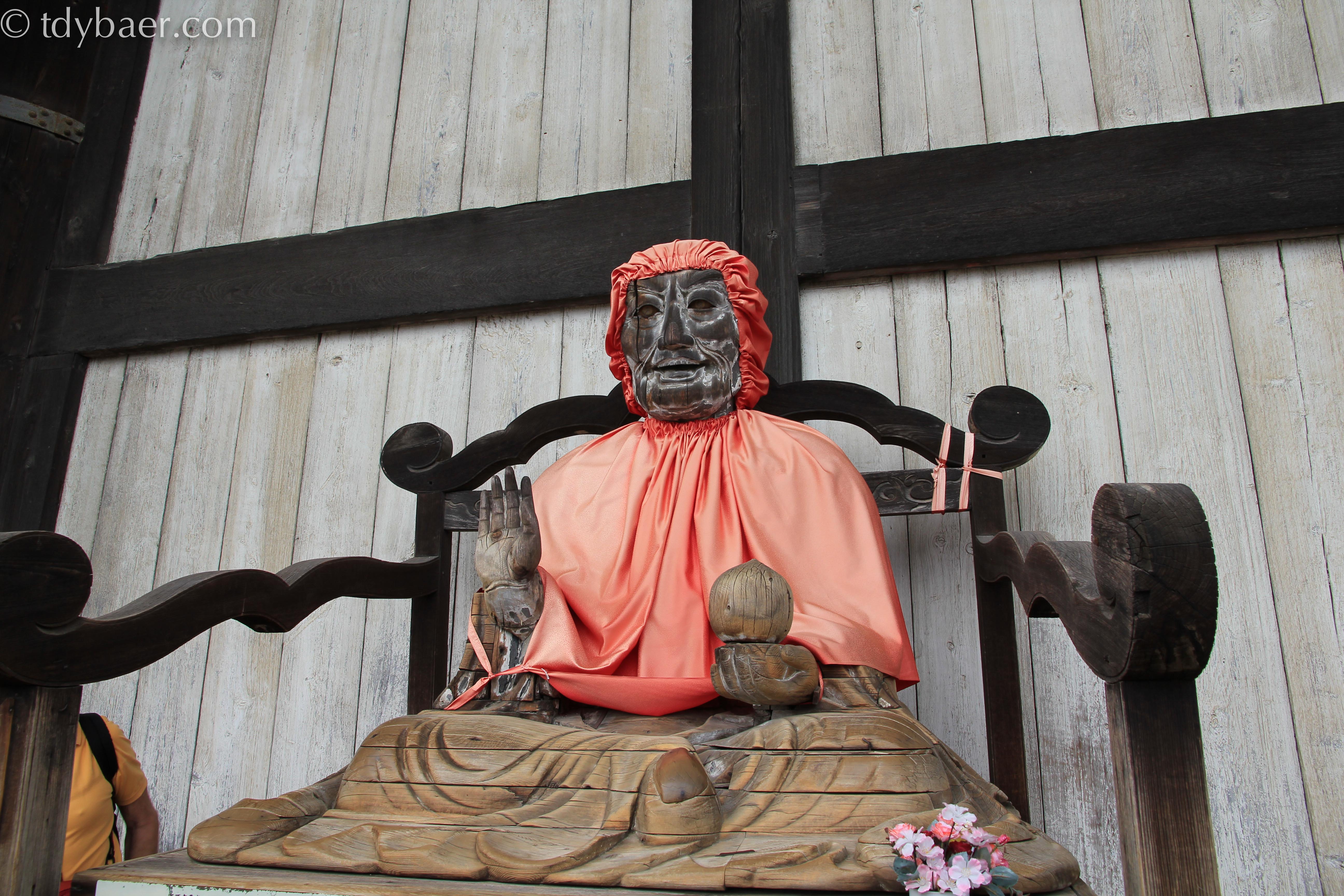 Außerhalb der Halle sitzt diese heilige Figur.