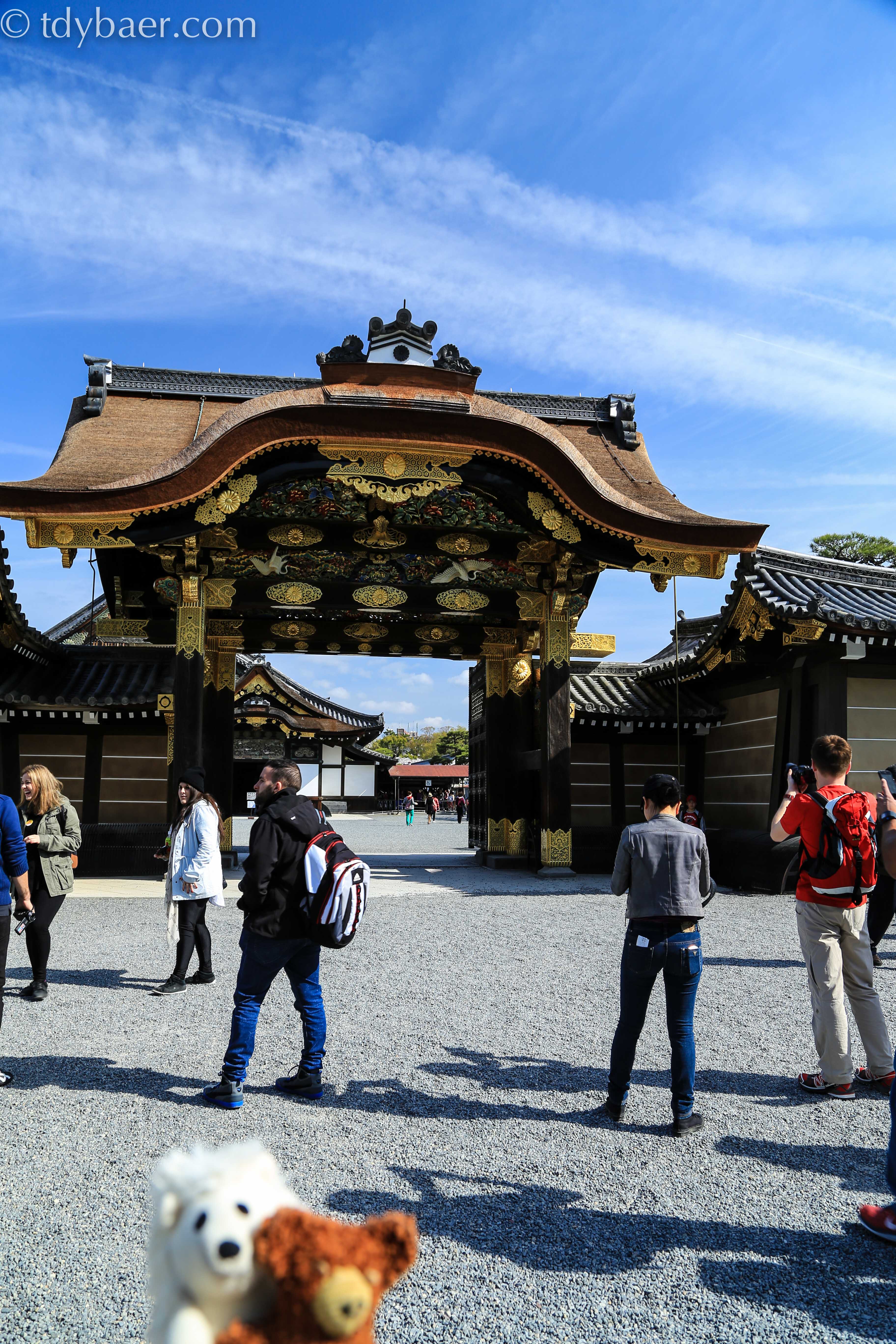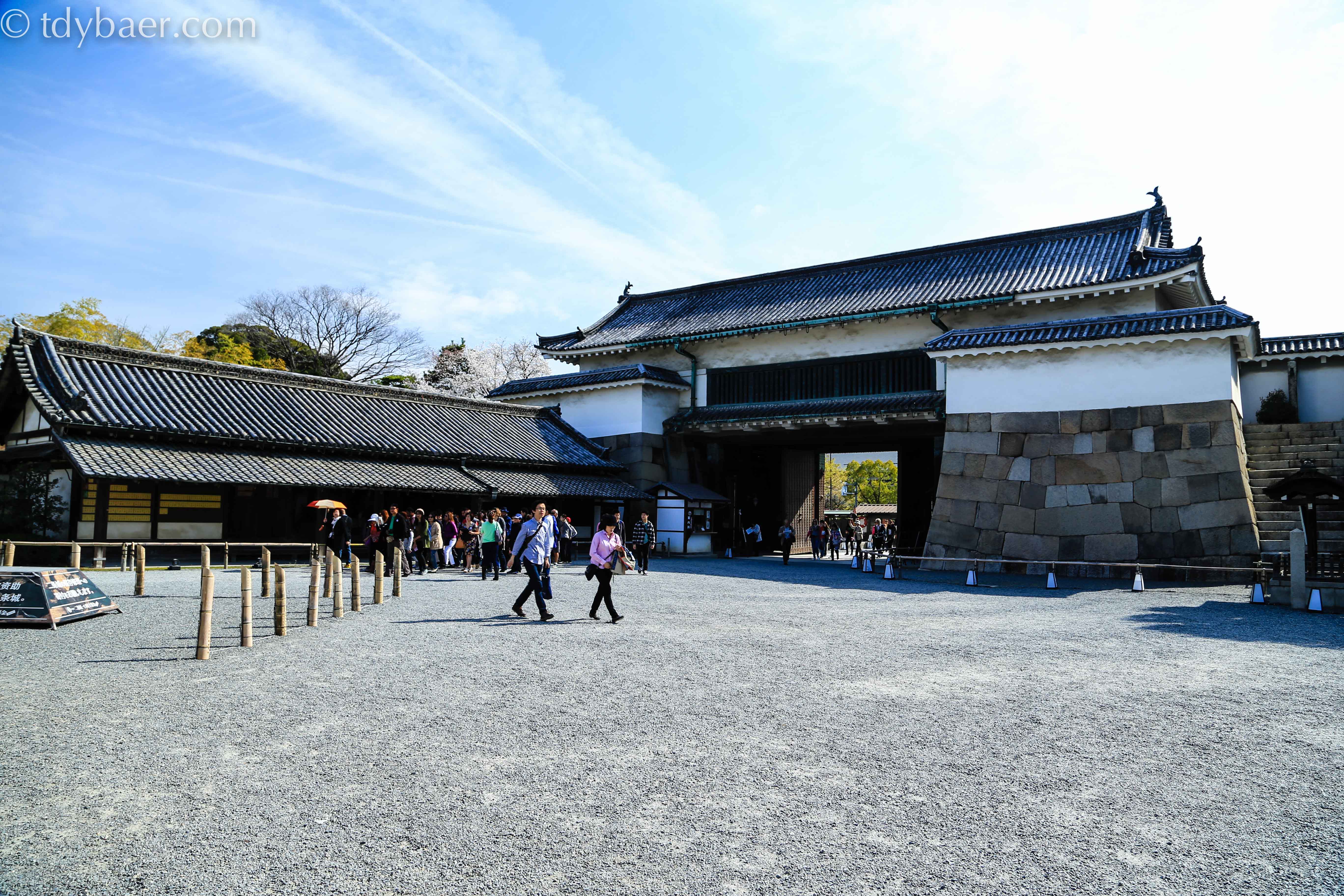 Der 1. Halt war das Nijo Castle – ein UNESCO Weltkulturerbe. Punkt 9 Uhr standen wir vor dem riesigen Eingangstor der weitläufigen Festung mit ihren wuchtigen Außenmauern und dem breiten Wassergraben.
