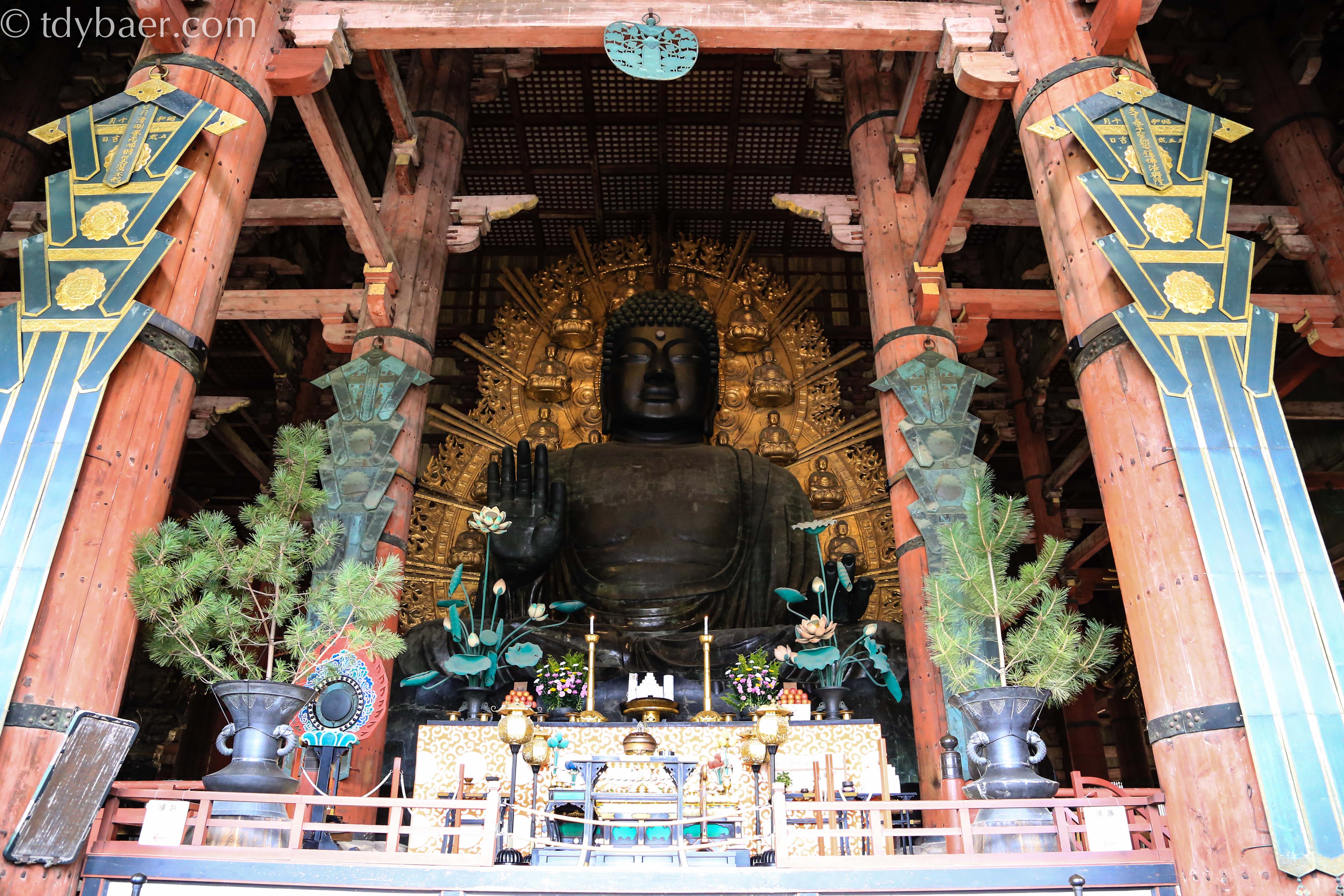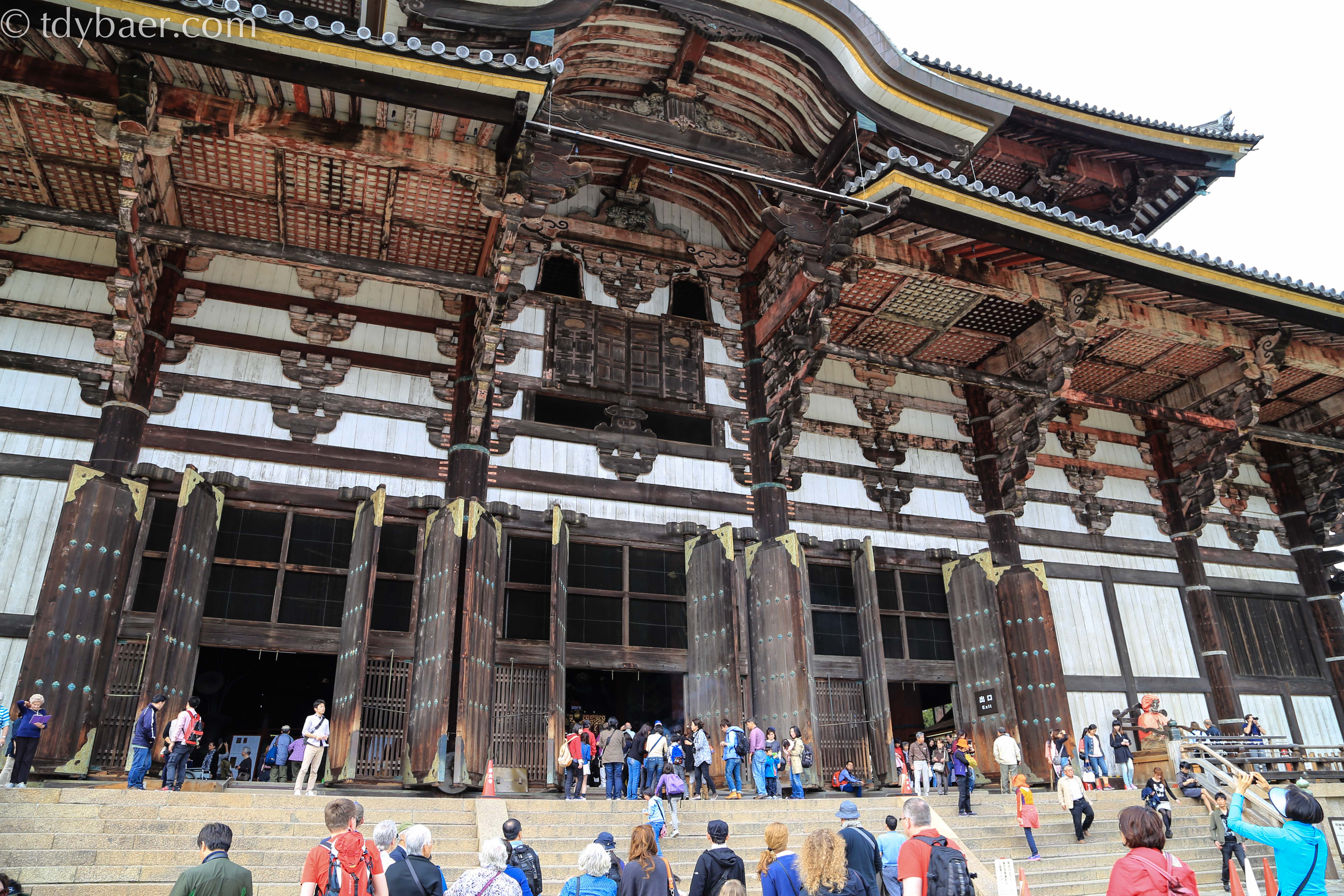 Die Halle – oder auch der Daibutsuden – ist nichts weniger als das größte Holzbauwerk der Welt. Es misst 57m in der Länge, 50m in der Breite und 49m in der Höhe.
