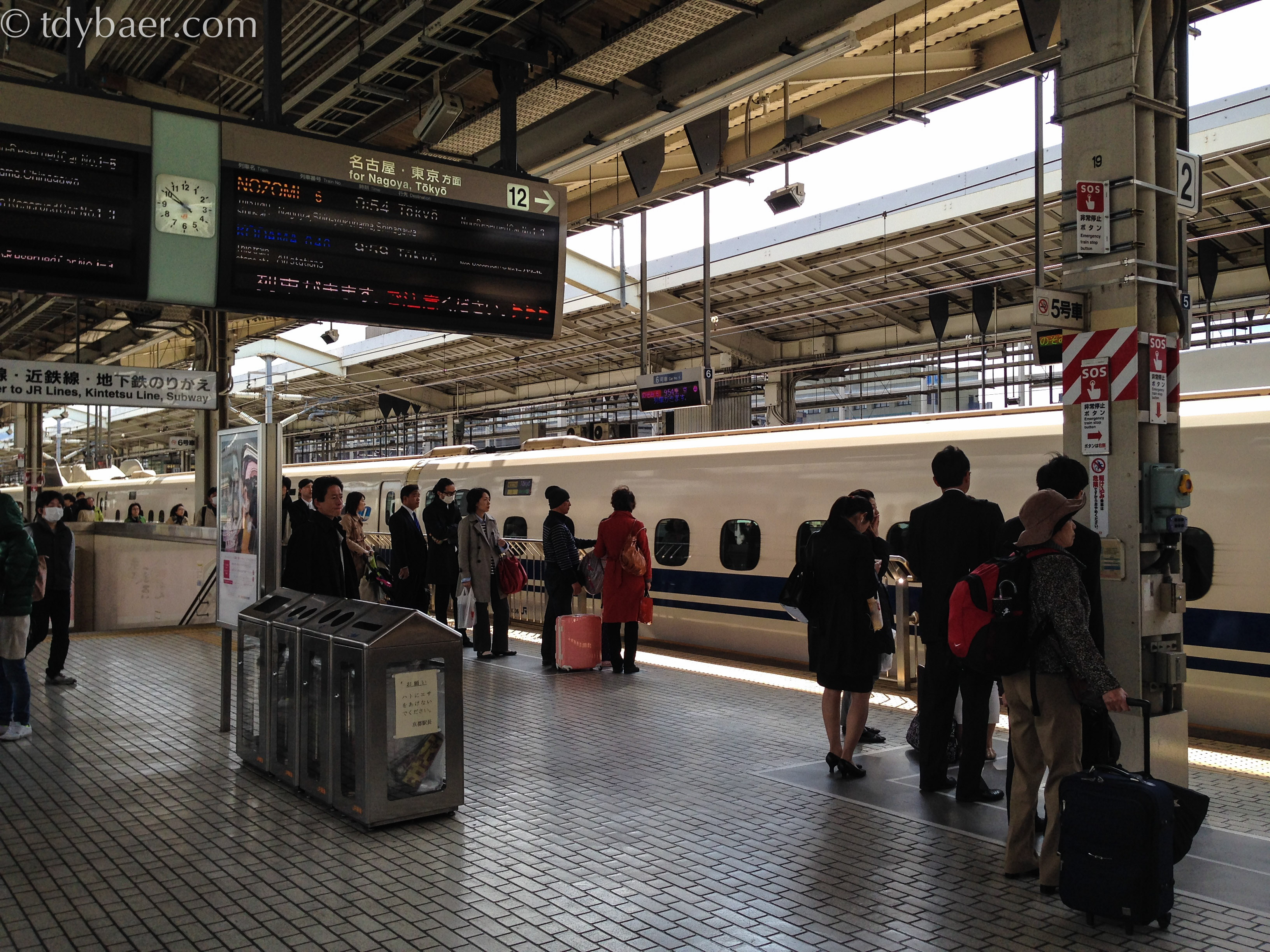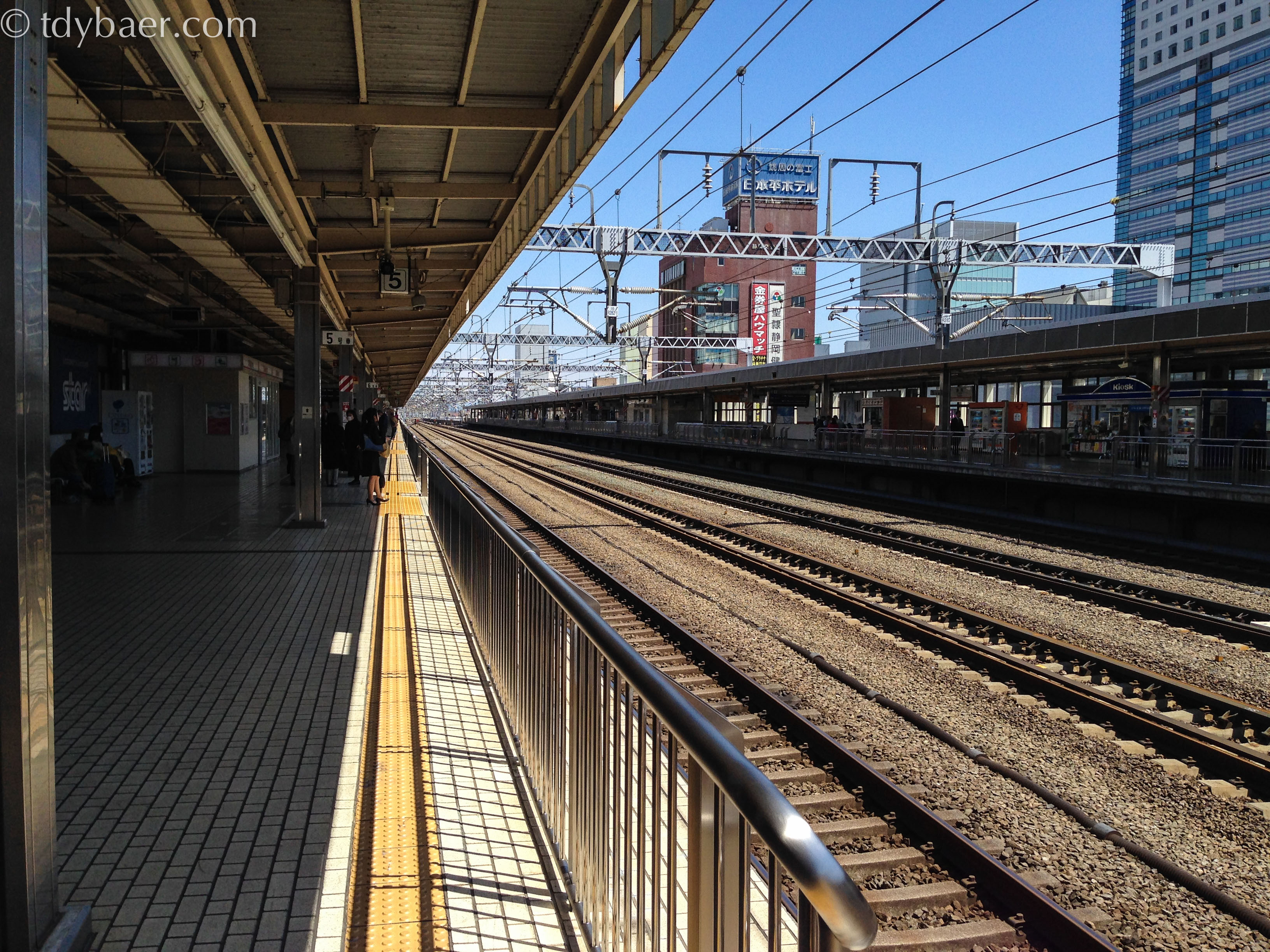 Nach dem Frühstück machten wir uns gemütlich auf den Weg zum Bahnhof und stiegen in den erstbesten Shinkansen Richtung Tokyo. Um direkt nach Odawara zu gelangen, stiegen wir nach einem netten Plausch mit einem Schaffner kurzerhand an dieser Station aus und in den darauffolgenden Shinkansen wieder ein :-). Wie praktisch, dass der Shinkansen Richtung Tokyo in so kurzen Abständen immer vom gleichen Gleis fährt!