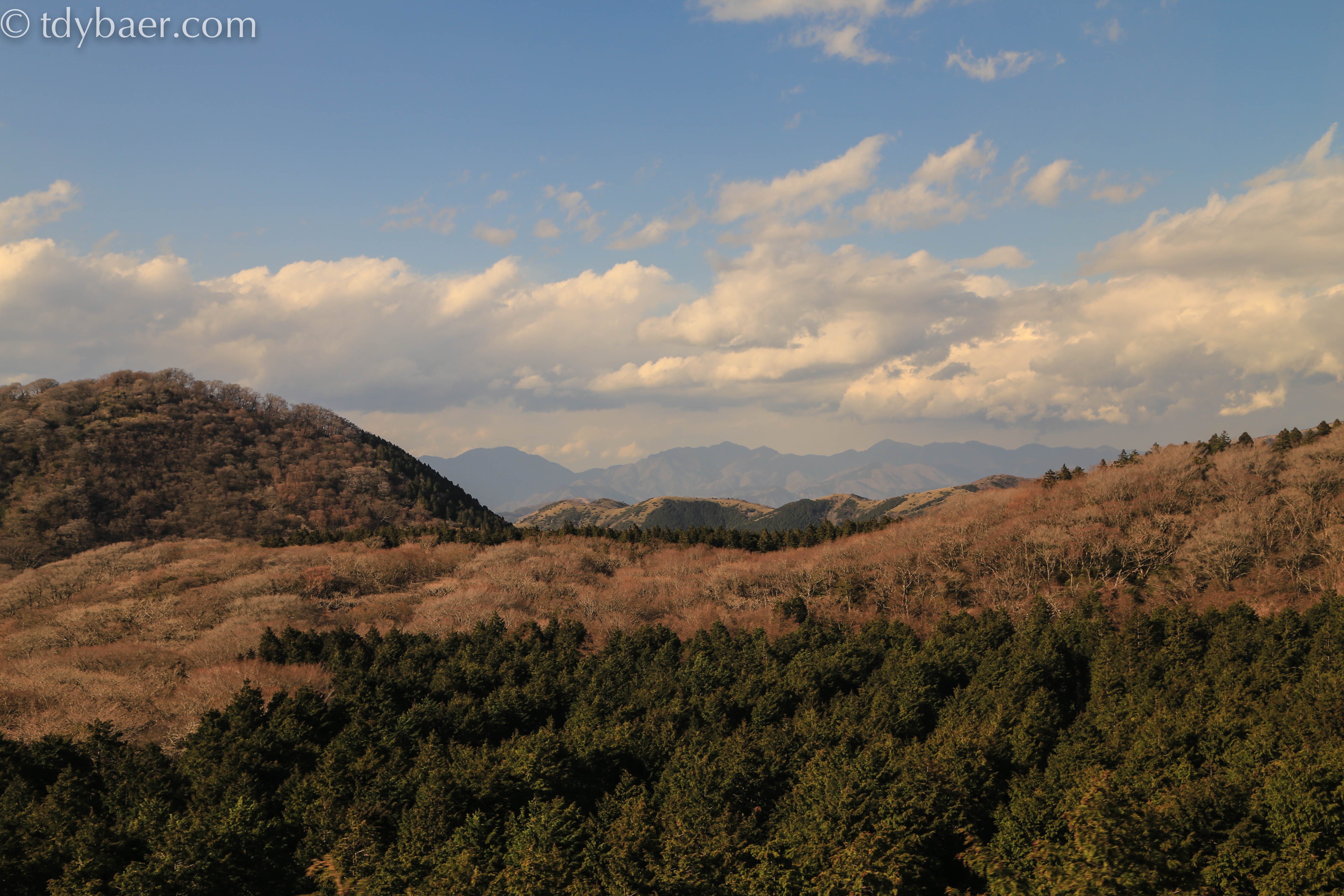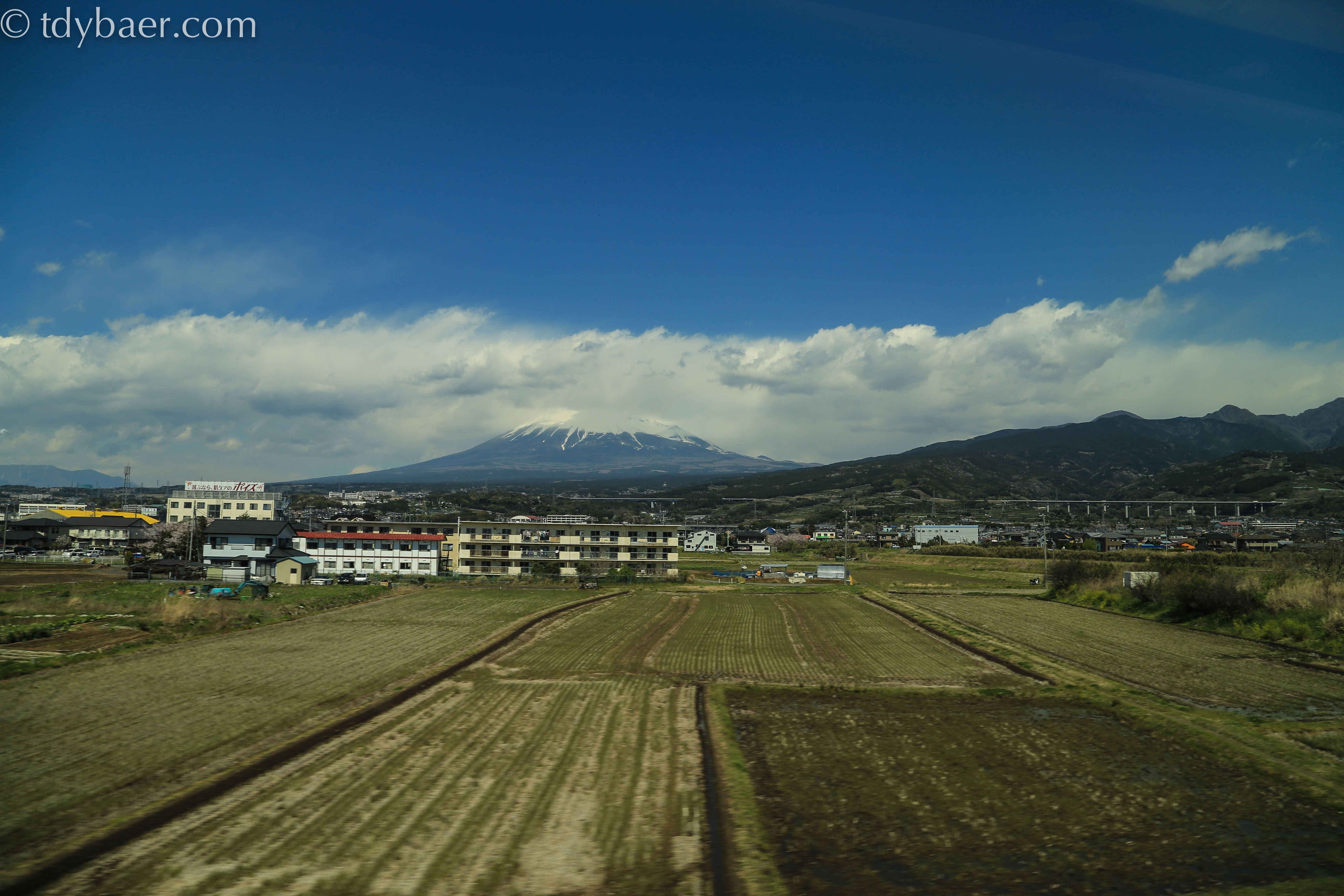 Bevor wir gegen Ende der langen Zugfahrt den Mt. Fuji zu Gesicht bekamen, genossen wir den Blick auf die vorbeirauschende Landschaft.