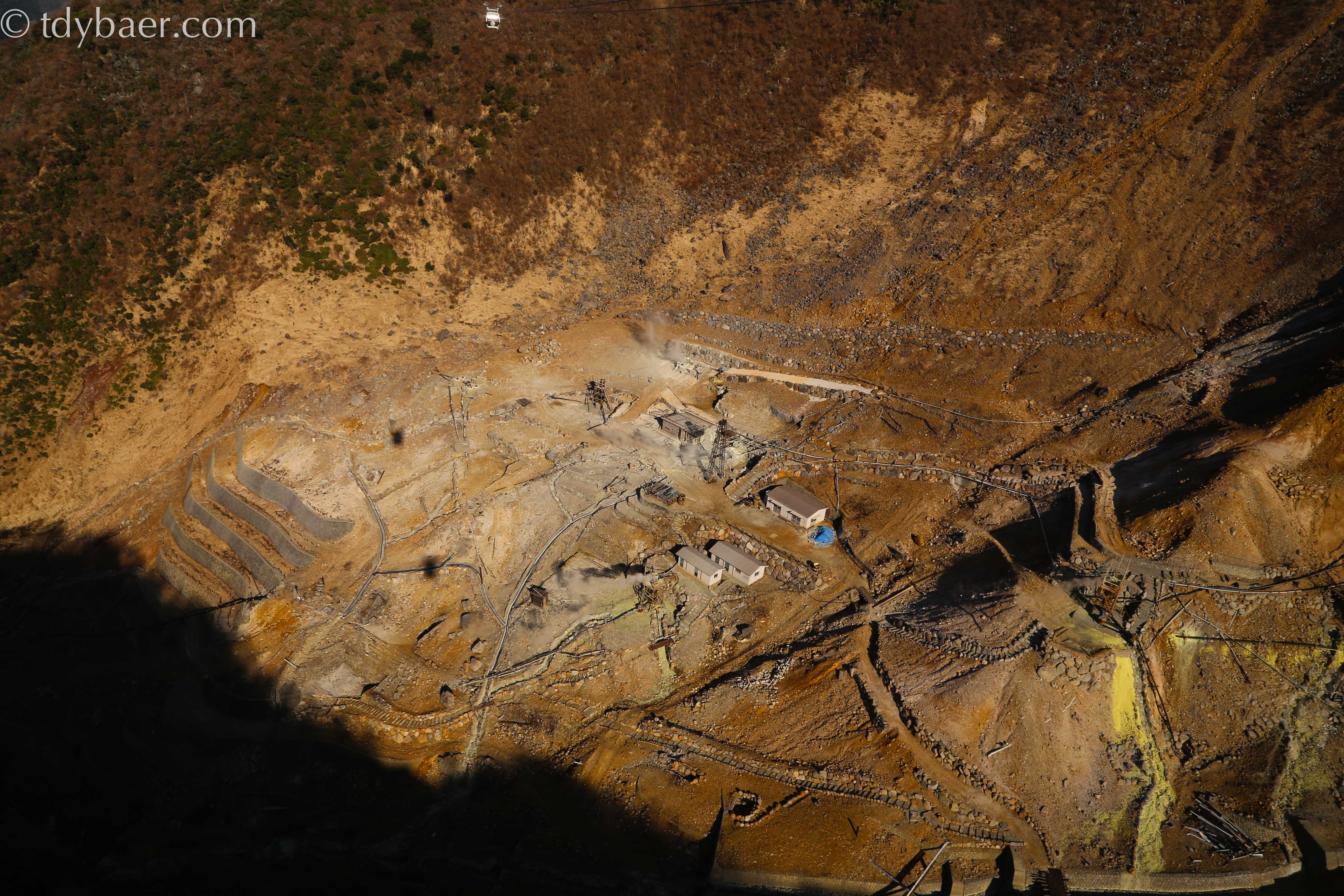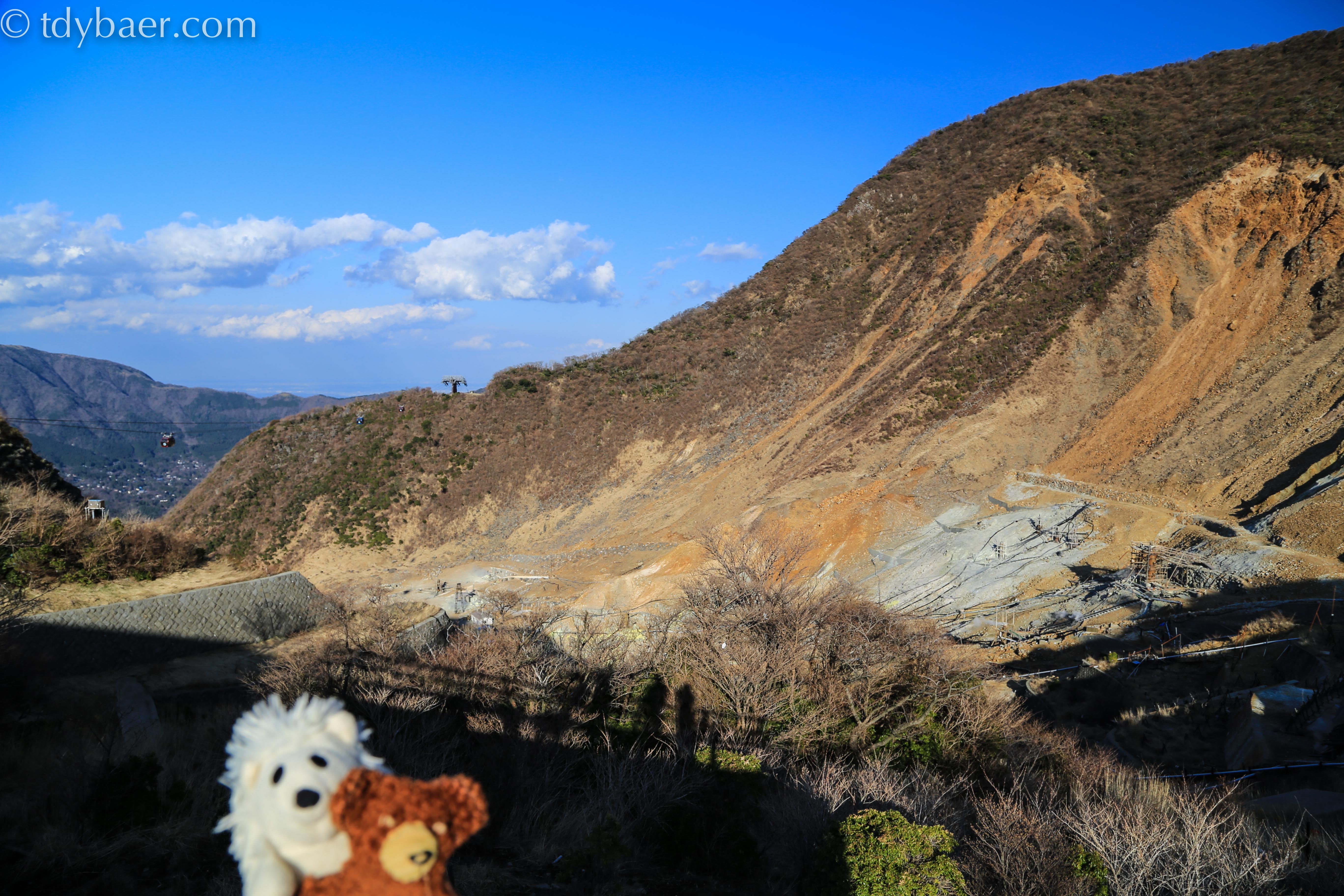 Bis zur Talstation am See Ashi wollten wir nicht fahren, denn da sollten wir morgen hin. Also fuhren wir wieder zurück und statteten den Schwefelquellen einen kurzen Besuch ab :-).