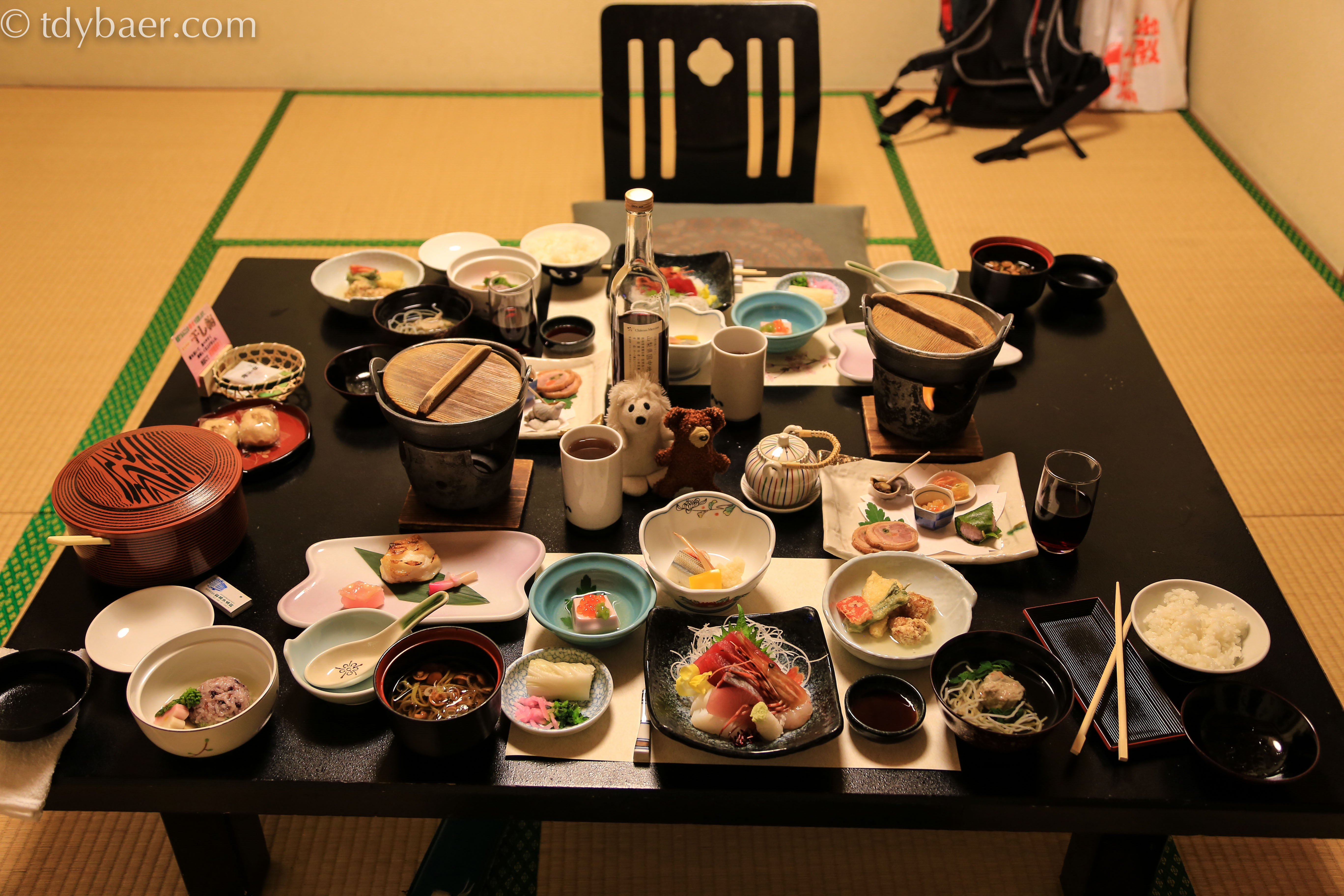 Das Abendbrot gab es heute wieder im Hotel und war wieder super lecker. Da wir ja jetzt wieder in einer ganz anderen Region Japans waren, unterschied es sich auch von den anderen japanischen Mahlzeiten. Hier wird anscheinend gerne Fisch gegessen :-). Zum Glück, dass wir Alles-Esser sind!