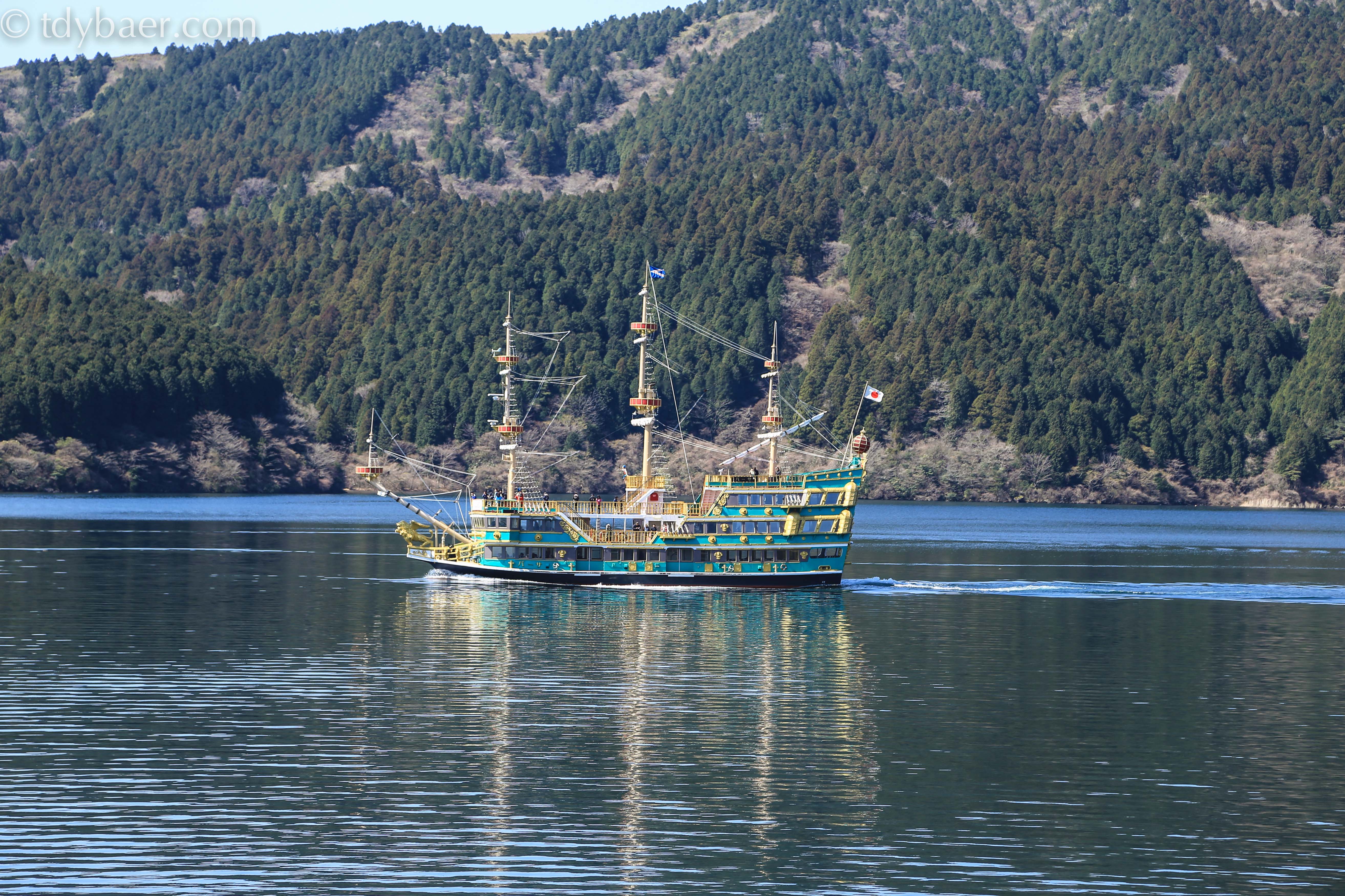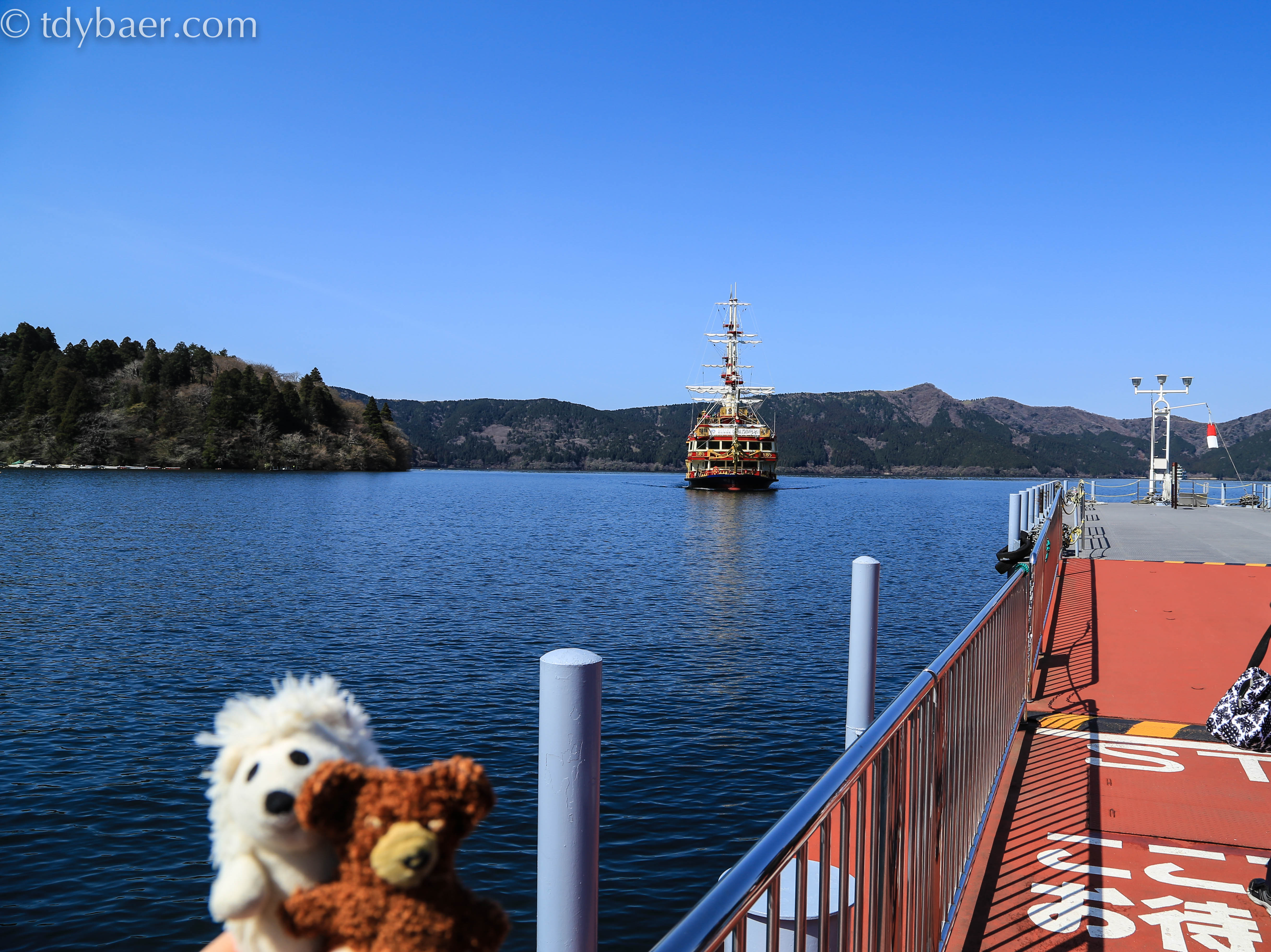 Auf dem Weg zum anderen Ende des Sees, kam uns das zweite Schiff der Hakone Sightseeing Cruise entgegen. Auch ein sehr schönes Schiff.