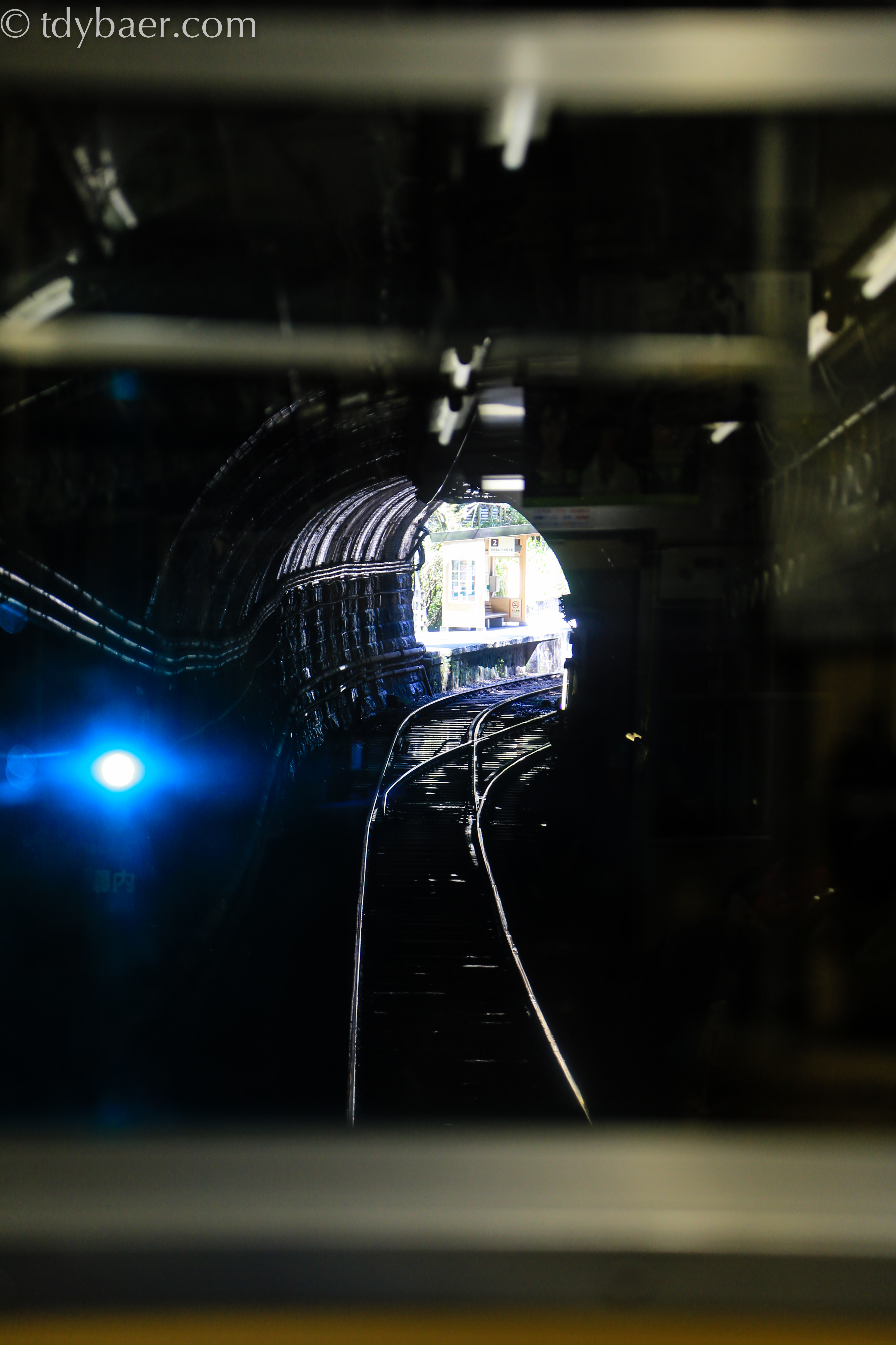 Hier ein Blick in einen der vielen Tunnel, die man auf der Zugfahrt durchfährt. Die Strecke führt mitten durch die Berge, ist ziemlich steil und landschaftlich sehr sehenswert.
