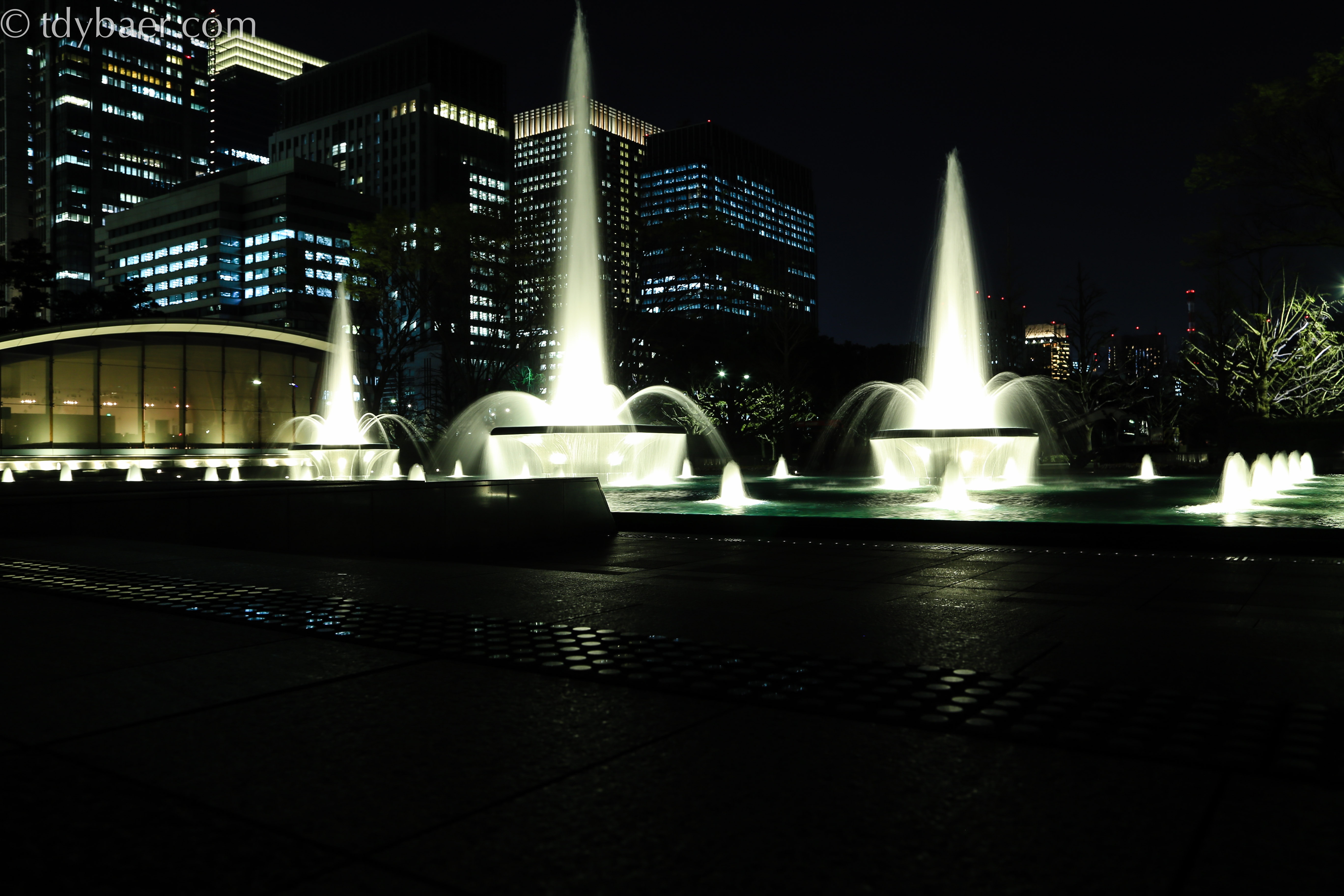 Ohne großen Plan spazierten wir etwas durch das Geschäftsviertel in Richtung des Kaiserpalastes. Beim Palace Hotel Tokyo verweilten wir fasziniert einen Moment vor diesem tollen Springbrunnen.
