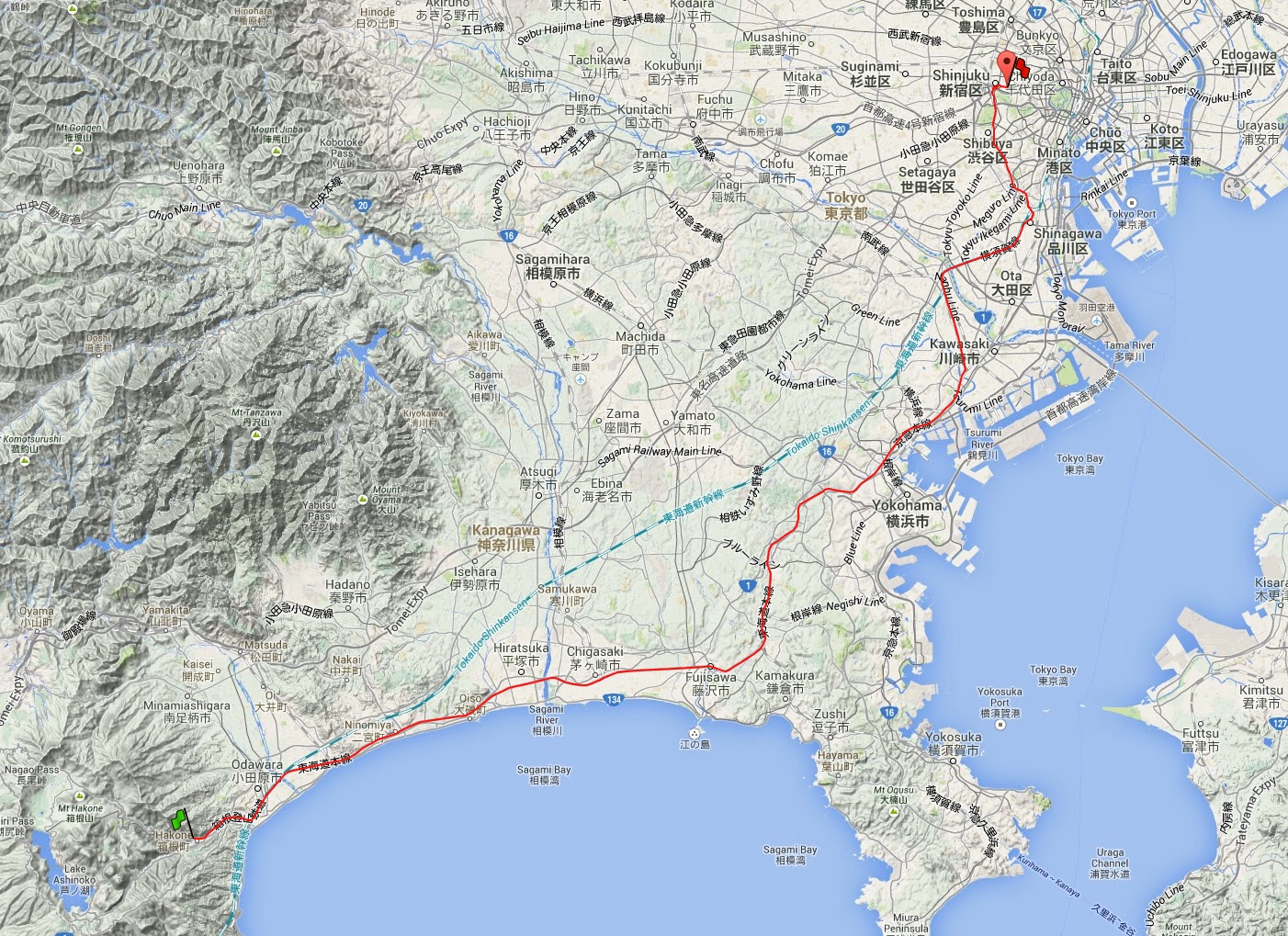 Wir holten unsere Koffer im Hotel ab und fuhren zurück nach Odawara. Hier stiegen wir in einen lokalen Zug um, mit dem wir bis nach Tokyo-Shinjuku fuhren.