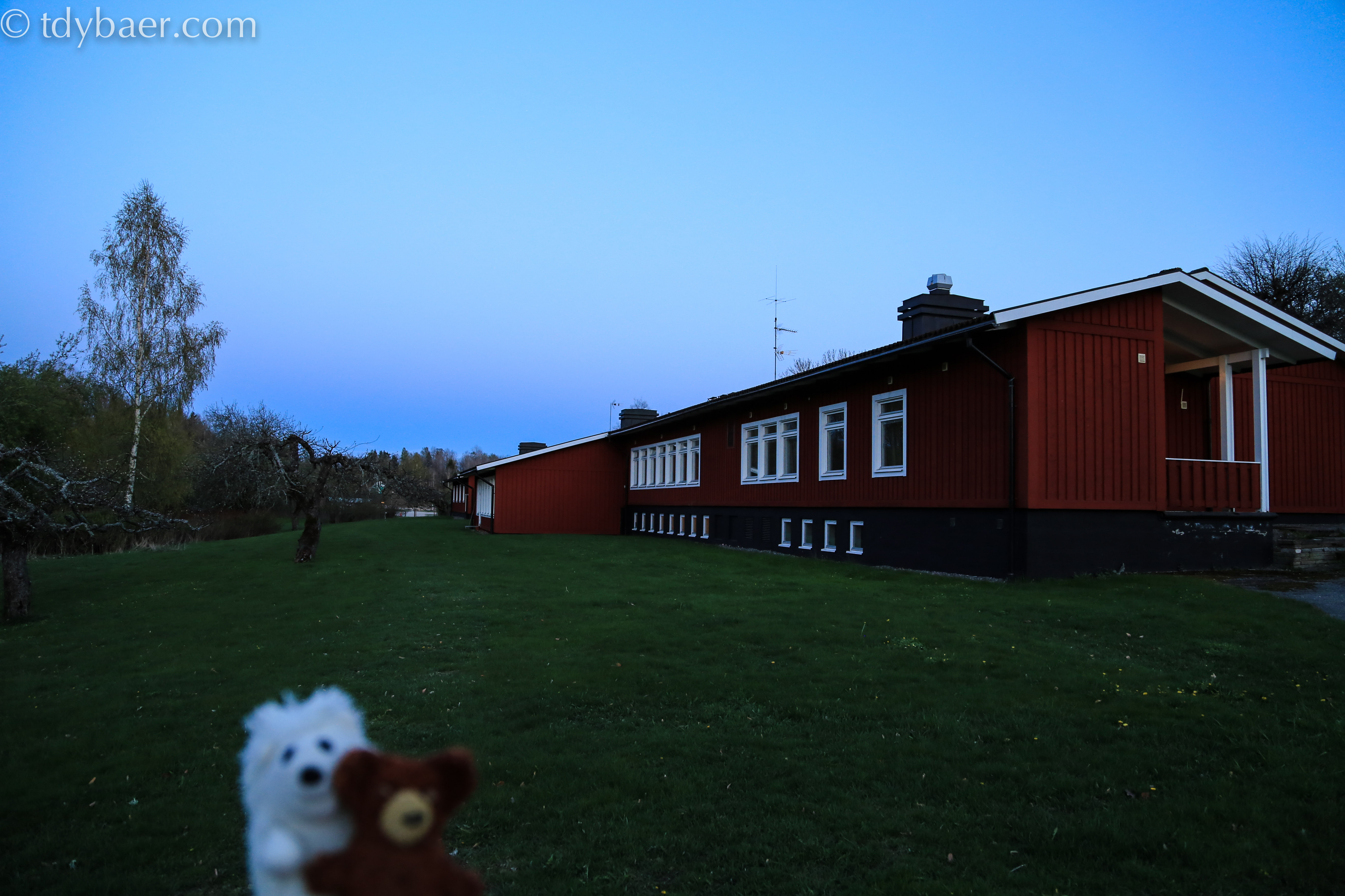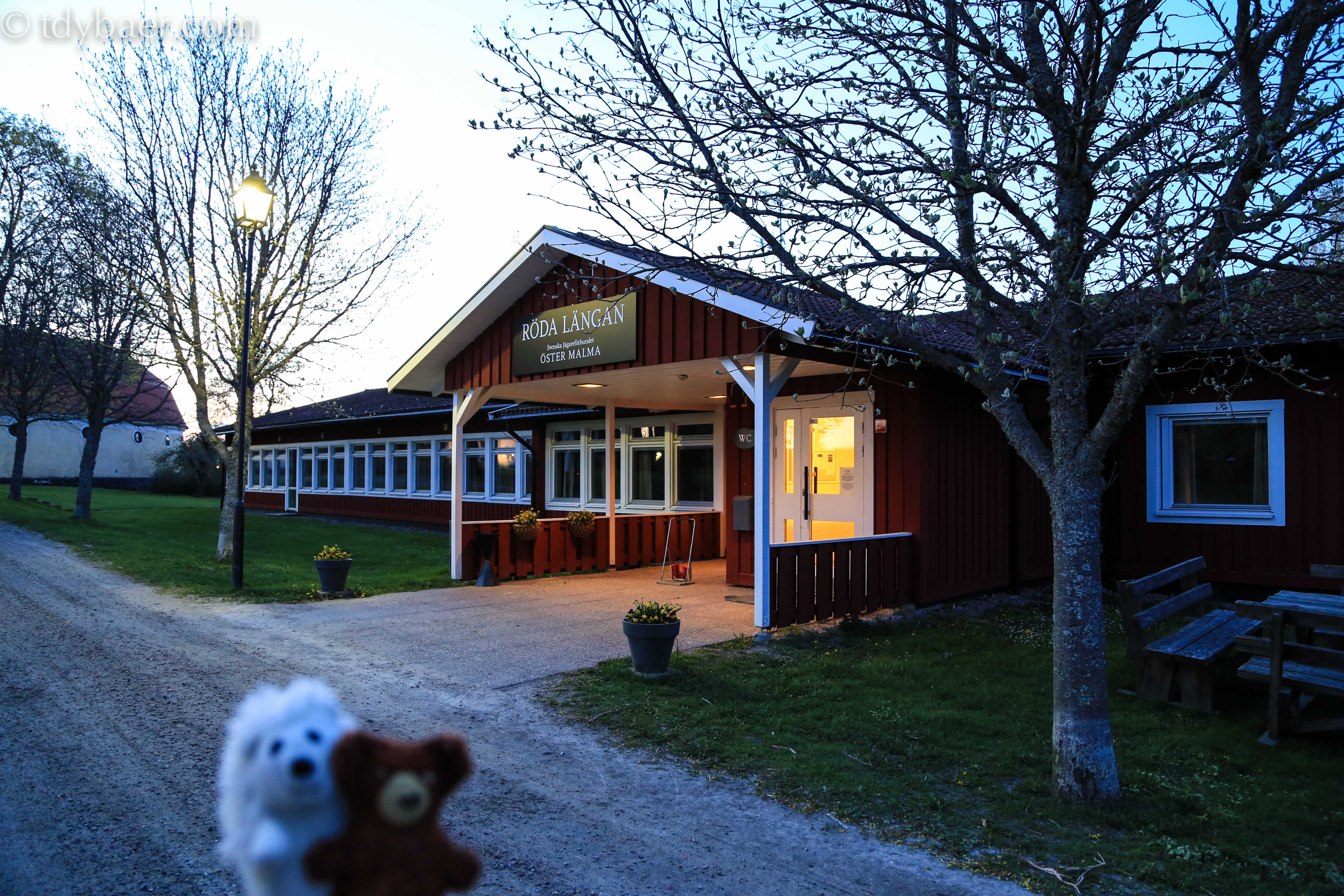 Gegen 21 Uhr erreichten wir das schöne Anwesen. Unseren Zimmerschlüssel holten wir aus dem Briefkasten und schon konnten wir unser einfaches aber schönes Zimmer beziehen. Hier kommt man sich vor wie im Schullandheim :-). Man hat die Möglichkeit in einem der schicken Zimmer im Schloßflügel zu übernachten oder wie wir in den etwas günstigeren Zimmern im Röda Längan, dem roten Gebäude im Hintergrund. So oder so Natur und Ruhe pur.