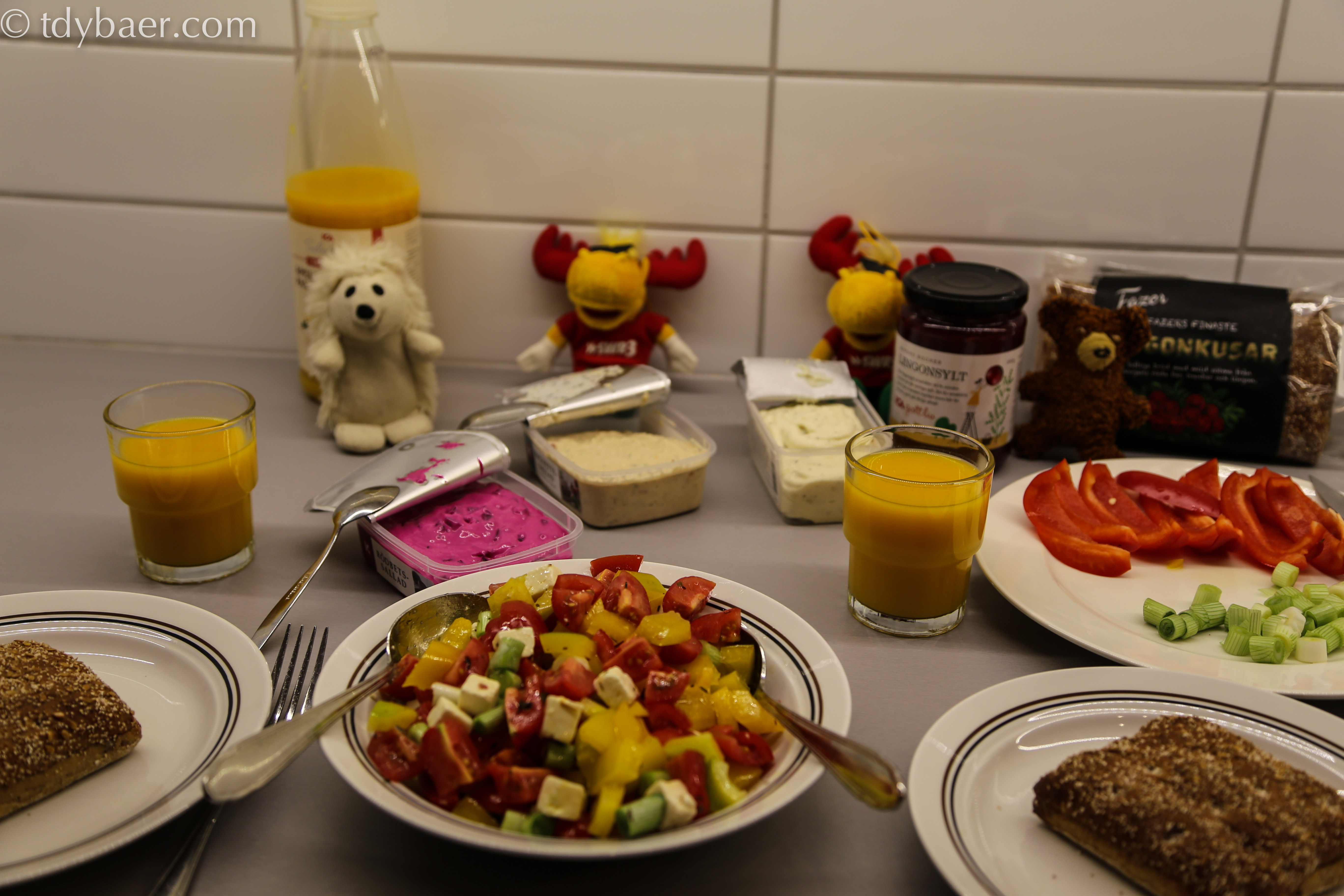 Auf dem Weg vom Flughafen hierher haben wir natürlich noch einen ICA Supermarkt überfallen und fürs Abendbrot vorgesorgt. Ach ja, die zwei Elche von SWR3 konnten wir bei einem Tripp nach Schweden natürlich nicht zu Hause lassen :-).