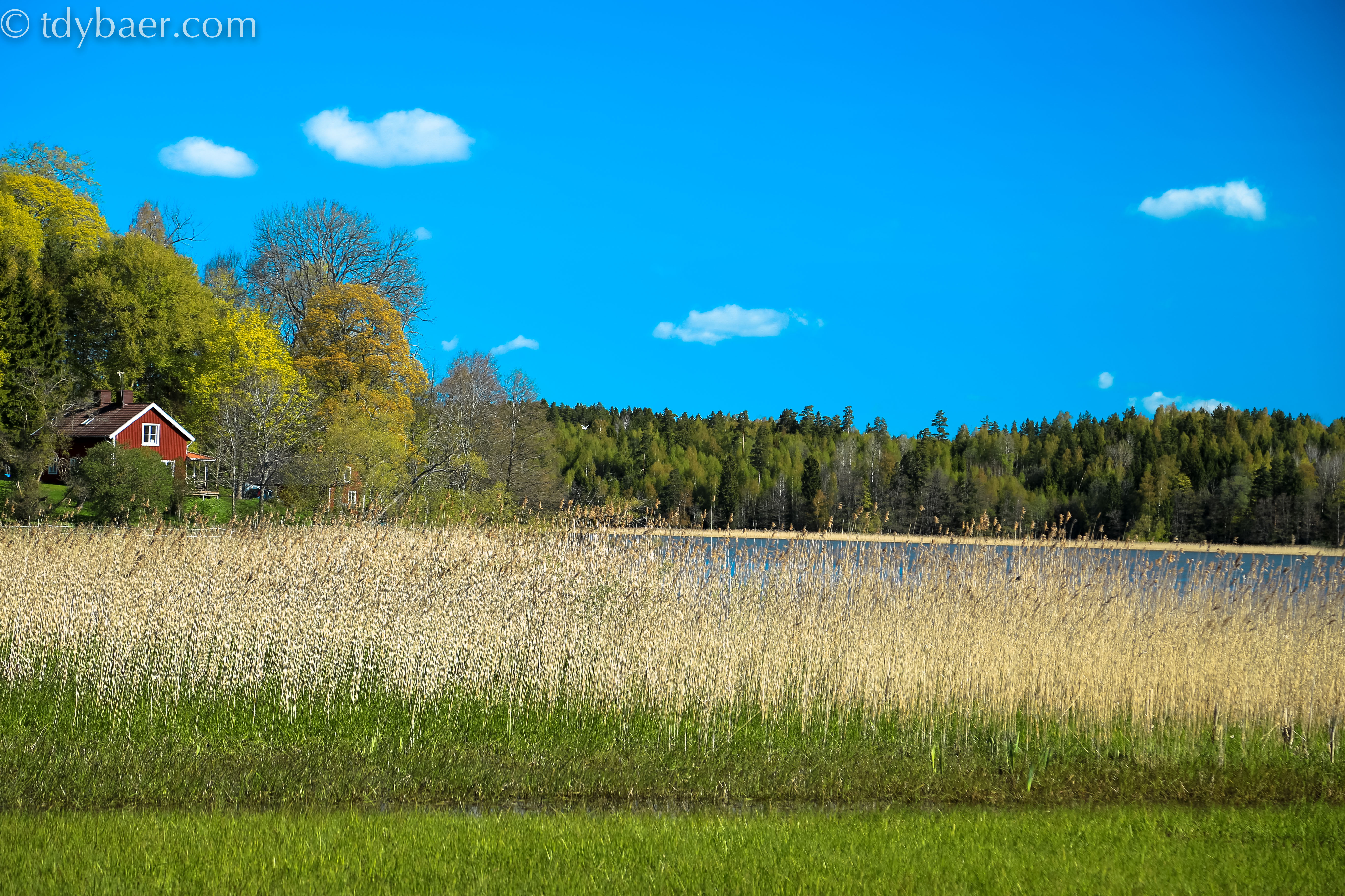 Deshalb lieben wir Schweden. Unendliche Weite, viel Wasser, Wald, Wiesen und die süßen roten Häuschen.