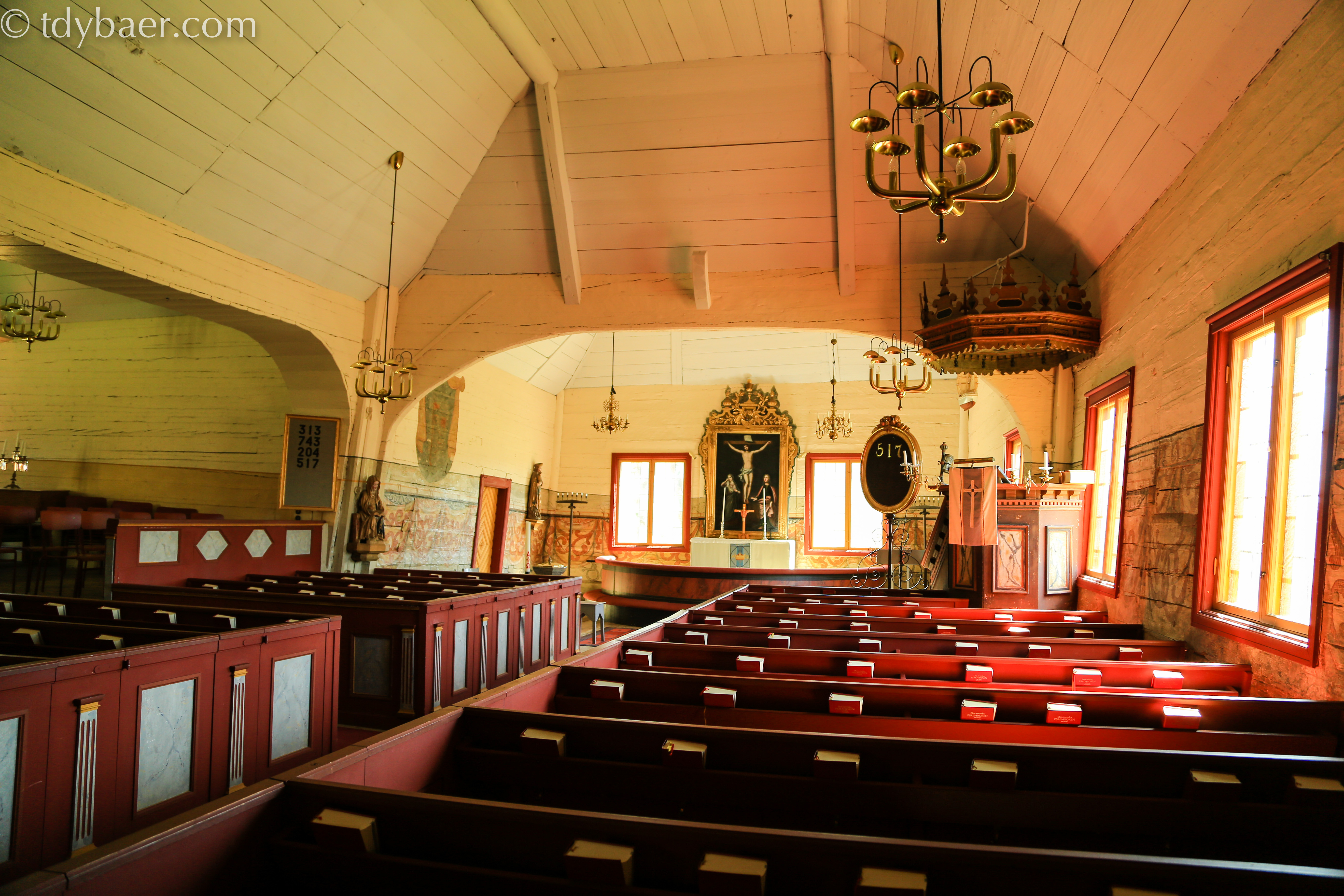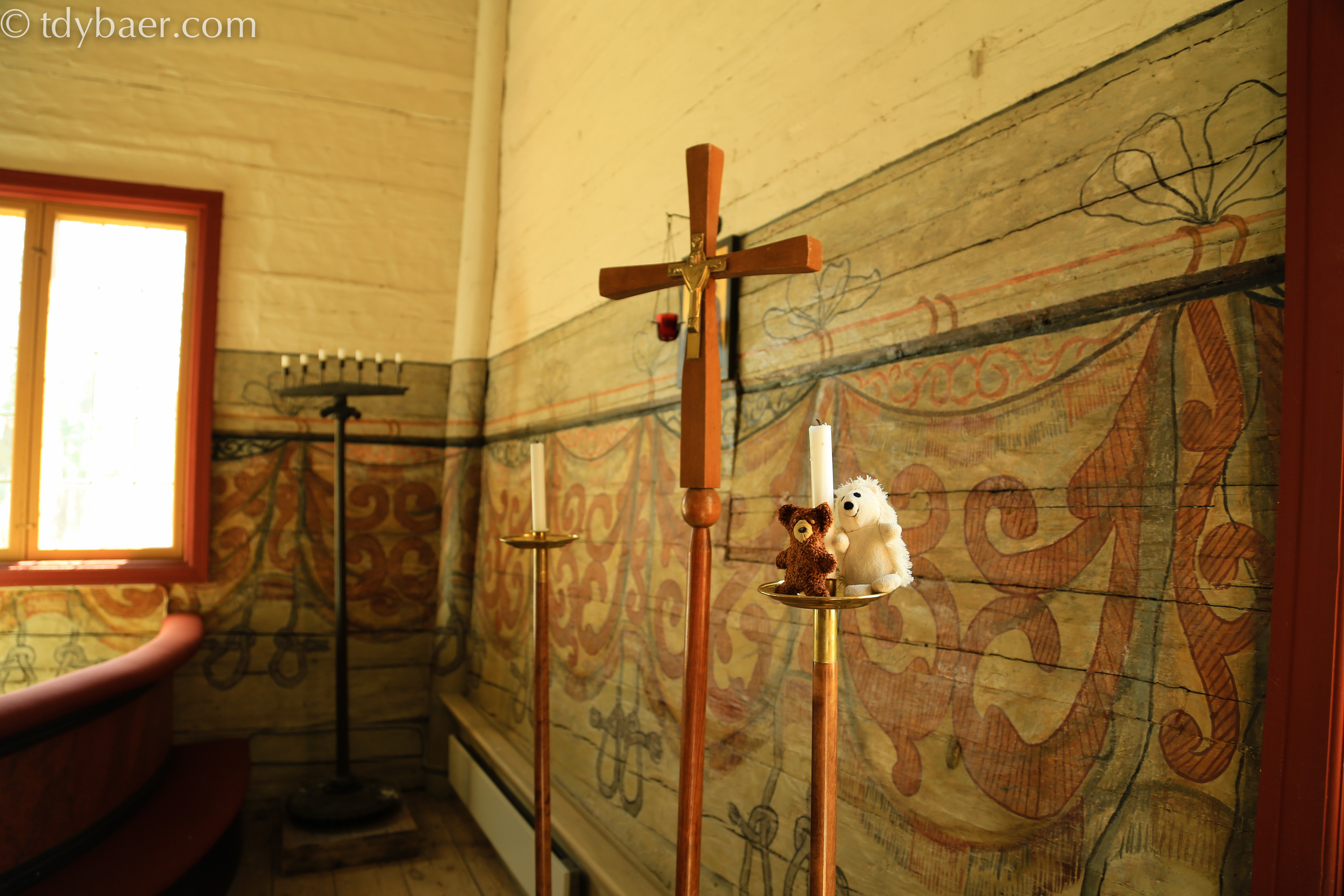 Es lohnt sich einen Blick in das Innere der Kirche zu werfen, denn hier hat man das Gefühl auf einem alten Holzschiff zu segeln. Die Wände sind sehr schön bemalt und liebevoll gestaltet.