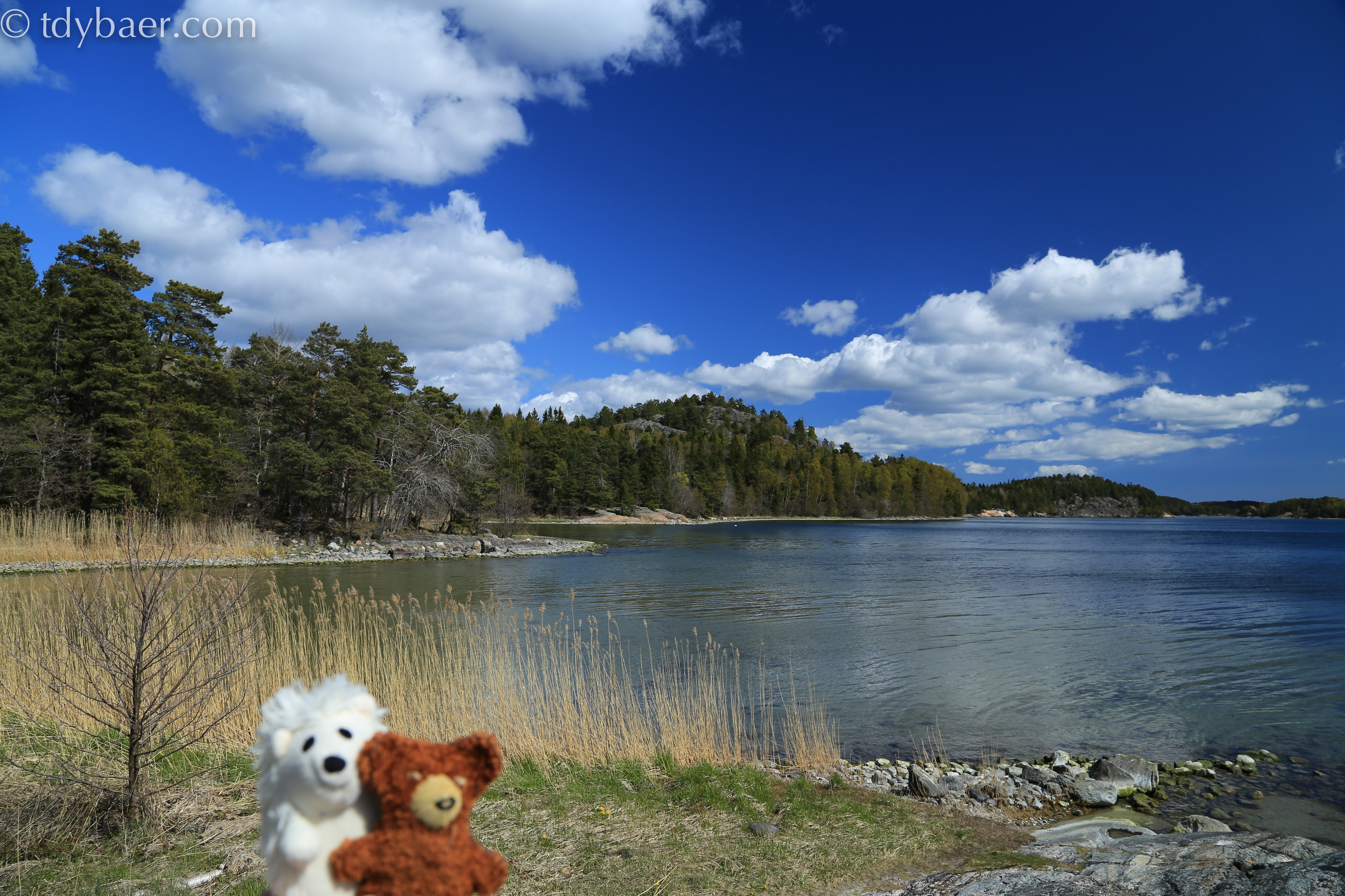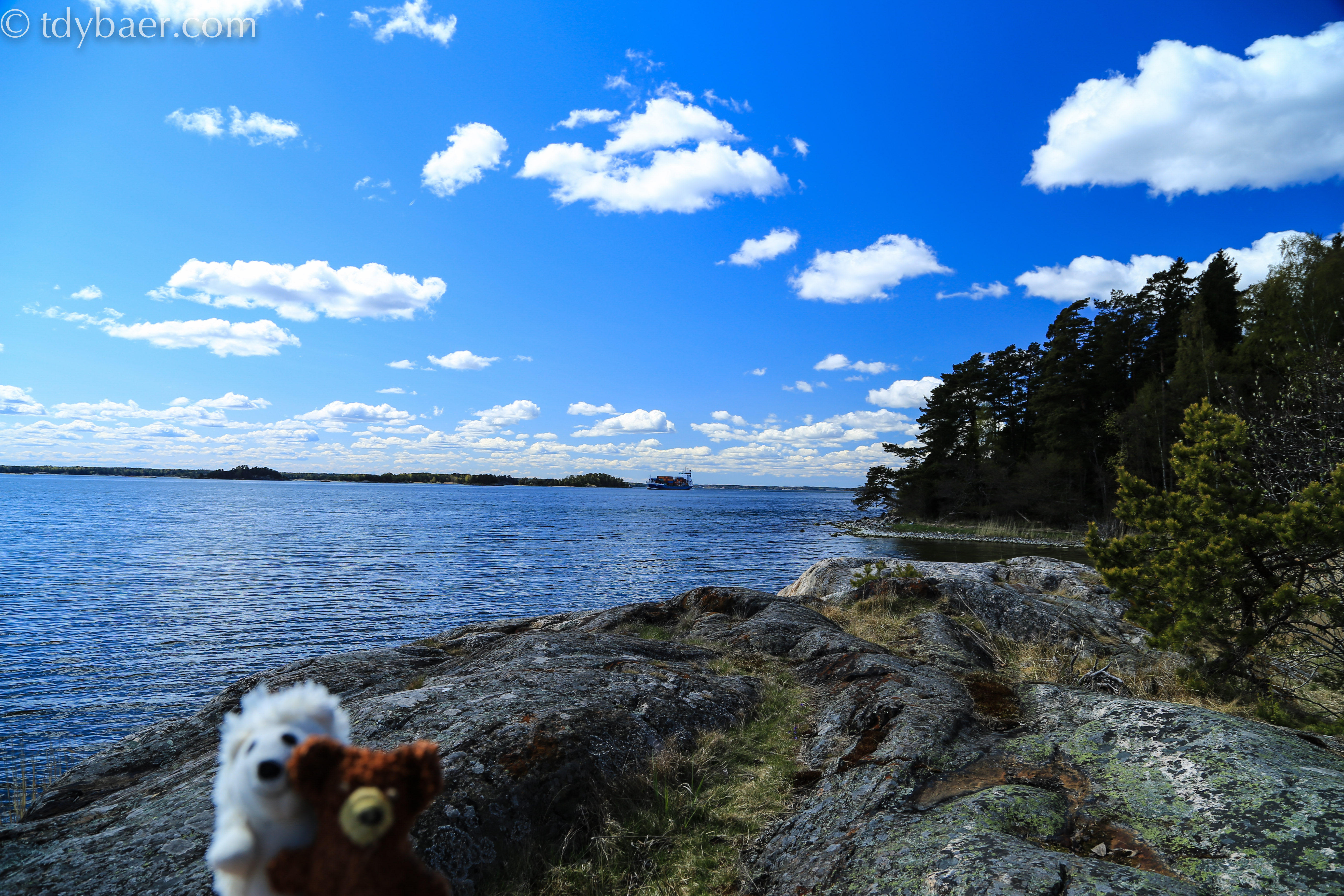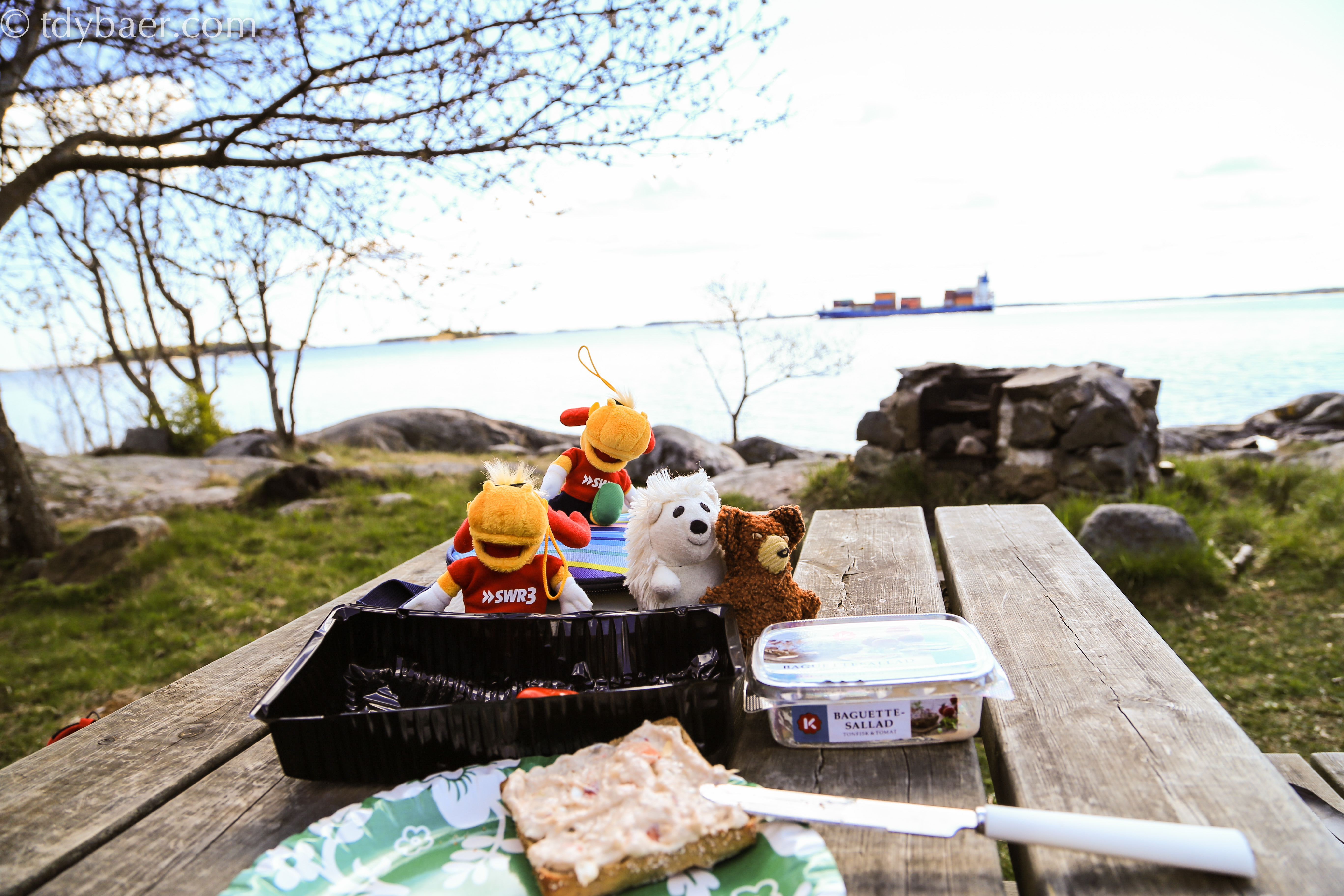 Auf dem Weg Richtung Süden geht es wieder über ein paar Schotterwege, aber das kennen wir ja schon aus unseren früheren Reisen in den Norden. Nicht weit von Tunaberg entfernt liegt Nävekvarn und östlich davon die kleine Siedlung Skeppsvik. Nachdem wir eine Weile verpeilt auf der Suche nach dem Aussichtspunkt in der Karte umhergefahren sind, haben wir ihn dann doch noch gefunden – den Blick aufs Meer bzw. die Ostsee :-).