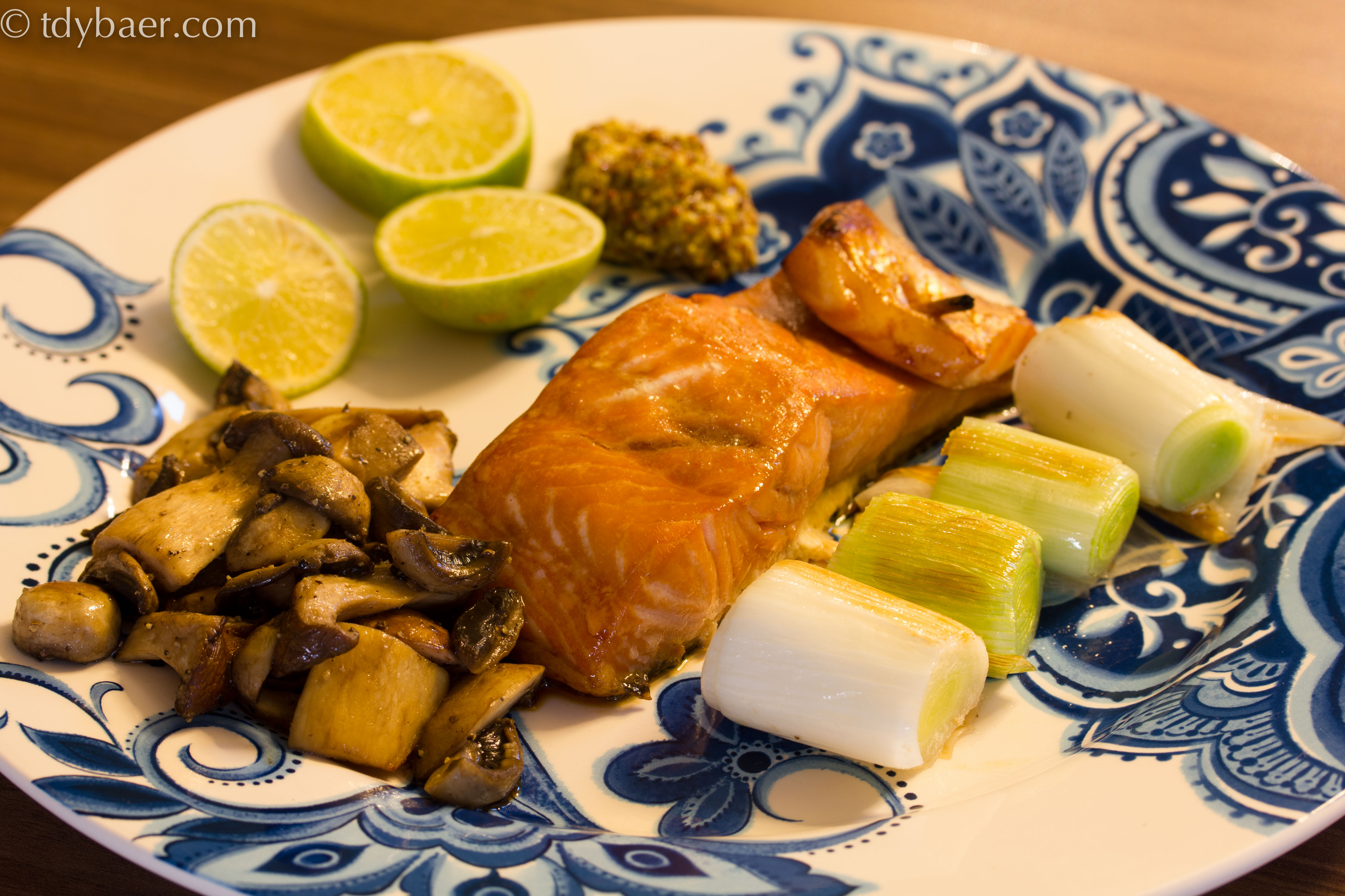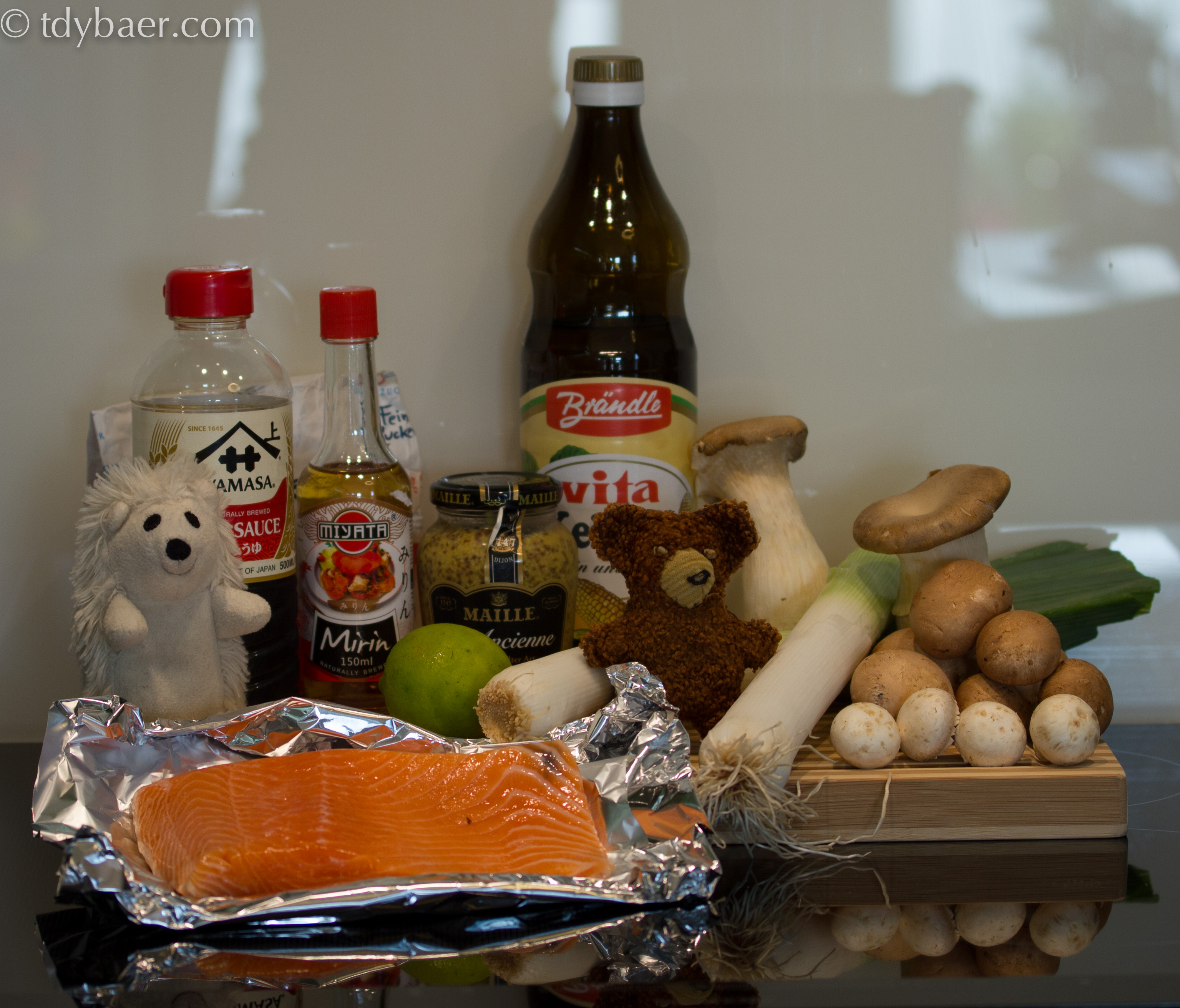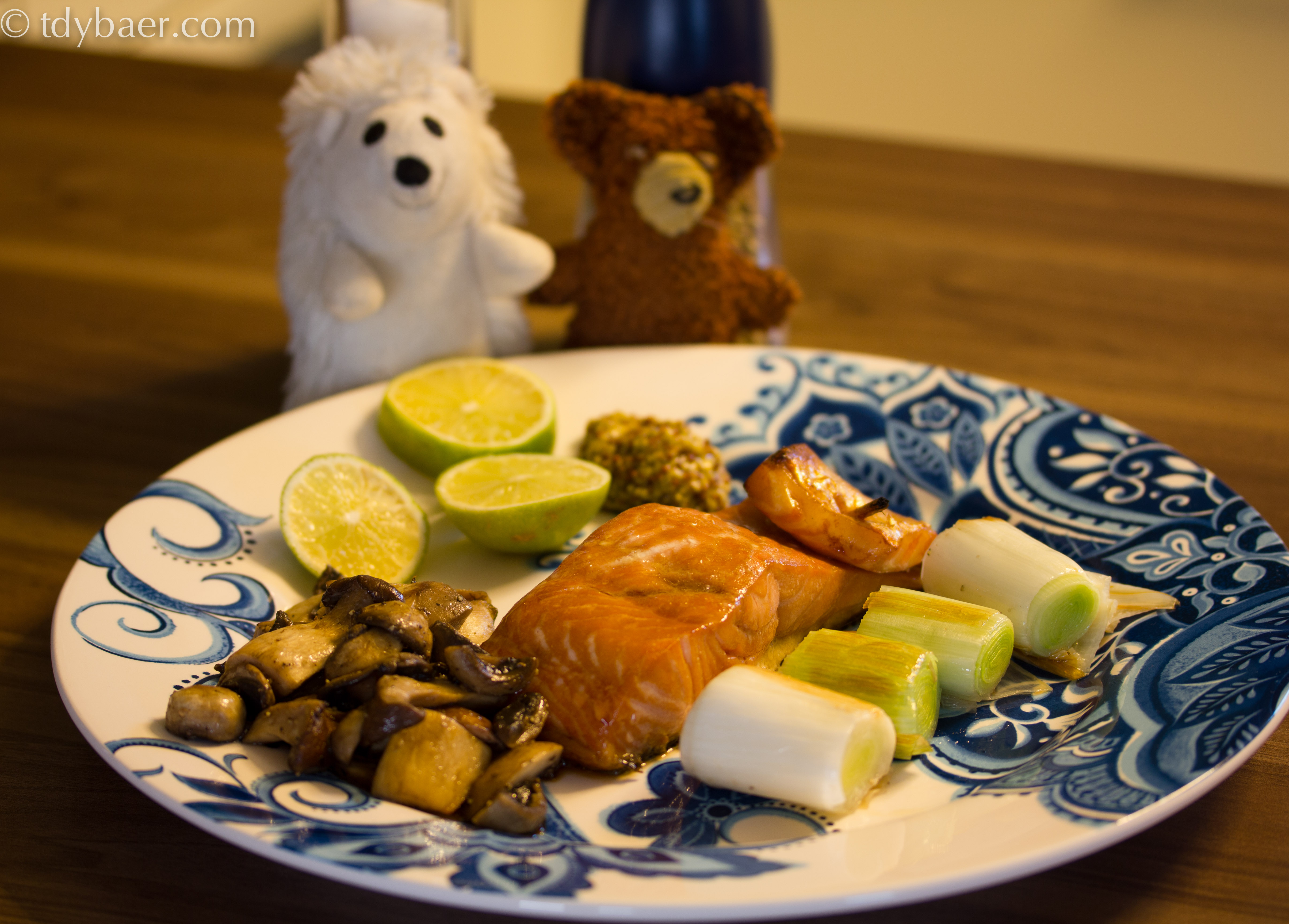 Für das heutige Rezept krame ich gerne mal wieder die japanischen Zutaten hervor. Heute brutzeln wir einen japanischen Klassiker, den viele bestimmt schon einmal im Sushi-Restaurant in einer Bento Box gegessen haben: Teriyaki-Lachs. Damit sich der Lachs auf dem Teller nicht so alleine fühlt ;-), wird er begleitet von scharf angebratenen Lauchstangen und gemischten Pilzen.