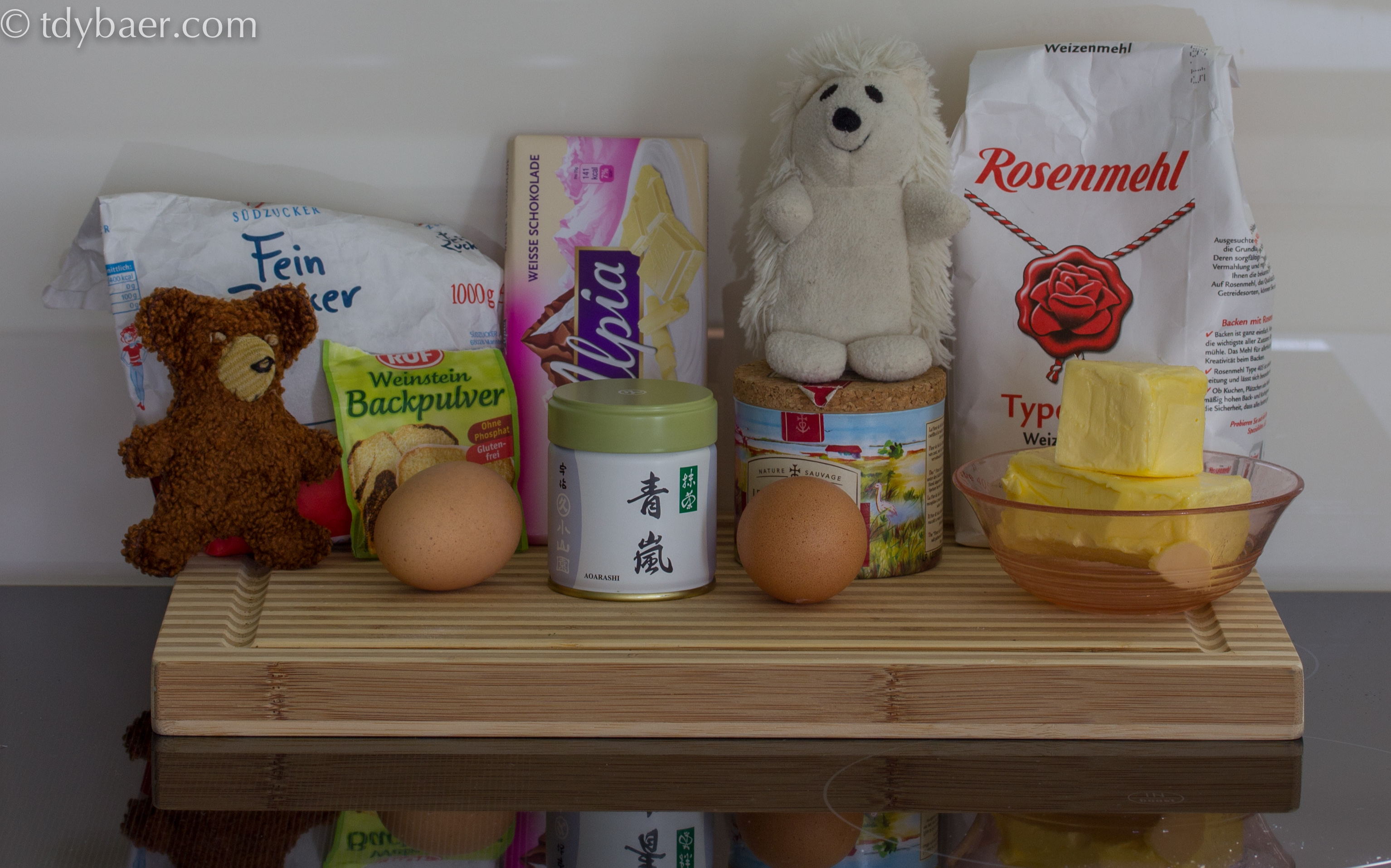 - 20 g Matcha, (Wer mag: Für mehr Matchageschmack 10 g Matcha mehr und nur 140 g Mehl)