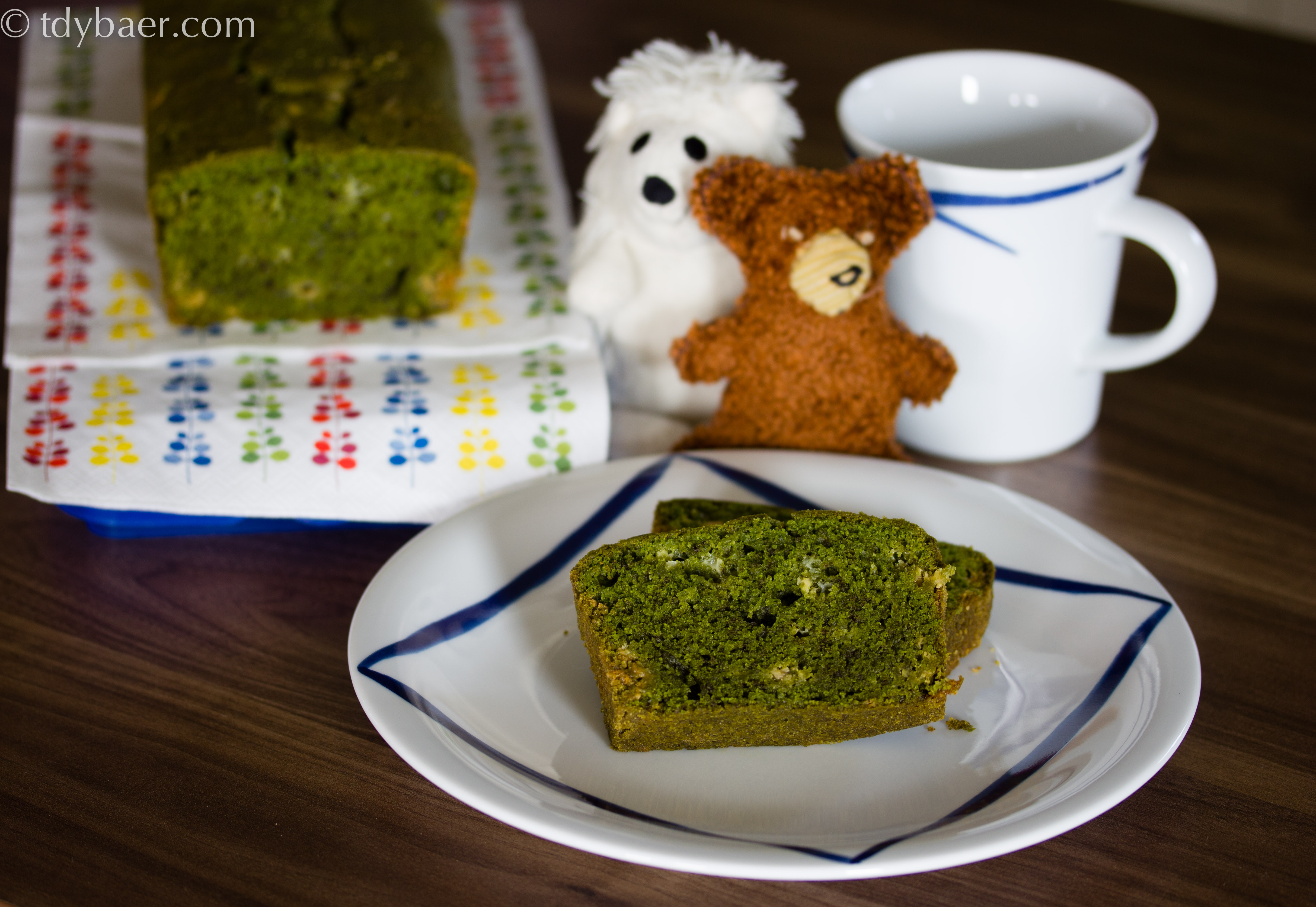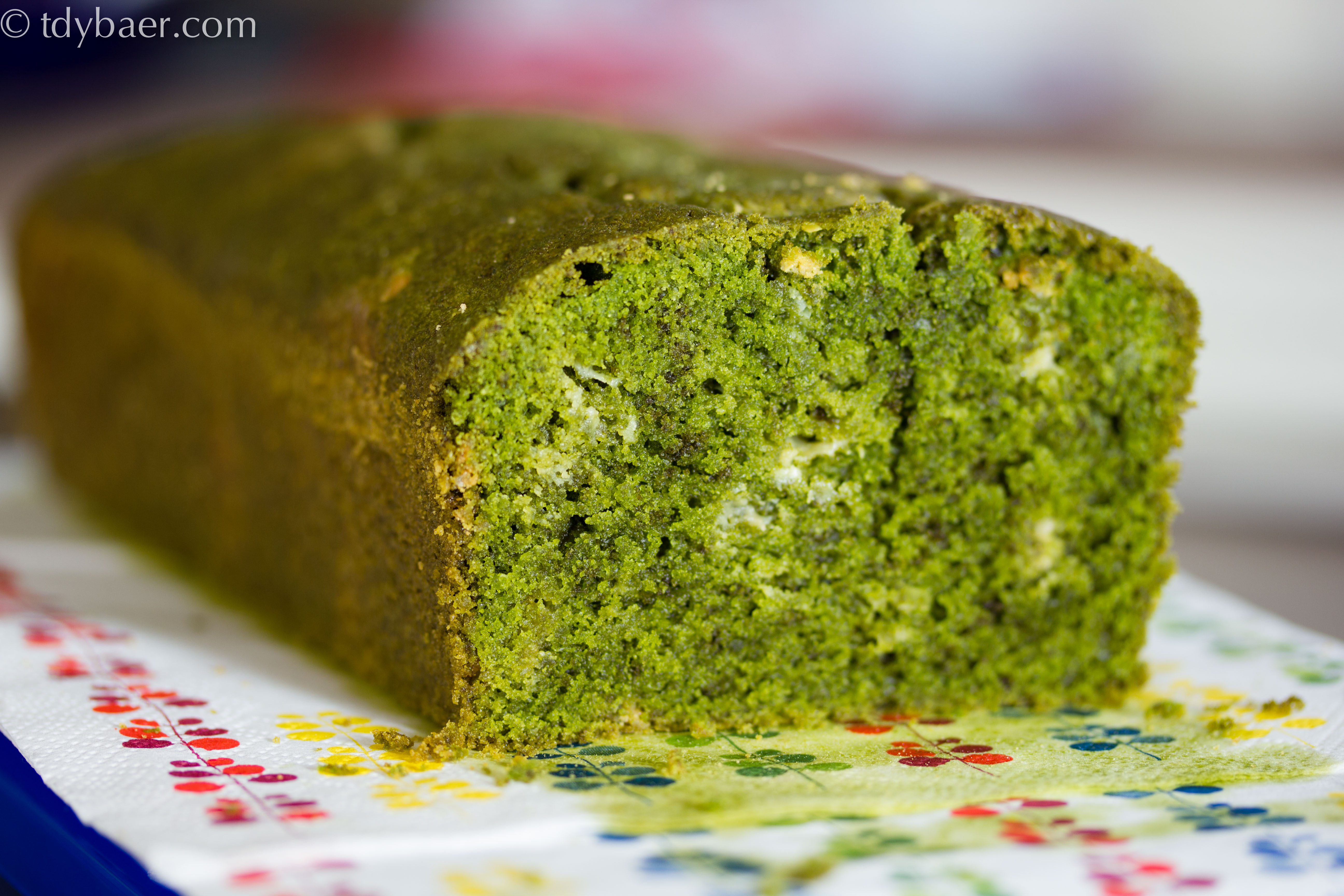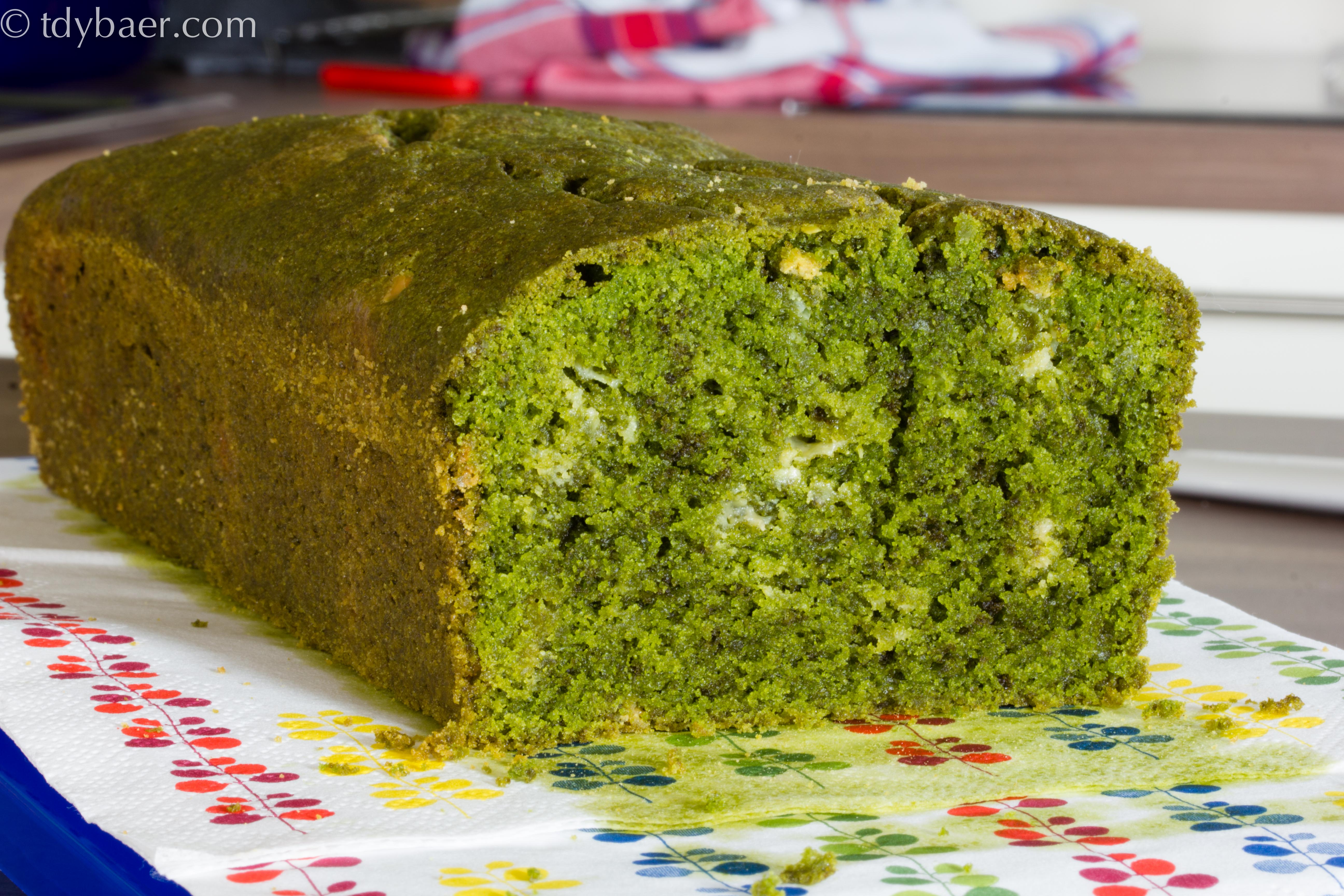 Nach unserem Japanurlaub im Frühjahr war ich auf der Suche nach leckeren japanischen Rezepten und bin dabei auf den Blog von Mari gestoßen. Auf ihrem Blog gibt es unzählige sehr interessante Backrezepte und die Fotos lassen einem immer wieder das Wasser im Mund zusammen laufen :-). Da wir in Japan des öfteren einen leckeren Matcha Latte getrunken hatten, wollte ich unbedingt den Matcha Pound Cake von ihrem Blog ausprobieren. Und hier ist er :-). Grün wie das Gras, gespickt mit leckeren weißen, salzigen Schokistückchen. Ein Traum.