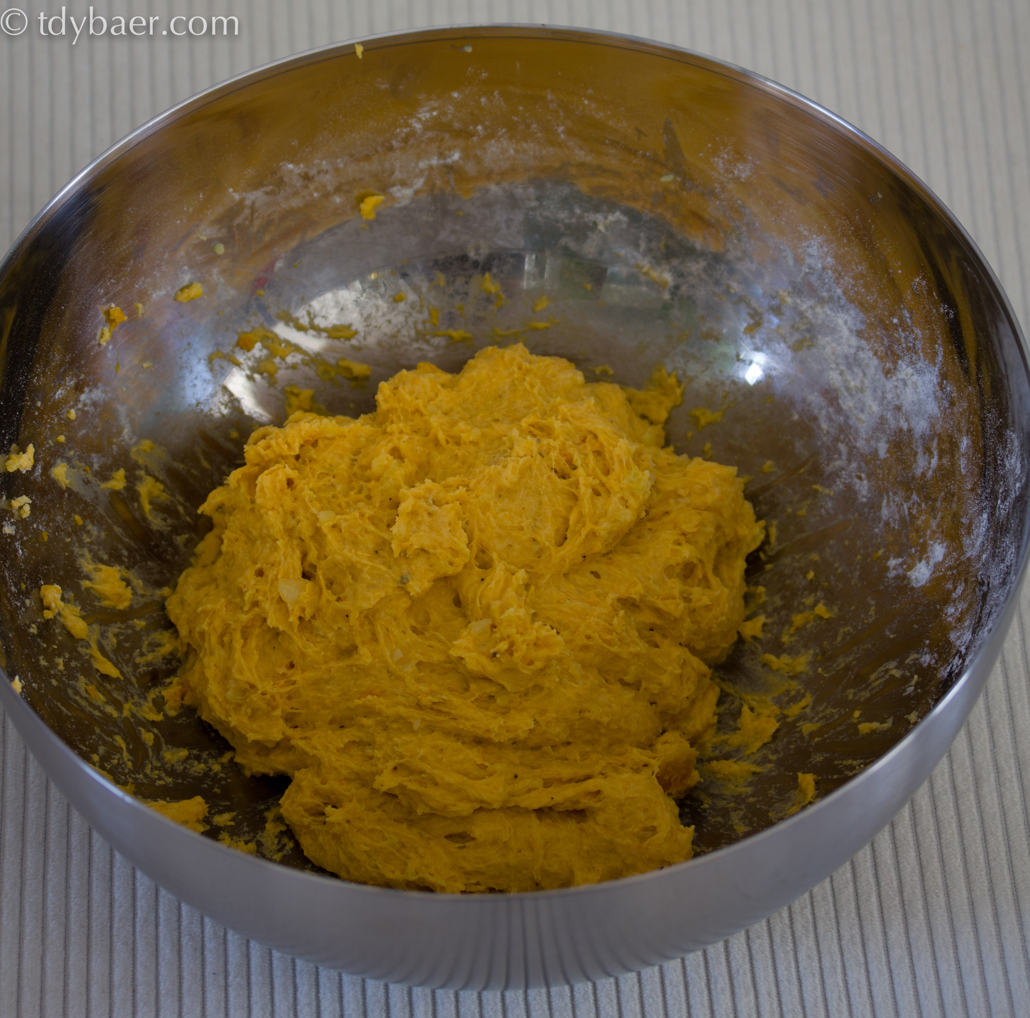 Zu der Kürbis-Kartoffelmischung gesellen sich jetzt 250 g Mehl, das Ei, 20 g Butter, Pfeffer, Salz und frisch geriebene Muskatnuss.
