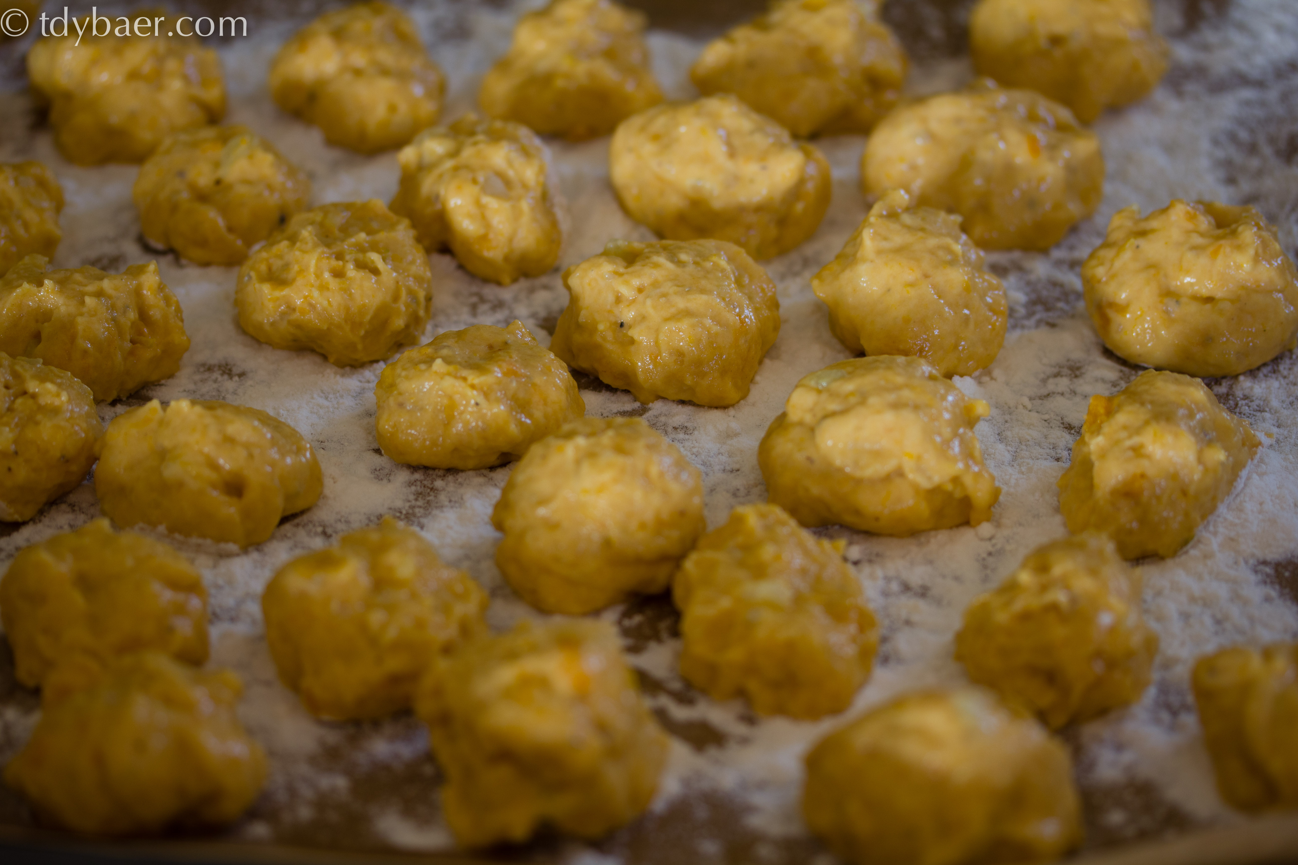 Vorweg einmal gesagt: „Ja, Gnocchis sehen anders aus :-)!“ – aber ich würde euch diese leckeren Teilchen nicht präsentieren, wenn sie nicht sooo lecker schmecken würden. Man könnte sie auch handgeformte Kürbis-Kartoffel-Klösschen nennen.