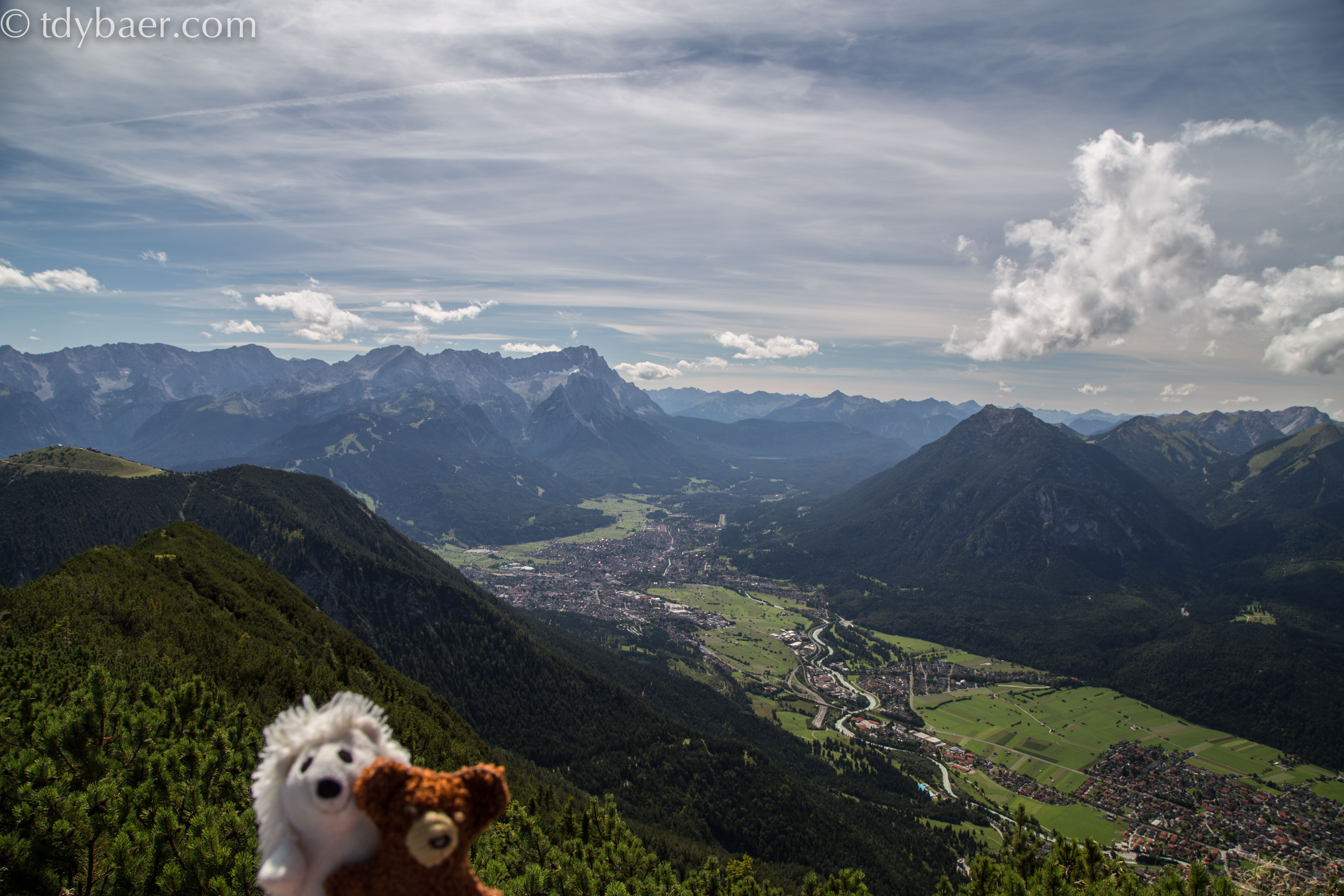 Puuhh :-), schon ein gutes Stück geschafft. Kurze Pause, was trinken und den Blick auf Garmisch und die Zugspitze genießen.IMG_9347