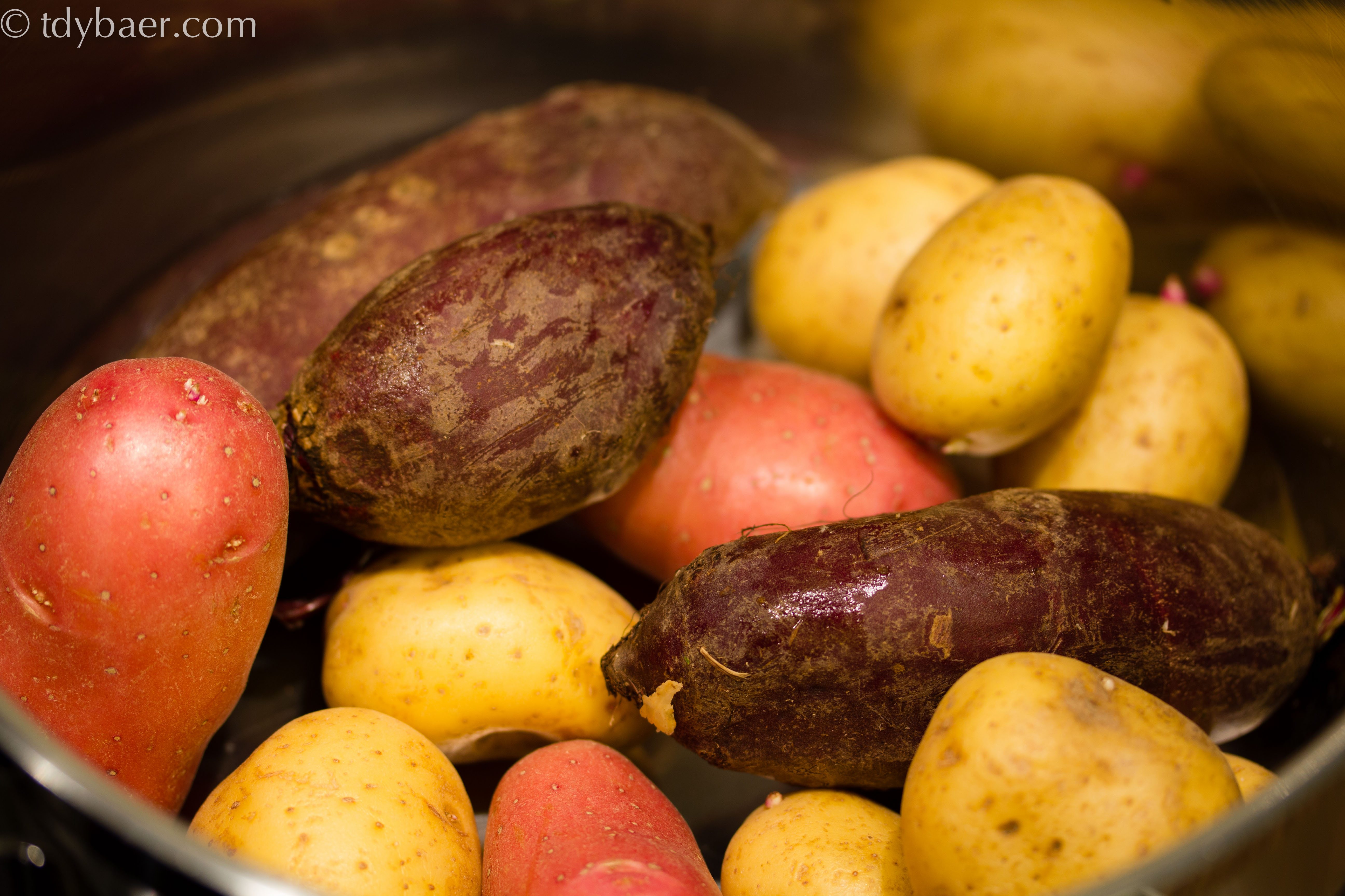Die Knollen für die Suppe kommen ungeschält in einen großen Topf und werden mit kaltem Wasser zum Kochen aufgesetzt. Die rote Beete braucht je nach Knollengröße 45 bis 60 Minuten. Da fällt mir wieder ein, dass mir ein Schnellkochtopf fehlt ;-). Die Kartoffel kochen einfach so lange mit und werden richtig gut durch.