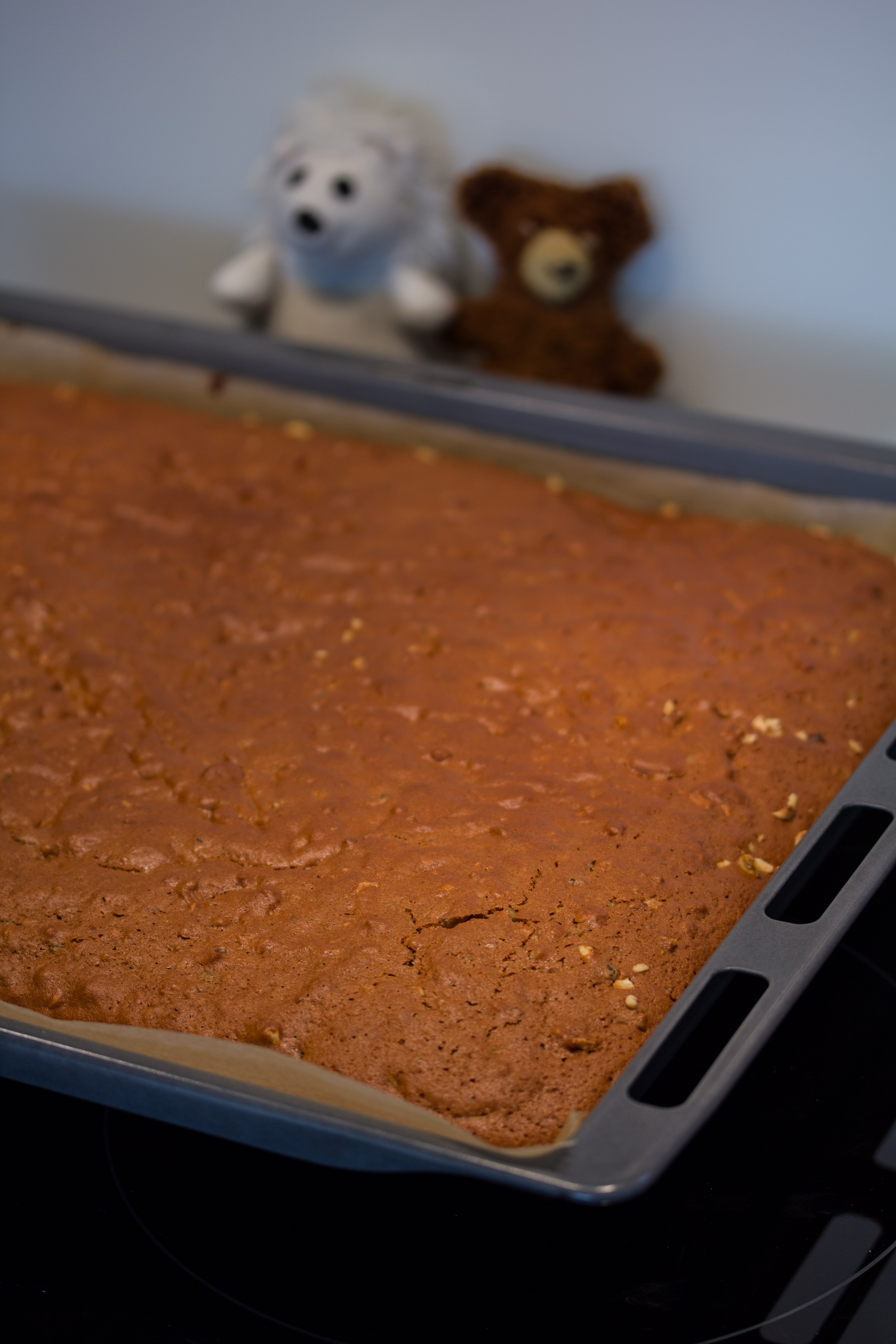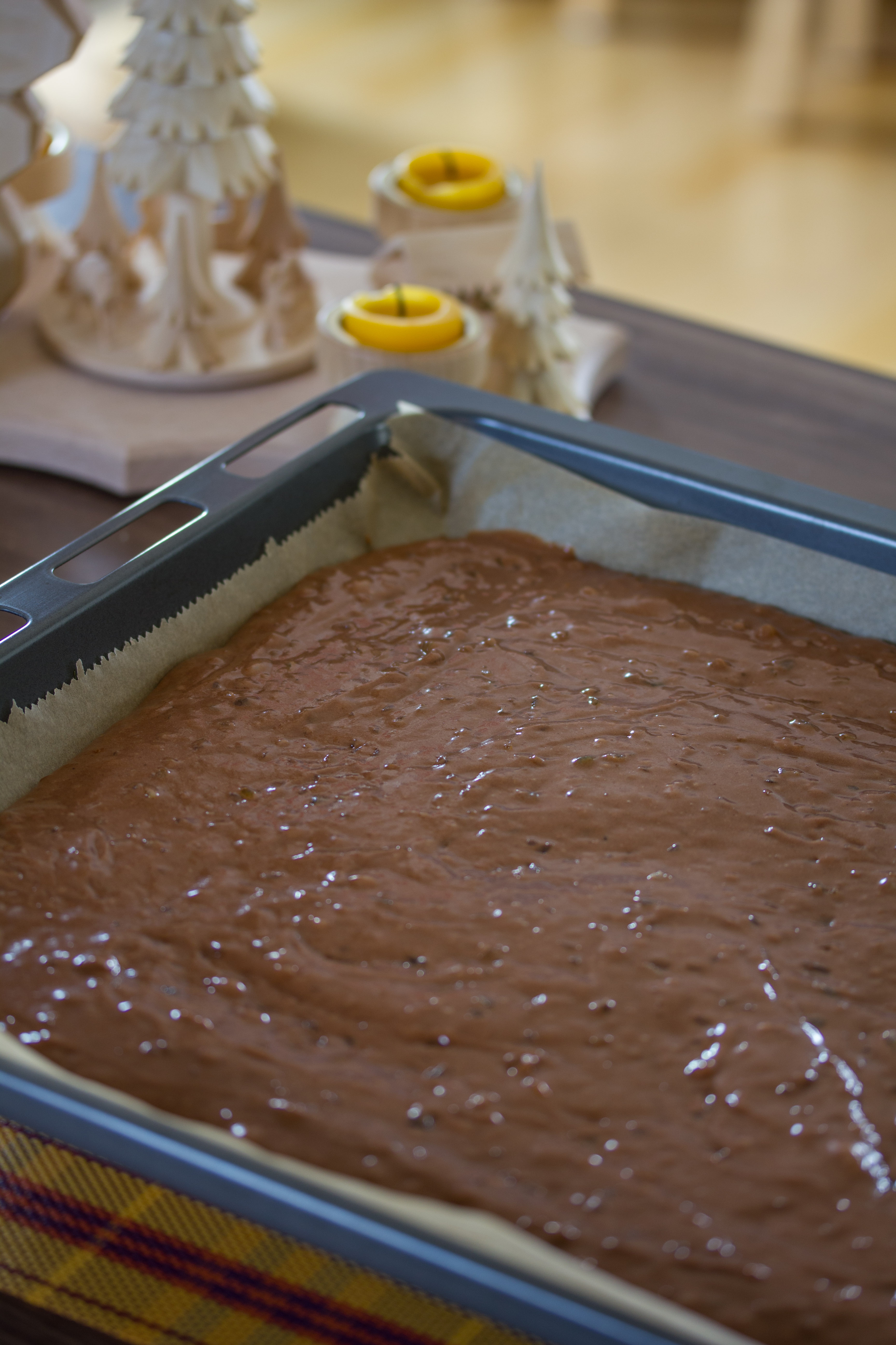 Danach das Mehl mit dem Backpulver und dem Kakao nach und nach in die Schüssel sieben und abwechselnd mit der Milch unterrühren. Den Backofen auf 180° Ober-/Unterhitze vorheizen.