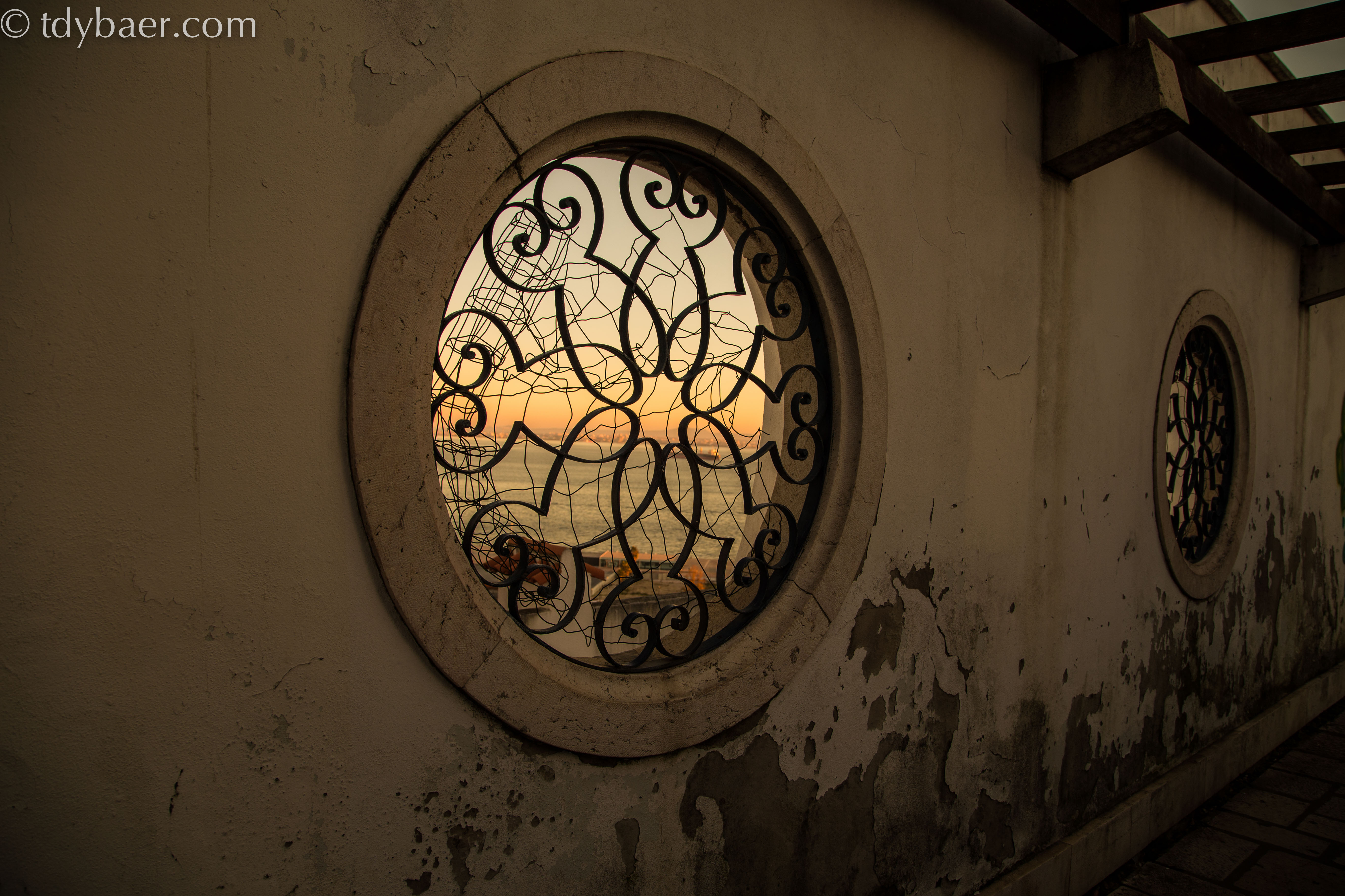 Durch enge Gassen geht es bergauf und bergab bis wir am „Miradouro Portas do Sol“ spontan aus der Bahn hüpfen :-).