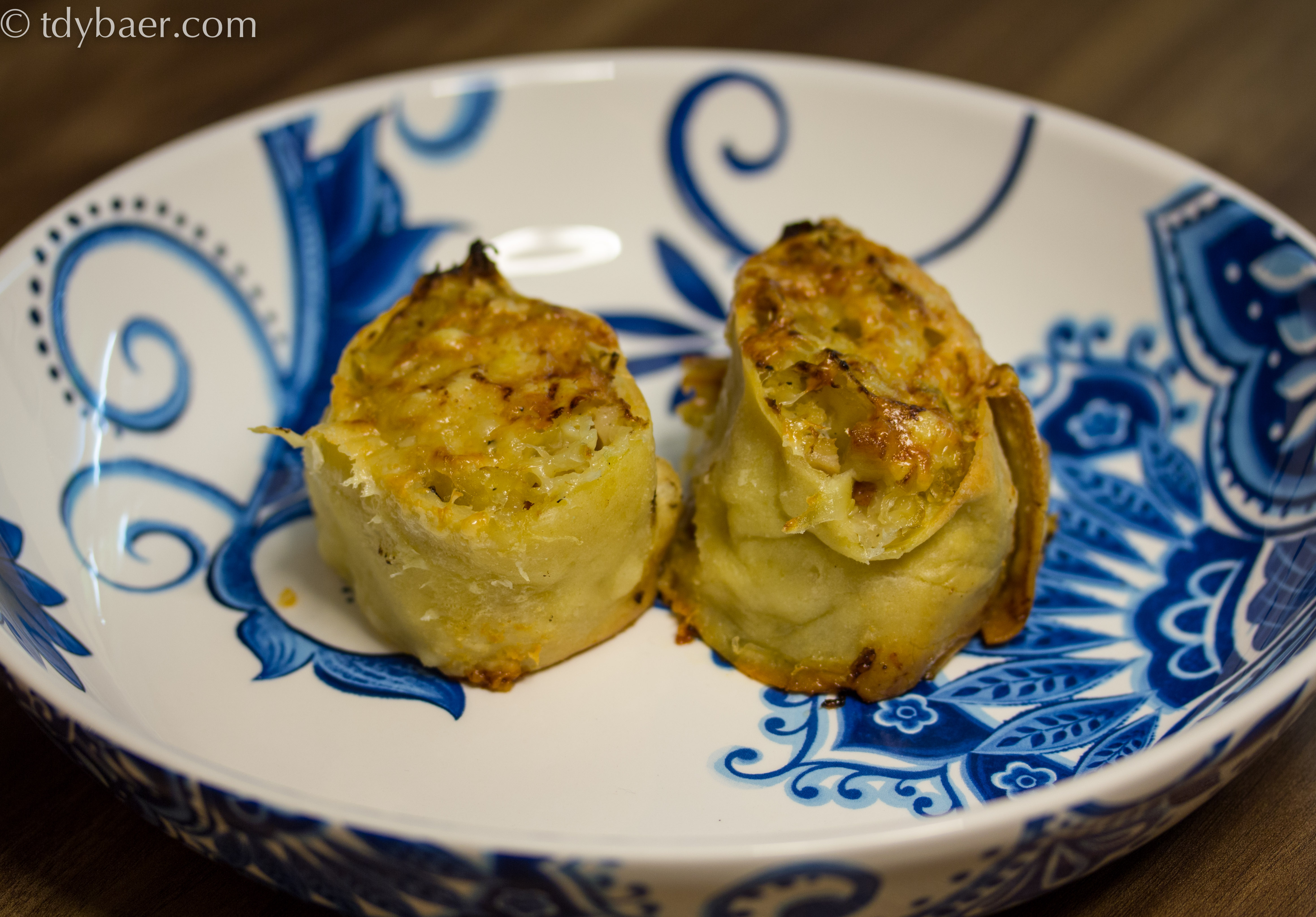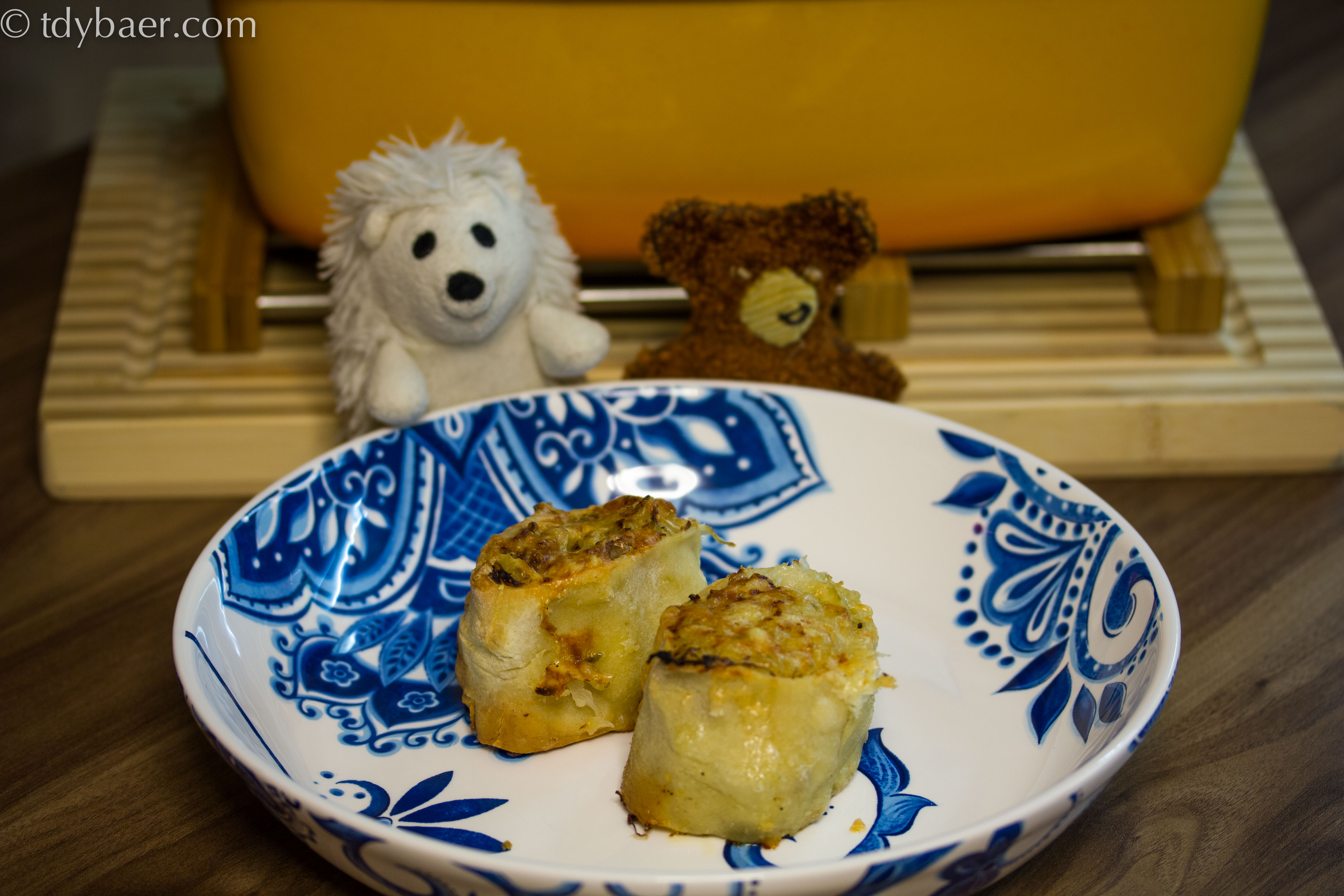 Der Winter hat draußen Einzug gehalten und entsprechend der Jahreszeit gibt es heute diese leckeren schwäbischen Krautkrapfen, gefüllt mit Sauerkraut, Apfelstückchen und geräuchertem Speck. Mit würzigem Bergkäse überbacken, wird daraus eine wahre Köstlichkeit :-).