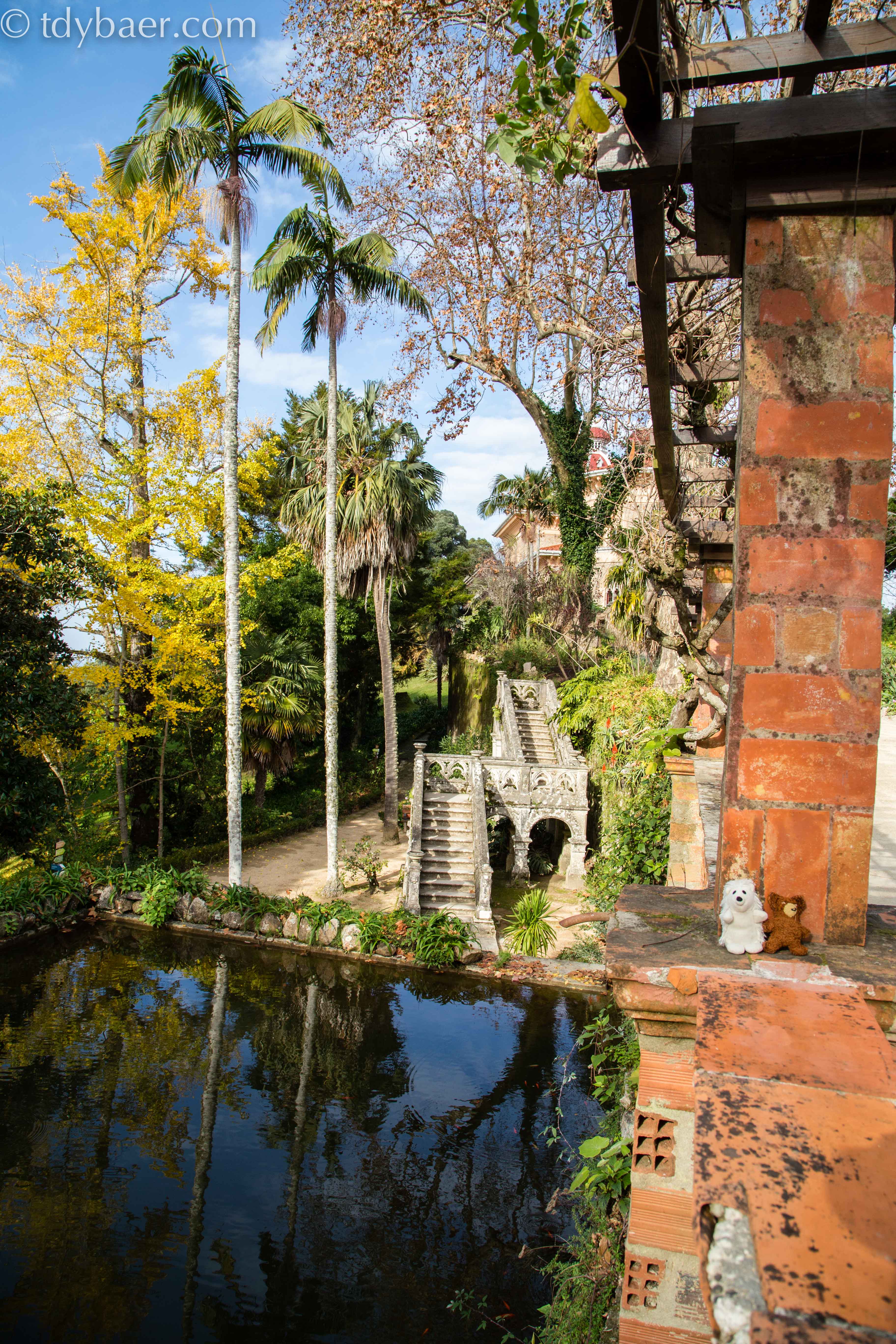 Unser erster Halt in dem hügeligen Gelände um Sintra, war der Park des ‚Palacio de Monserrate‘. Die Geschichte des Anwesens geht zurück bis ins Jahr 1540, als erstmalig an der Stelle des heutigen Palastes eine Kapelle errichtet wurde. Über die Jahre wechselten die Besitzer, bis 1793 William Beckford das Anwesen pachtete und den romantischen Park anlegte. Ausländische Besucher, vor allem aus England, besuchten den mittlerweile berühmten Park, unter ihnen Francis Cook. Er kaufte das Anwesen 1856, restaurierte den Palast und erweiterte die Parkanlage. Heute haben sich auf dem weitläufigen Landschaftspark mehr als 3000 Pflanzenarten aus aller Welt zusammengefunden. Nachdem man am Eingang brav den Eintritt bezahlt hat, betritt man eine wirklich urige Märchenwelt :-). Der Park ist gespickt mit so vielen verschiednen Pflanzen und daher wirklich sehenswert.