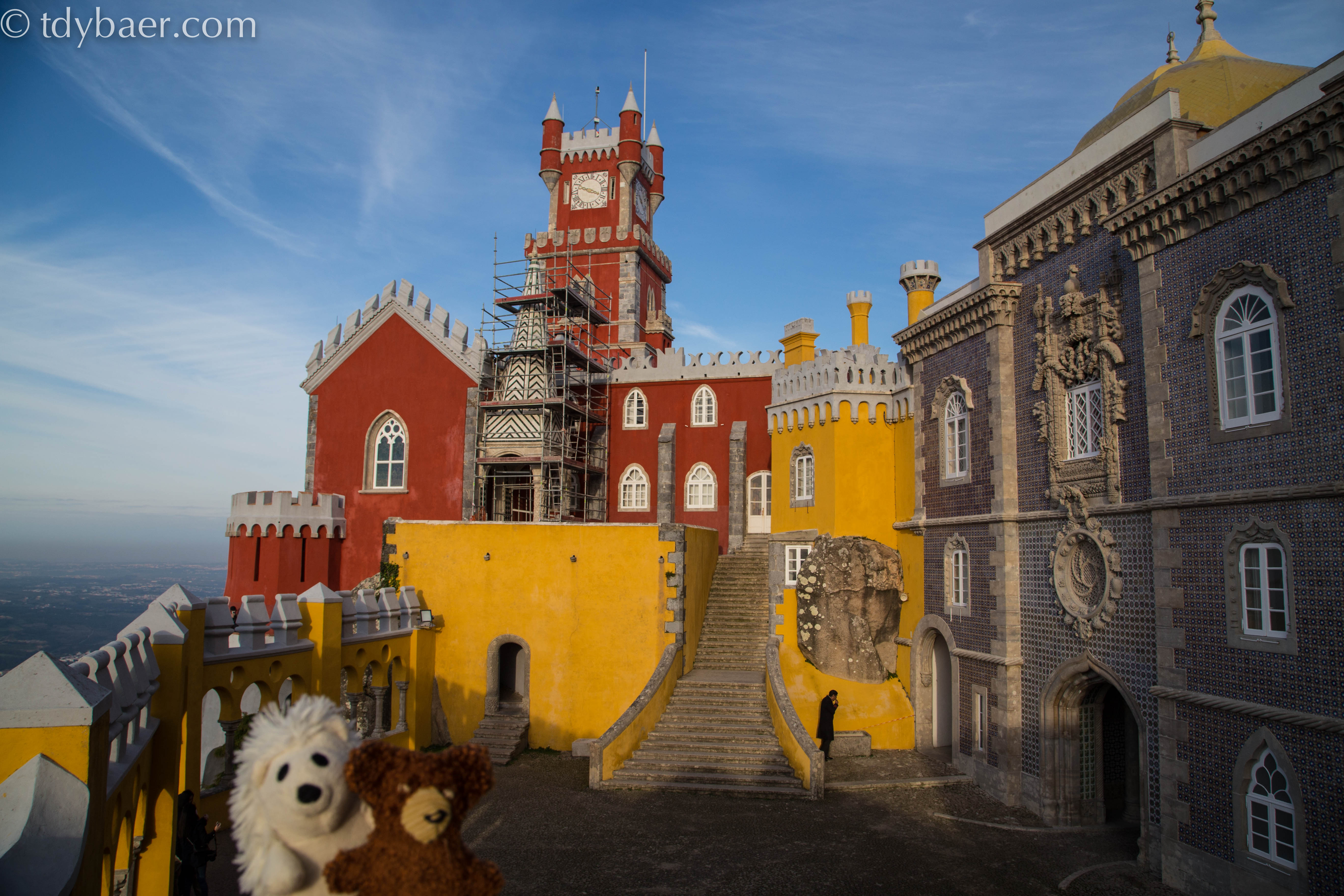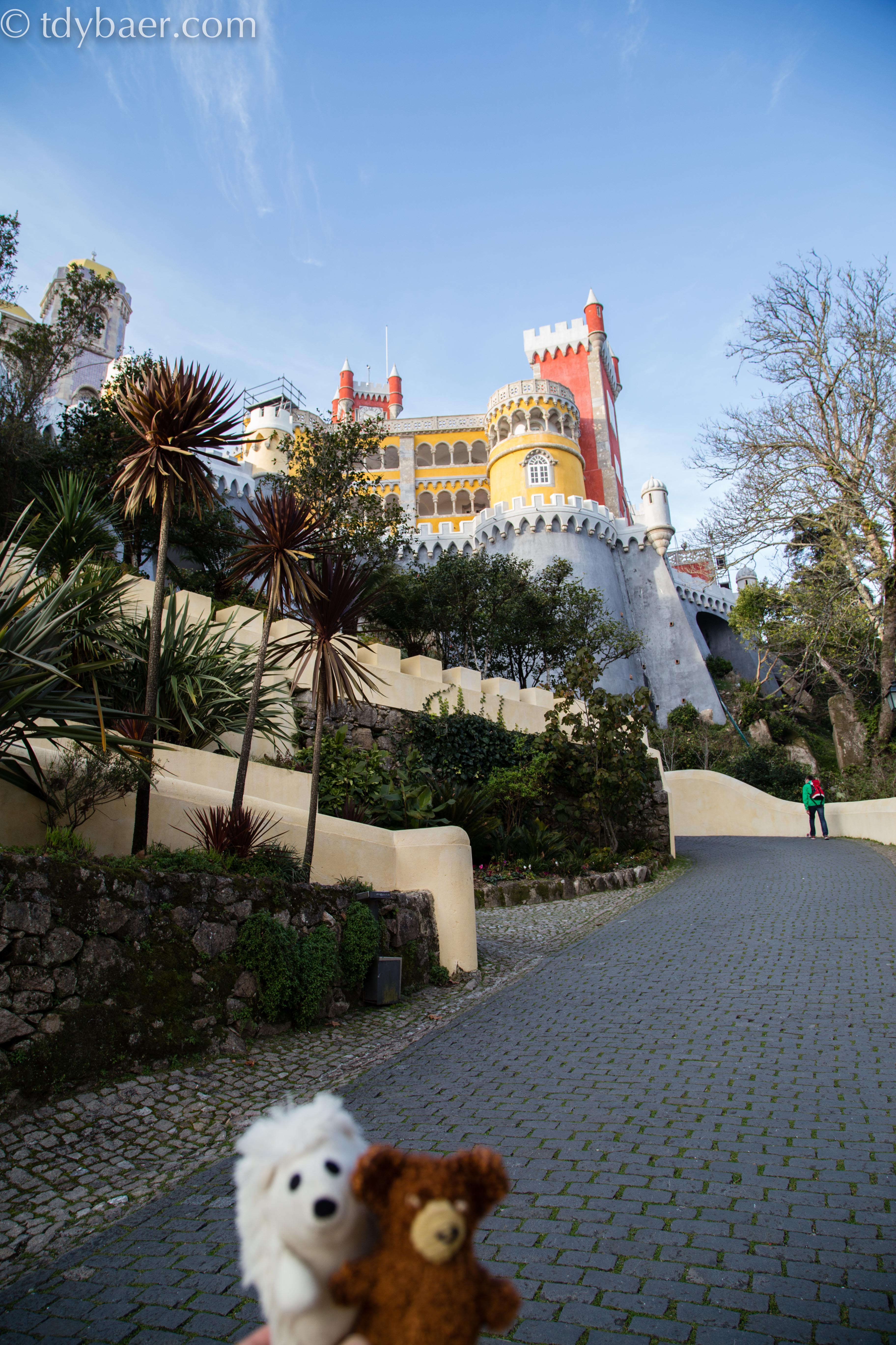Gemütlich gehts zurück zum Palast von Pena. Die tolle Architektur mit den bunten Farben erinnert irgendwie an ein Märchenschloss – auf jeden Fall eines der schönsten Schlösser die wir bis jetzt besucht haben. Ein Schloss mit Palmen kommt auch nicht so oft vor ;-).