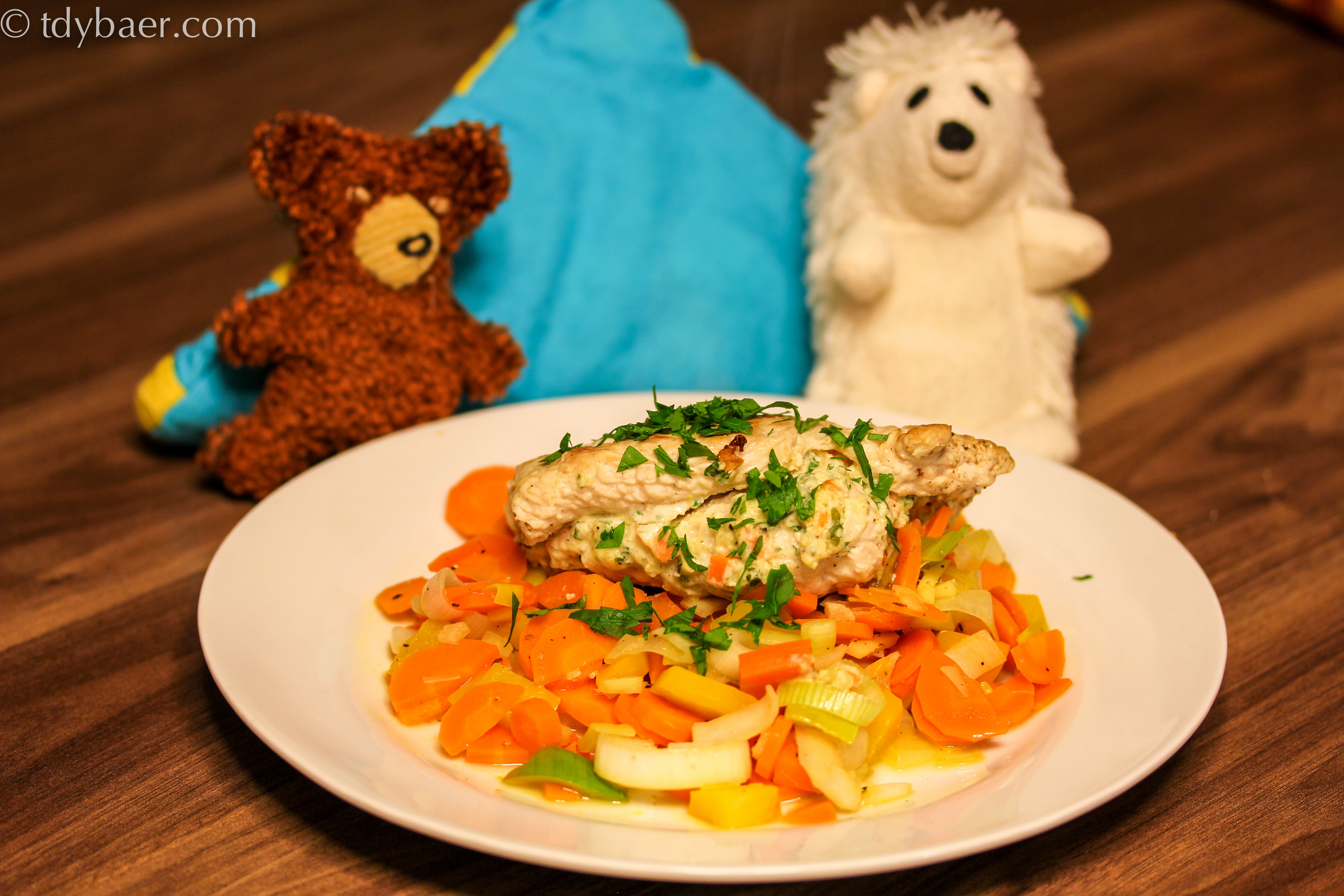 Das Gemüse mit den Rouladen anrichten – mit der restlichen Petersilie bestreuen und schmecken lassen :-).