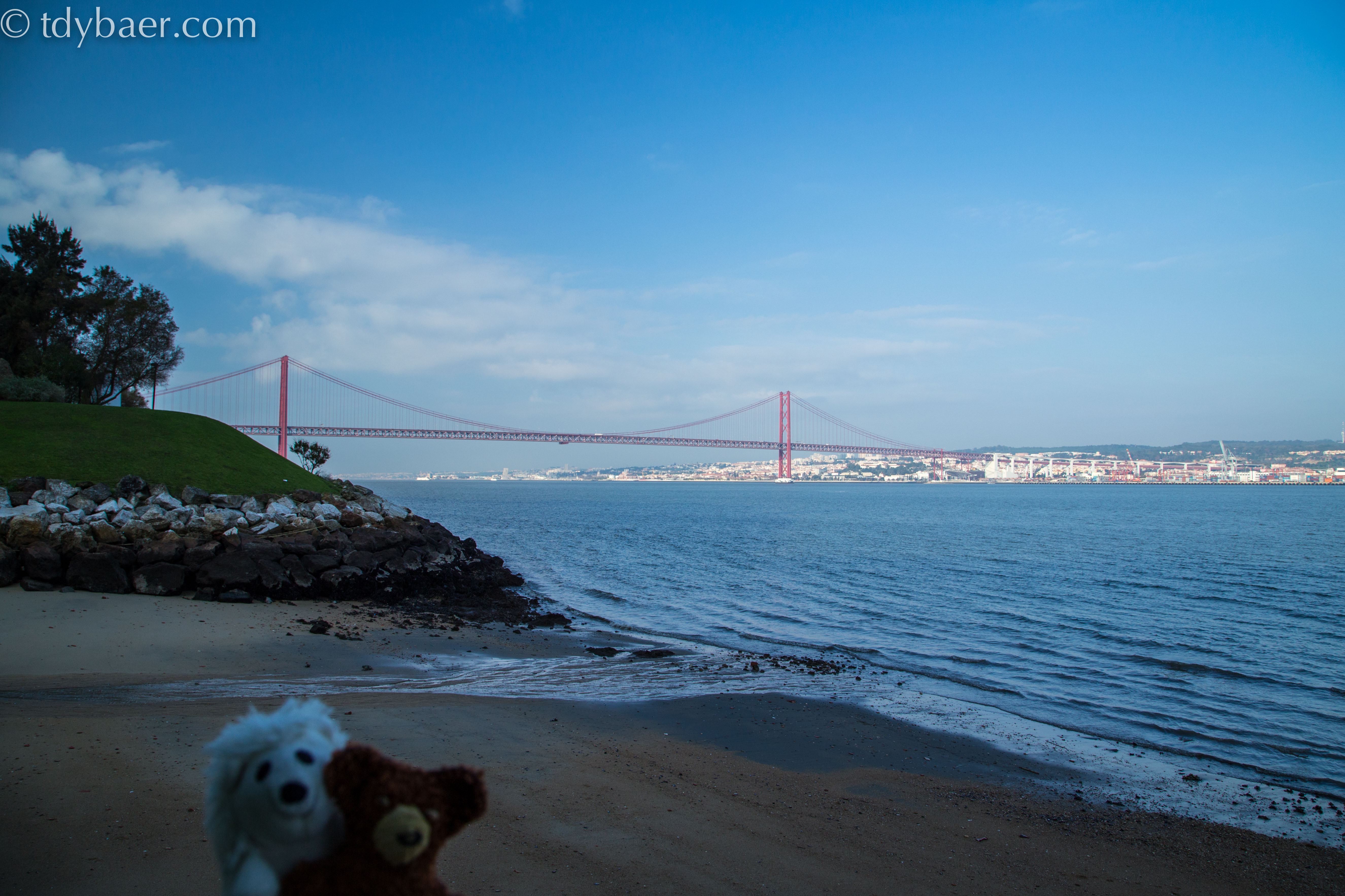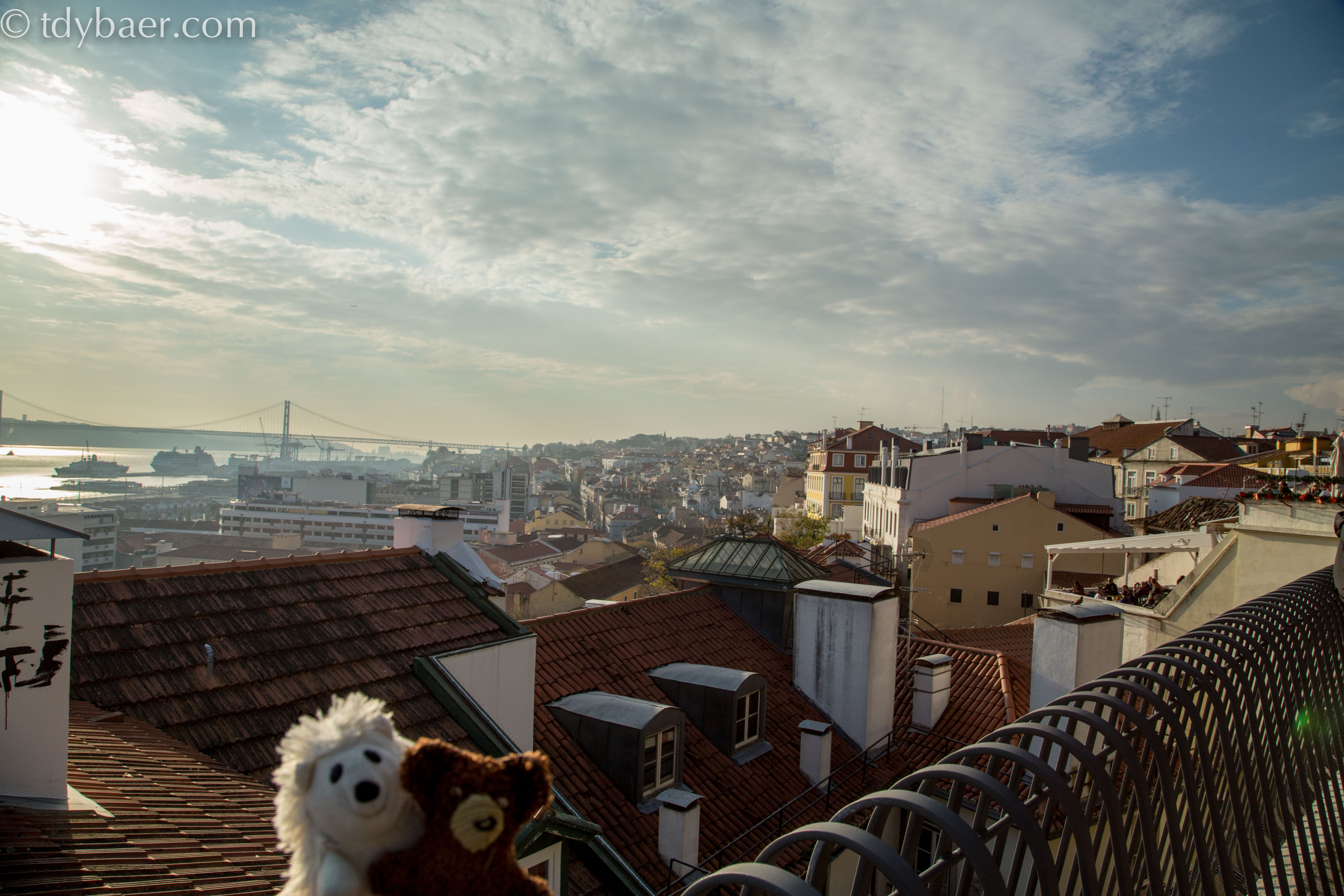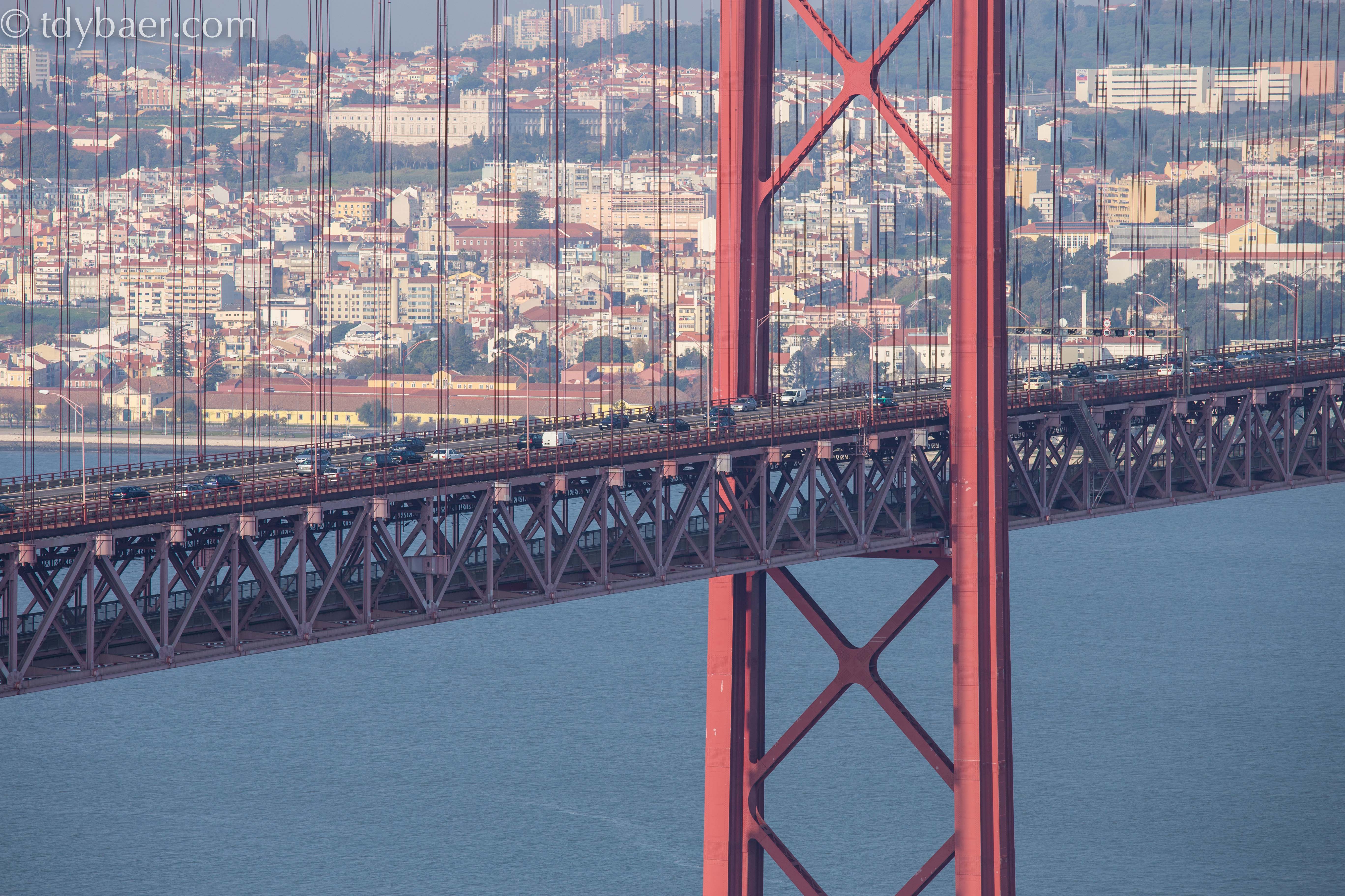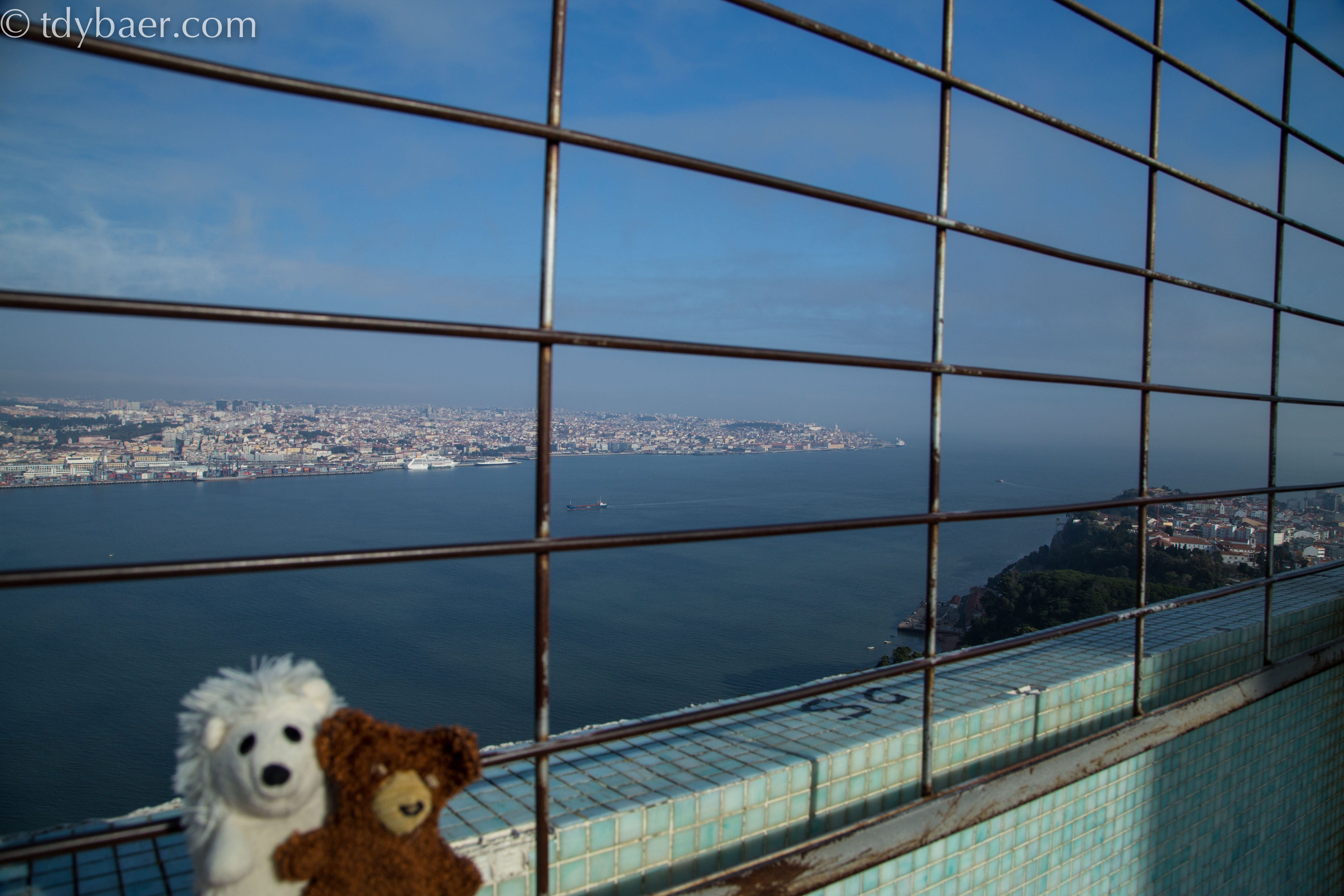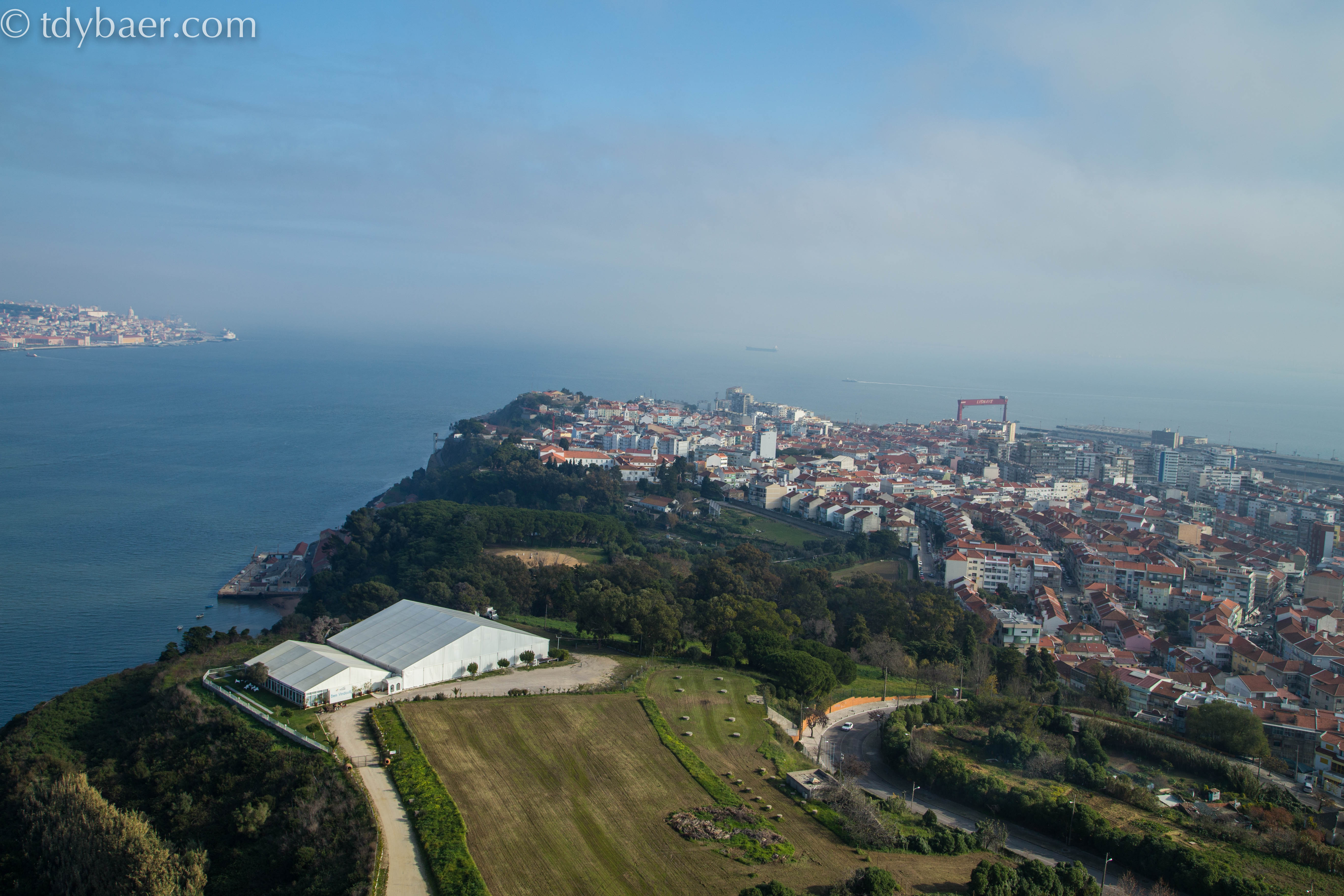 Die Aussicht ist wirklich toll, auch wenn heute wieder etwas Dunst über der Stadt lag. In Richtung Westen kann man noch die Seefahrer-Denkmäler in Belém erkennen und vor uns blickt man direkt auf die schöne Brücke des 25. Aprils und Lissabon :-).