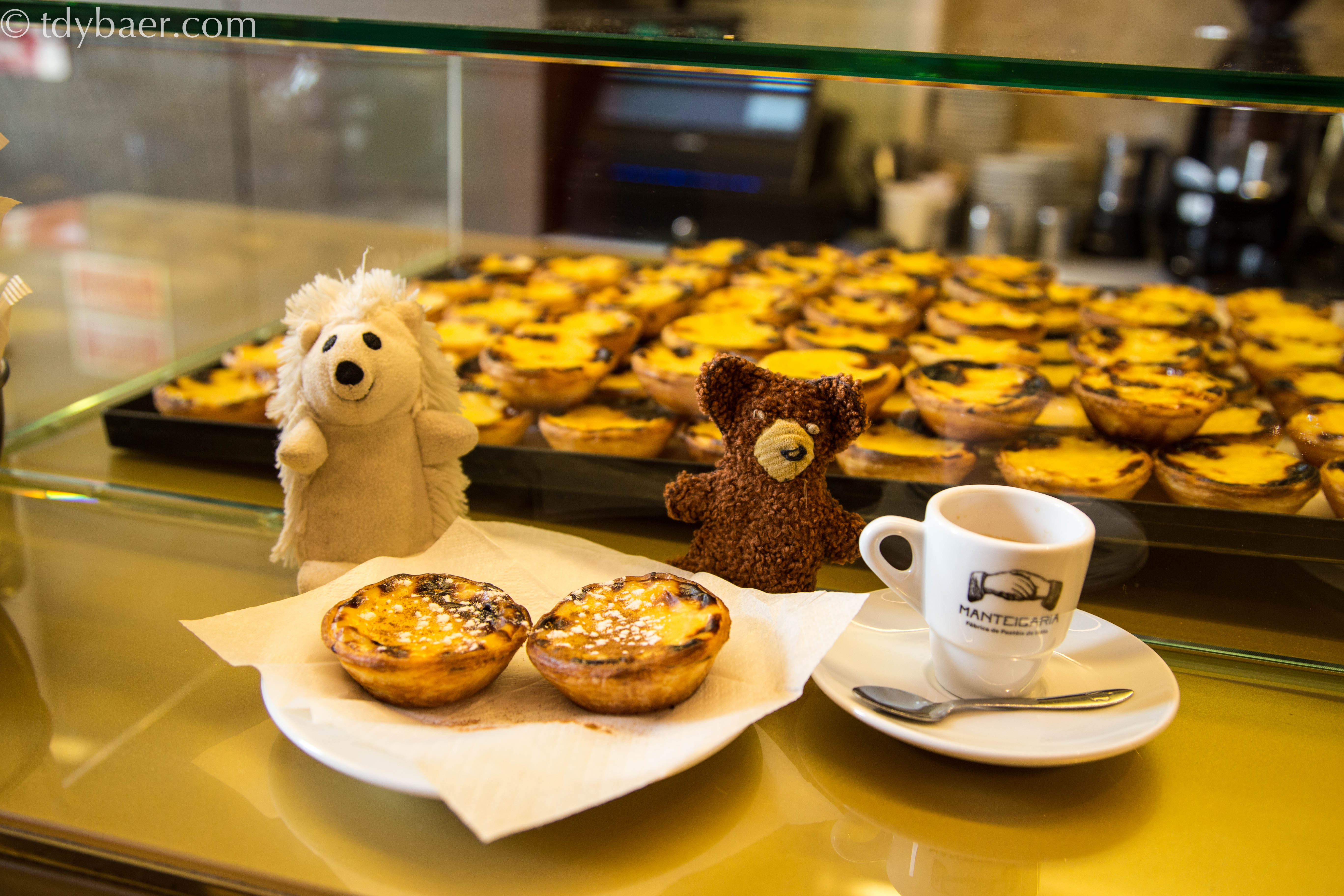 Vor der Tour durch die Stadt legten wir noch einen kurzen Zwischenstopp ein. Das kleine Mittagstief musste mit einem leckeren Pasteis de Nata von Manteigaria überwunden werden. Die tolle Bäckerei in der Rua do Loreto 2 haben wir bereits am ersten Tag entdeckt und seitdem waren wir auch jeden Tag hier, um bei einem Espresso ofenfrische Puddingtörtchen zu genießen. Ein Traum in gelb :-).