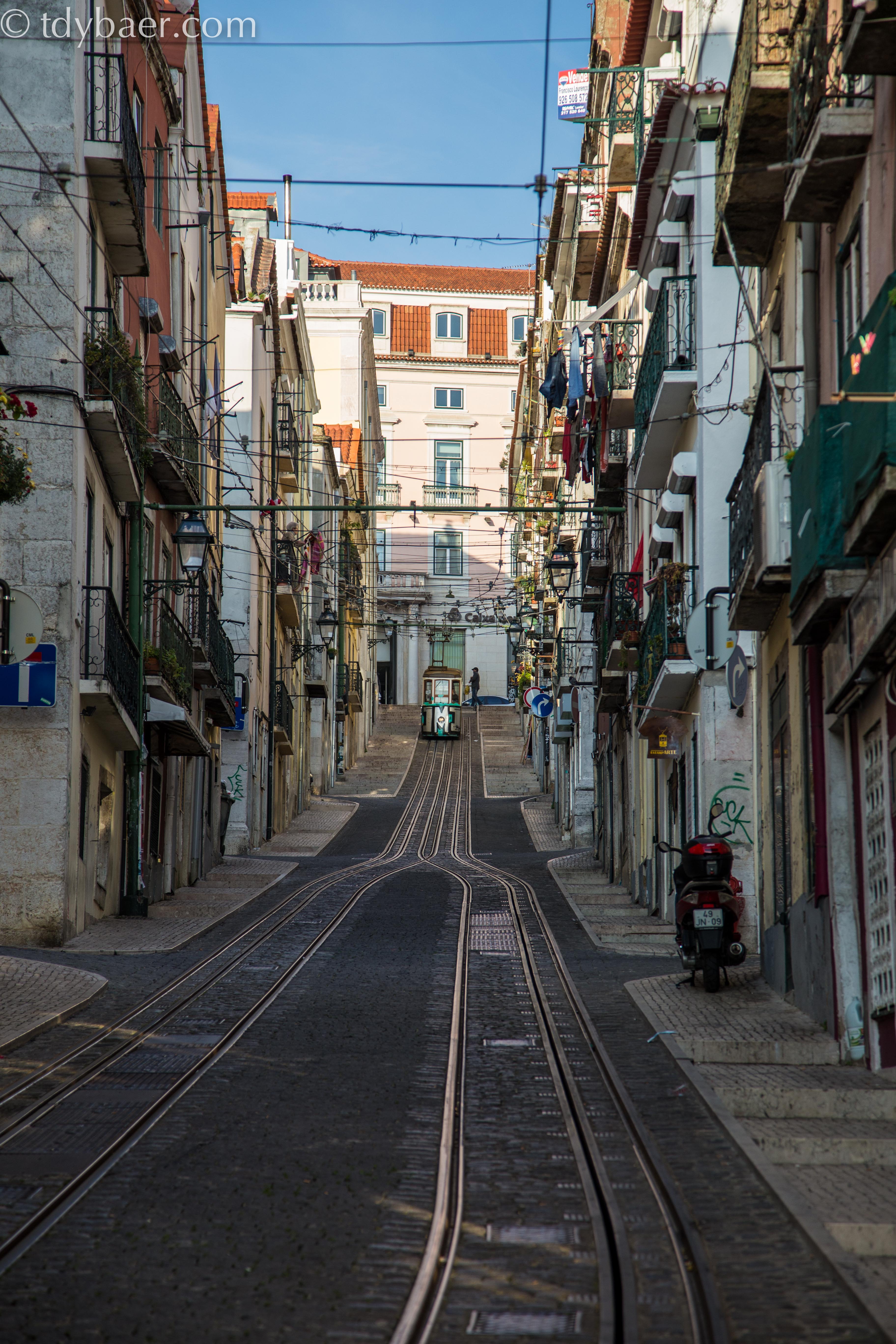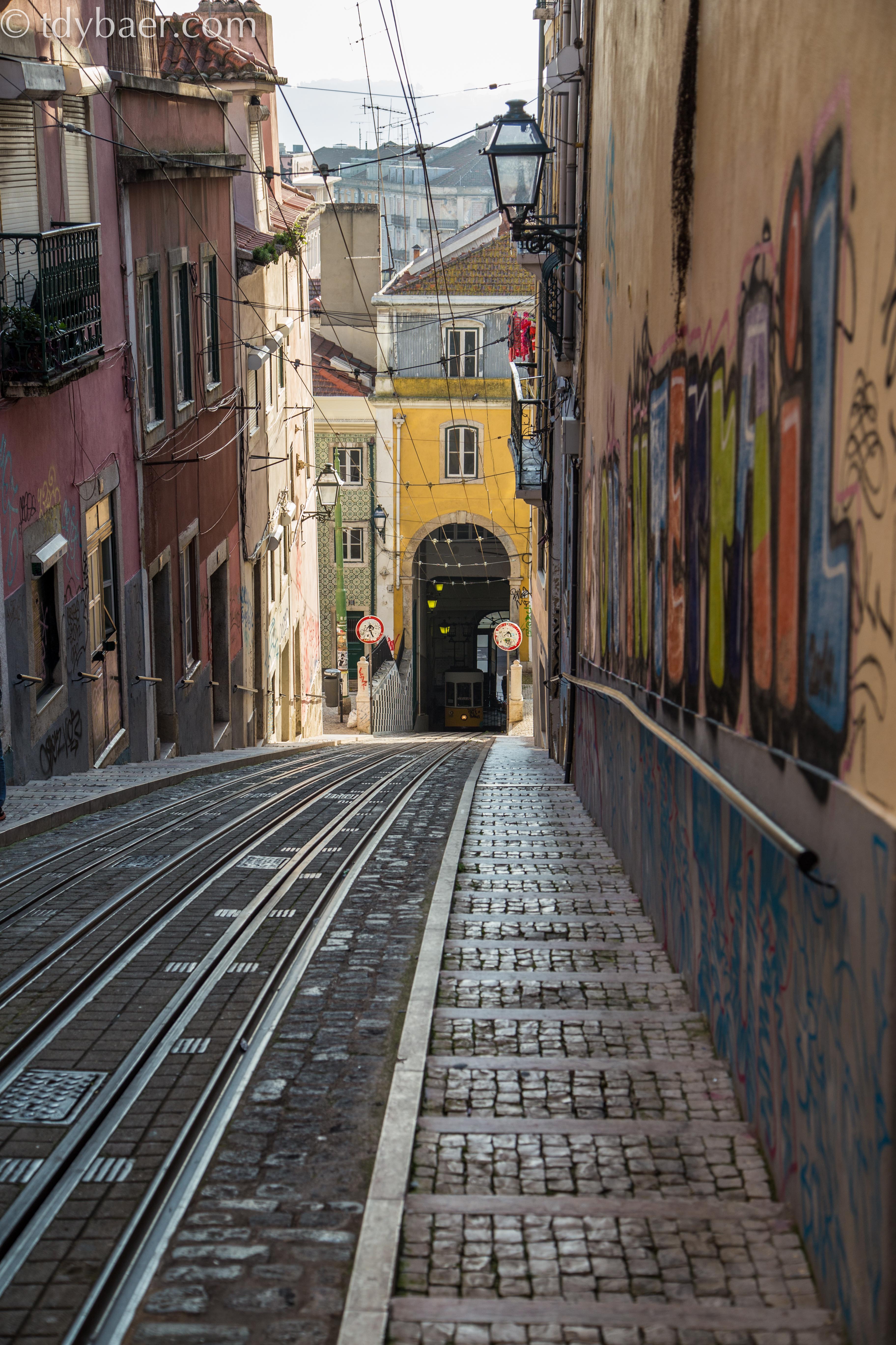 Voller Energie starteten wir in den Nachmittag. Unweit von dem Café entfernt, befindet sich die Kleinste der drei Standseilbahnen Lissabons – Elevador da Bica. Sie erklimmt seit 1892 die steile Rua da Bica do Duarte Belo.