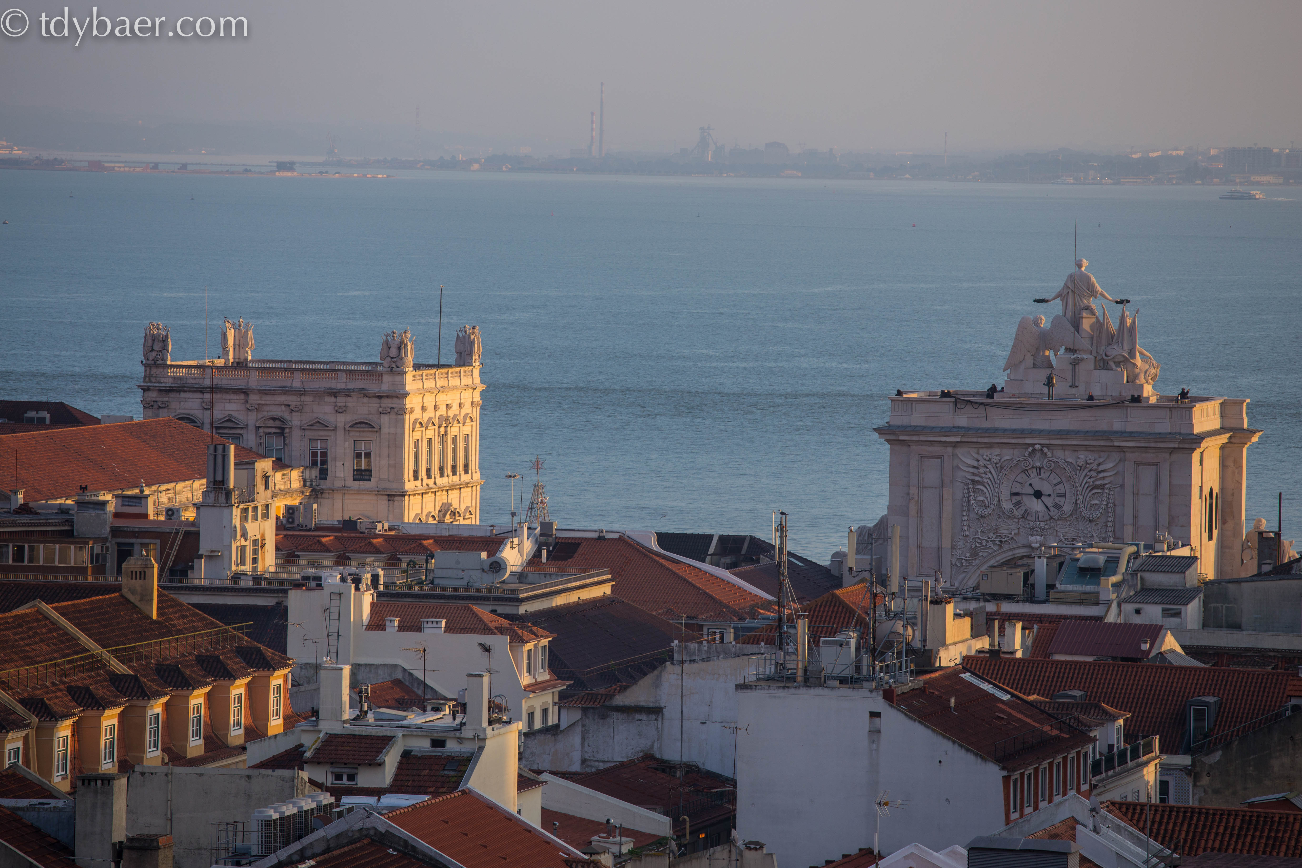 Wie es der Zufall so will, kamen wir kurz vor Sonnenuntergang mal wieder am Fahrstuhl Santa Justa vorbei. Die schöne Abendstimmung musste von diesem Aussichtspunkt auch noch einmal festgehalten werden :-). Also schnell das Tele auf die Kamera geschraubt und noch ein paar Fotos gemacht.