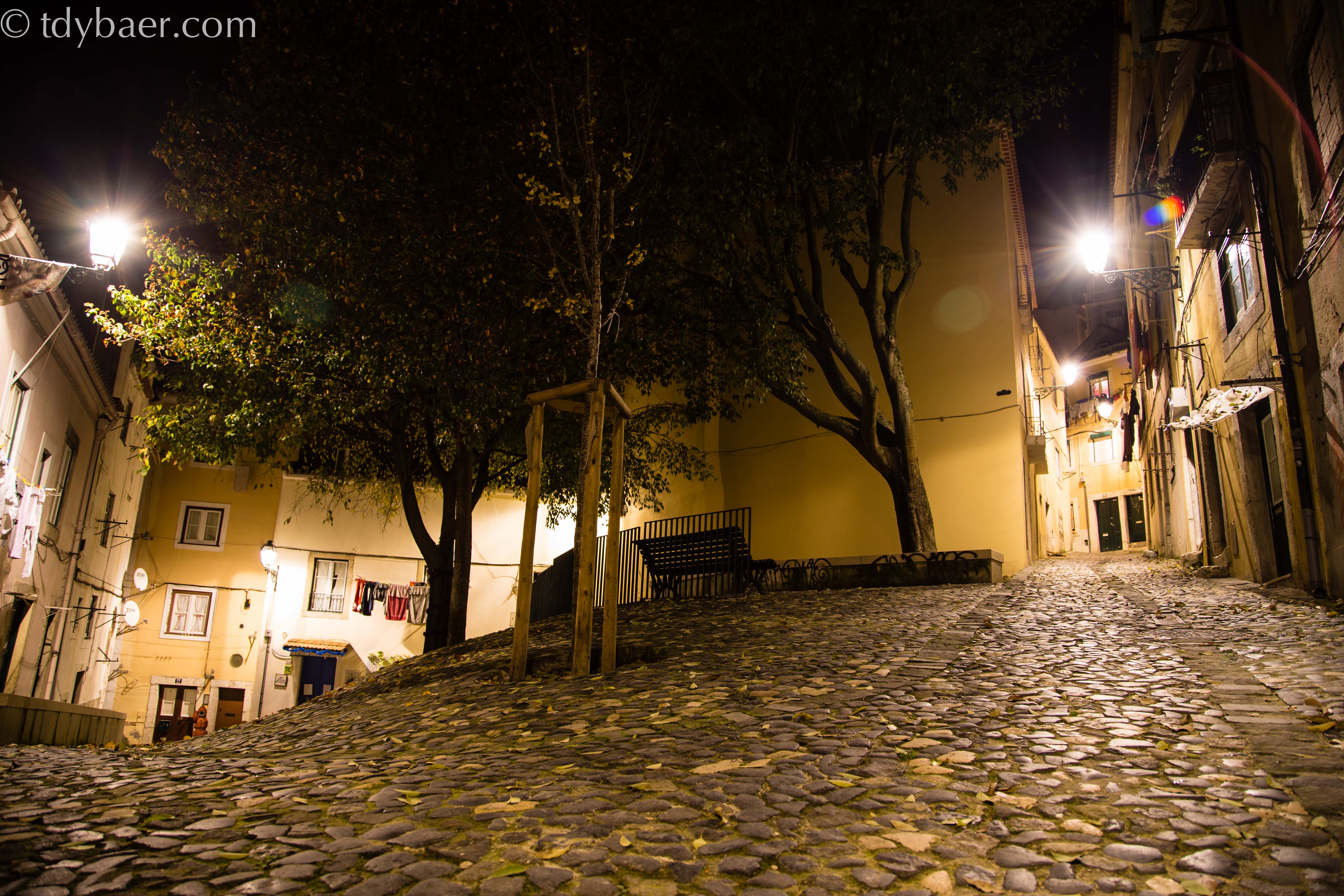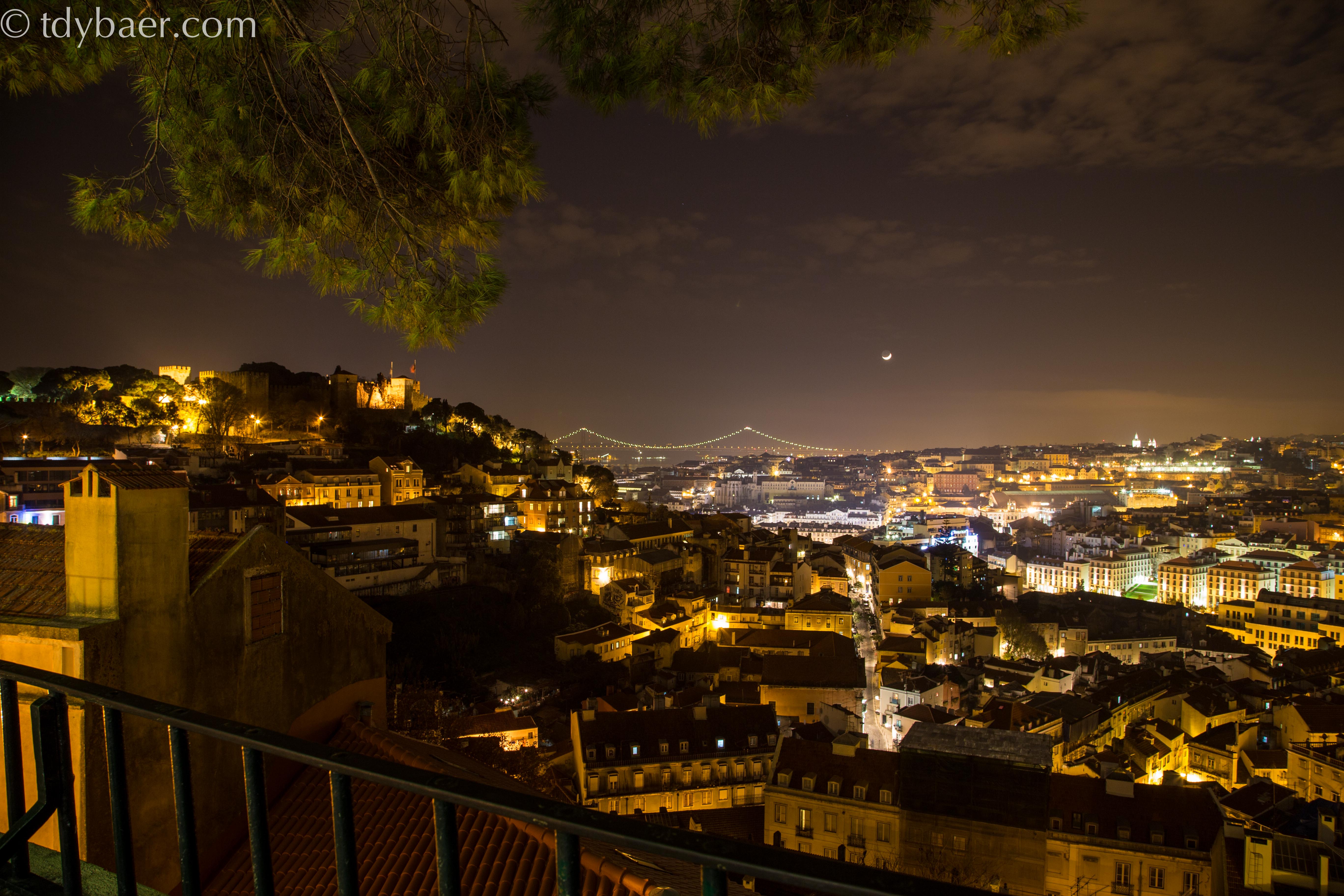 Durch kleine und in der Dunkelheit etwas unheimlich Gassen stiefelten wir hinauf zum Miradouro da Graca. Von hier hat man nicht nur eine der schönsten Aussichten auf die Stadt, sondern auch den umfangreichsten Blick auf die schönen Gebäude und Bauwerke der Stadt.