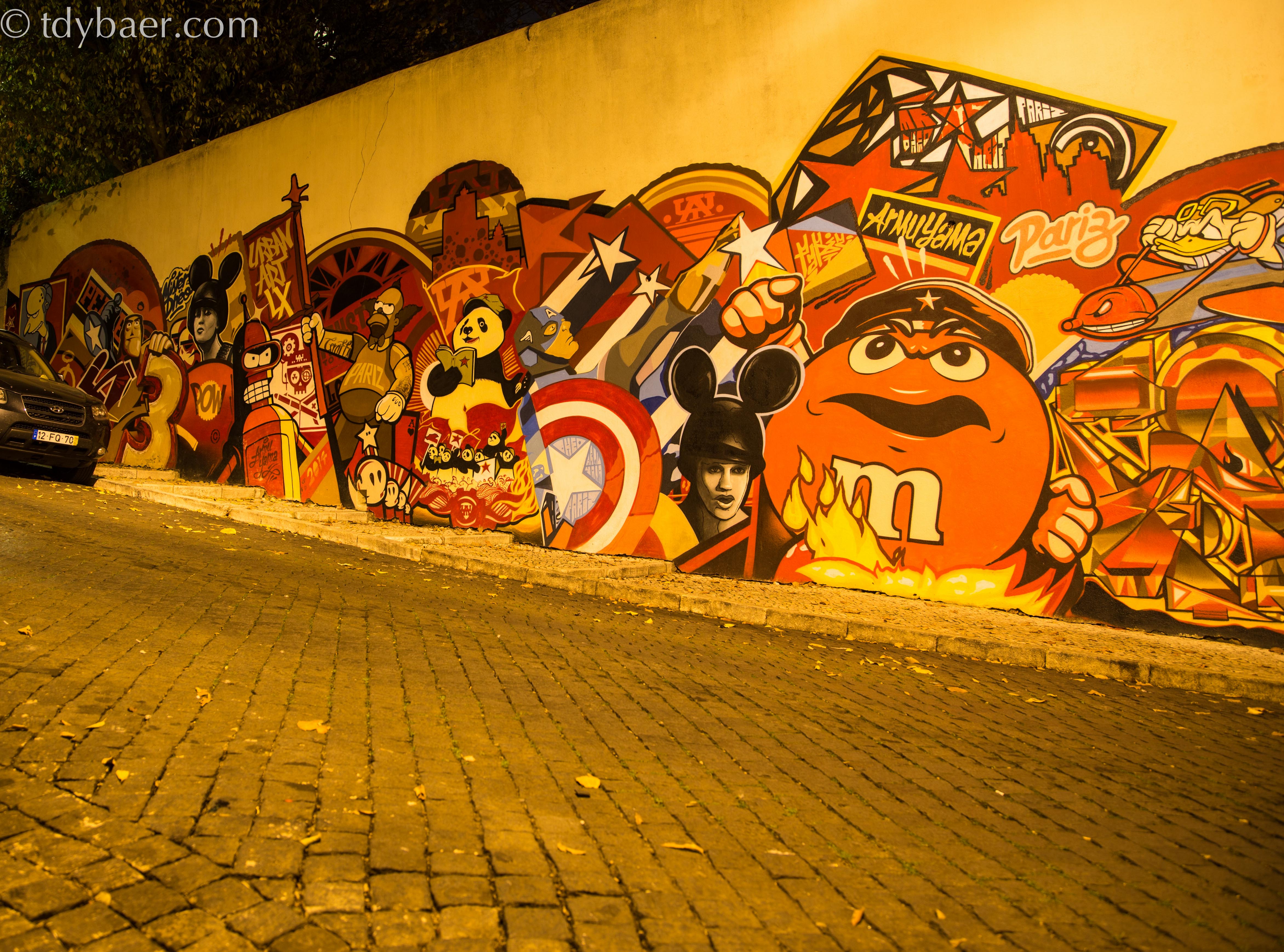 Weiter geht es durch das stille Lissabon am heiligen Abend – außer den verrückten Touristen, ist keine Seele unterwegs. Wir schlendern die Rua da Voz do Operario hinunter und erblickten in einer angrenzenden Seitenstraße dieses lustige Motiv. Ein weiteres gelungenes Street-Art-Projekt :-).
