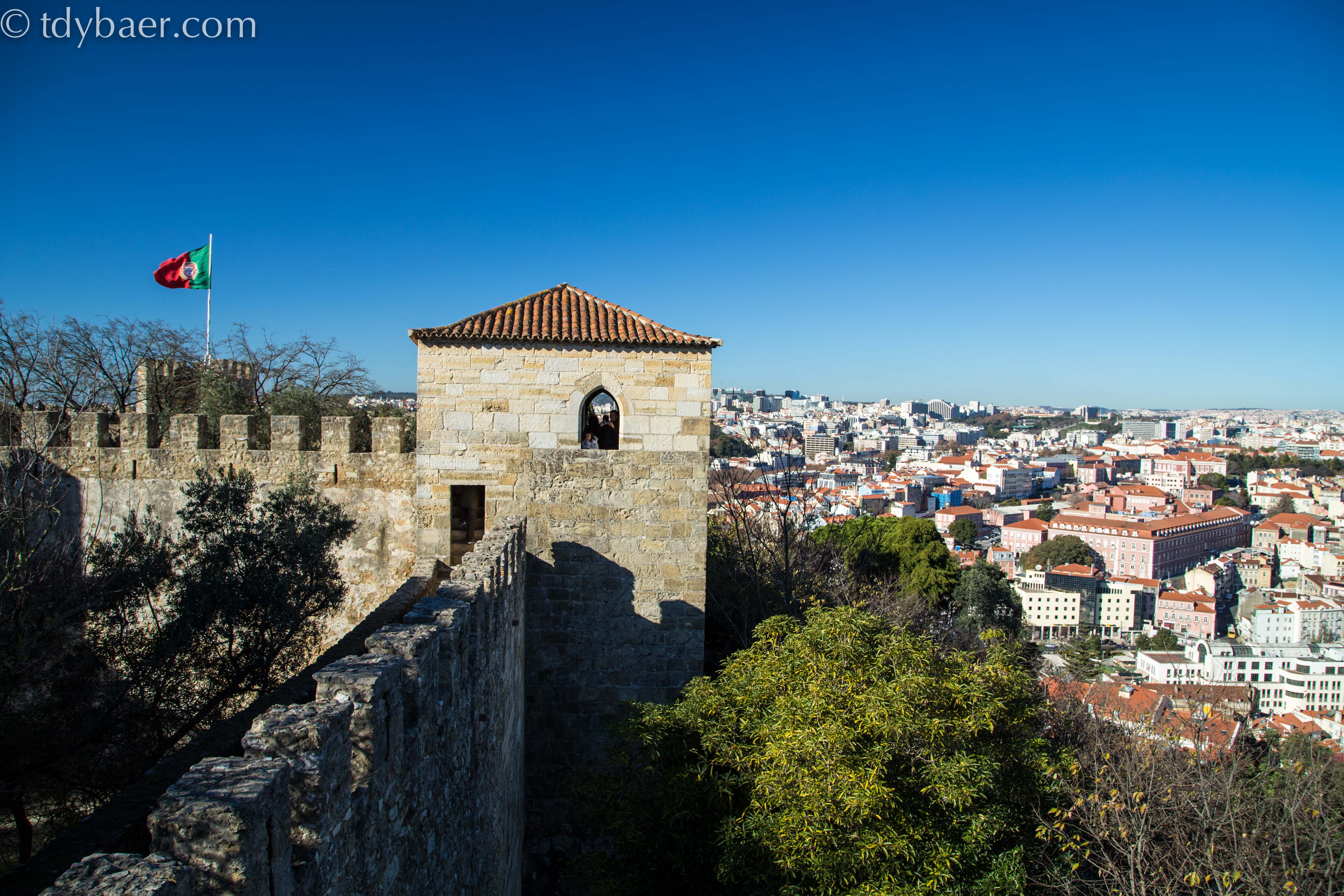 Letzter Tag unseres Weihnachtsurlaubes im schönen Lissabon :-), bevor es am Abend wieder nach Hause geht. Ein paar Sehenswürdigkeiten stehen für heute noch auf unserer Liste, darunter die Kirche Santo Estevao und die Burg Castelo Sao Jorge. Von unserem Hostel spazierten wir durch die engen Gassen Alfamas hinauf zur Kirche Santo Estevao. Hier hat man sowohl vom Vorplatz, als auch von der „Dachterrasse“ eine herrliche Aussicht über das Stadtviertel. Obwohl die Kirche um 10 Uhr ihre Pforten öffnen sollte, passiert leider nichts. Nach einer akademischen viertel Stunde des Wartens, beschlossen wir zur nächsten Sehenswürdigkeit auf der Liste weiter zu gehen.
