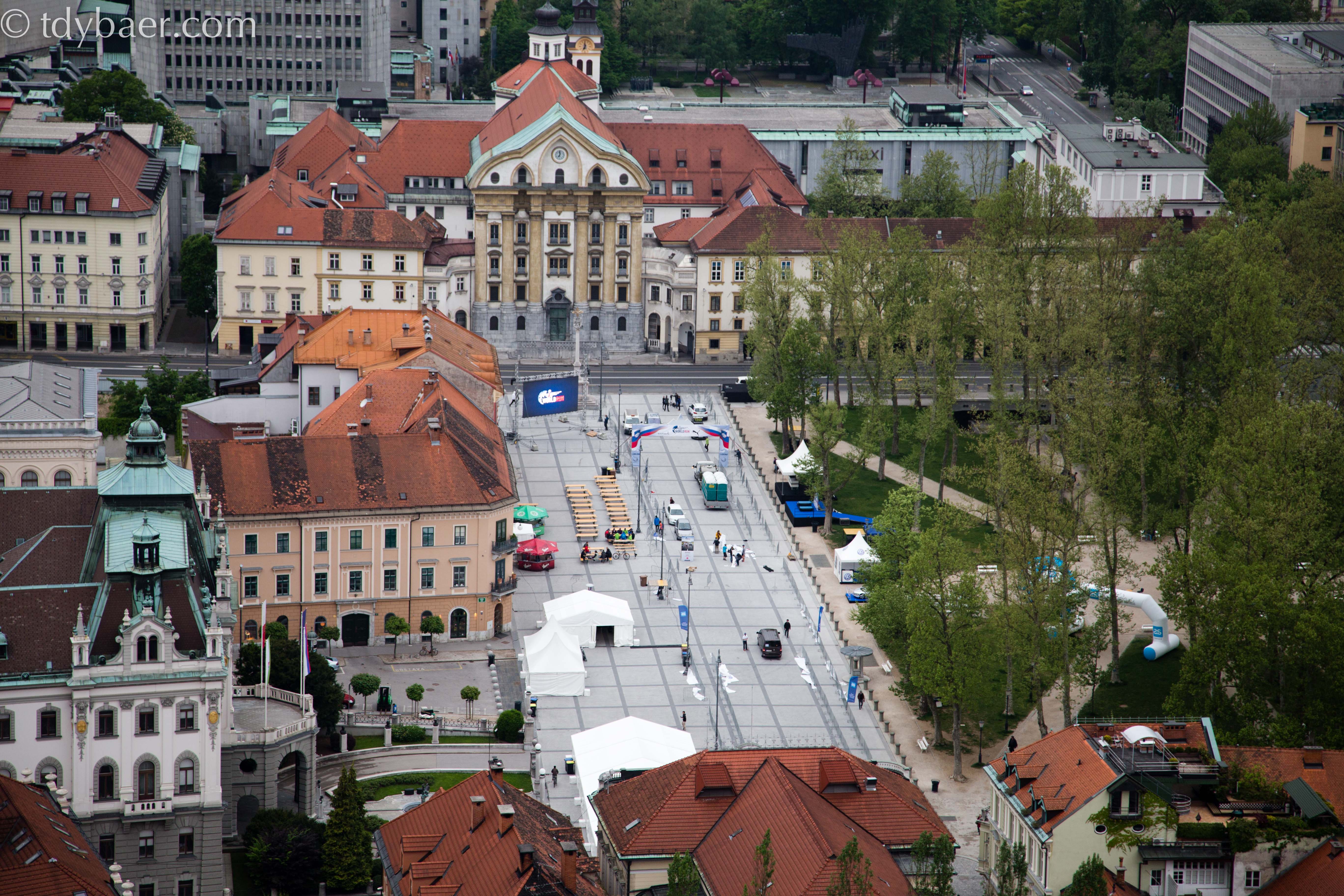 Nach dem Rücktransport zum Start und einer heißen Dusche, nutzten wir den Rest des Tages zu einem Abstecher auf das Schloss (Ljubljanski grad) von Ljubljana. Mit einer Zahnradbahn gelangt man bequem auf den Schlossberg.